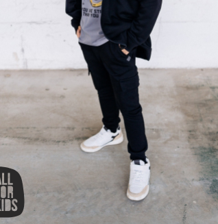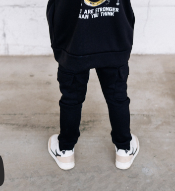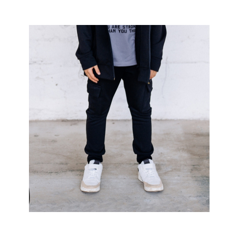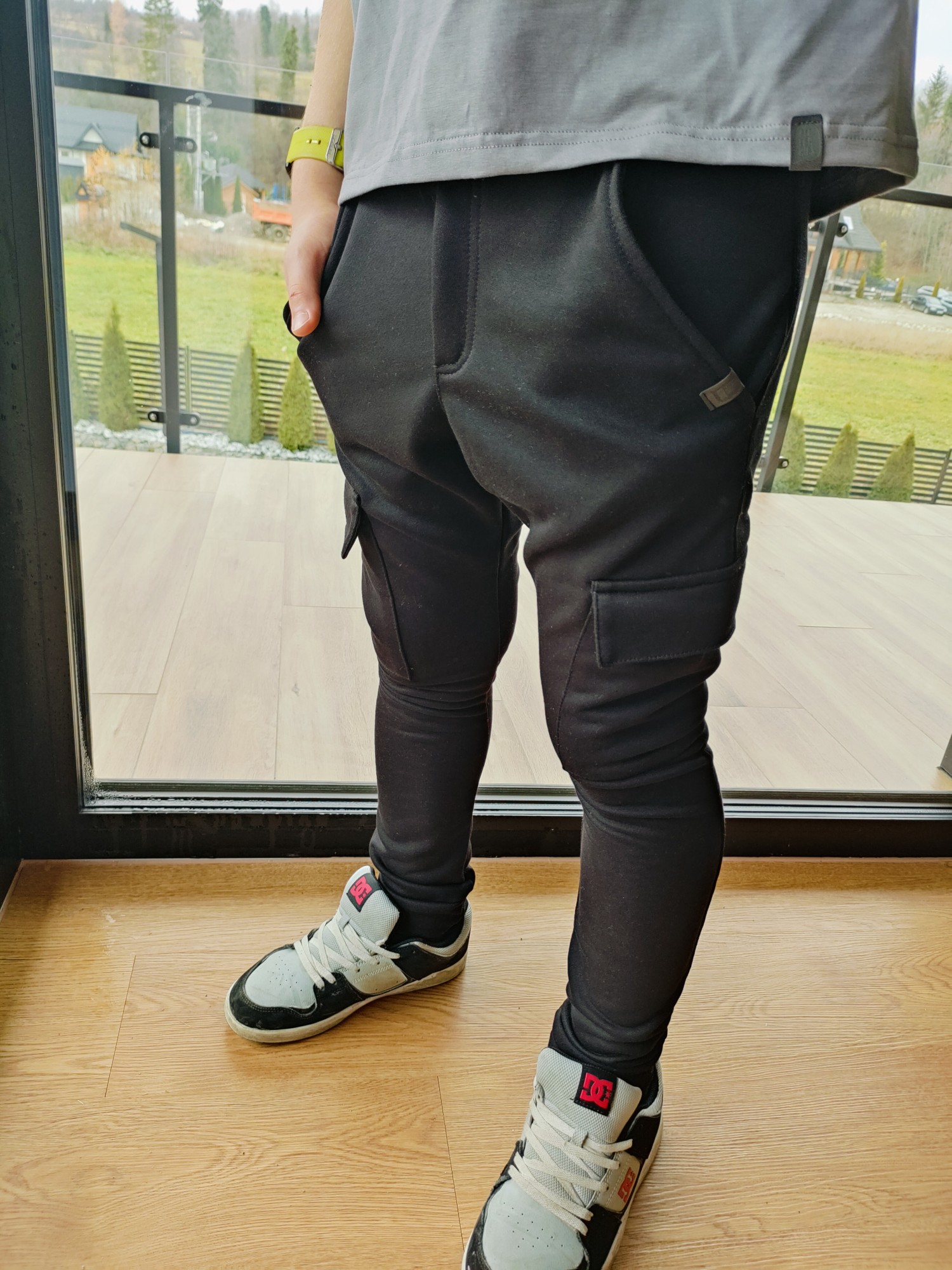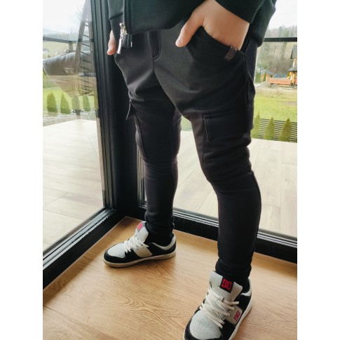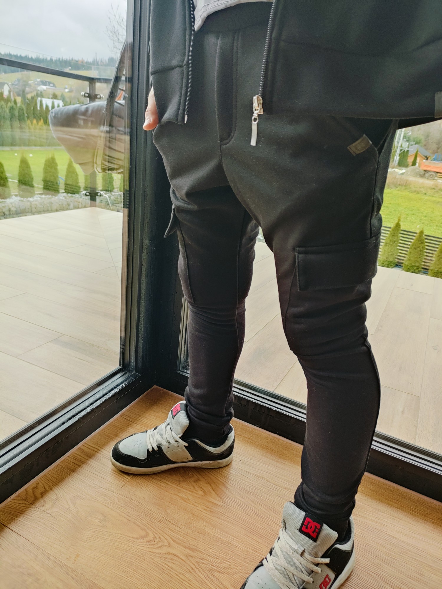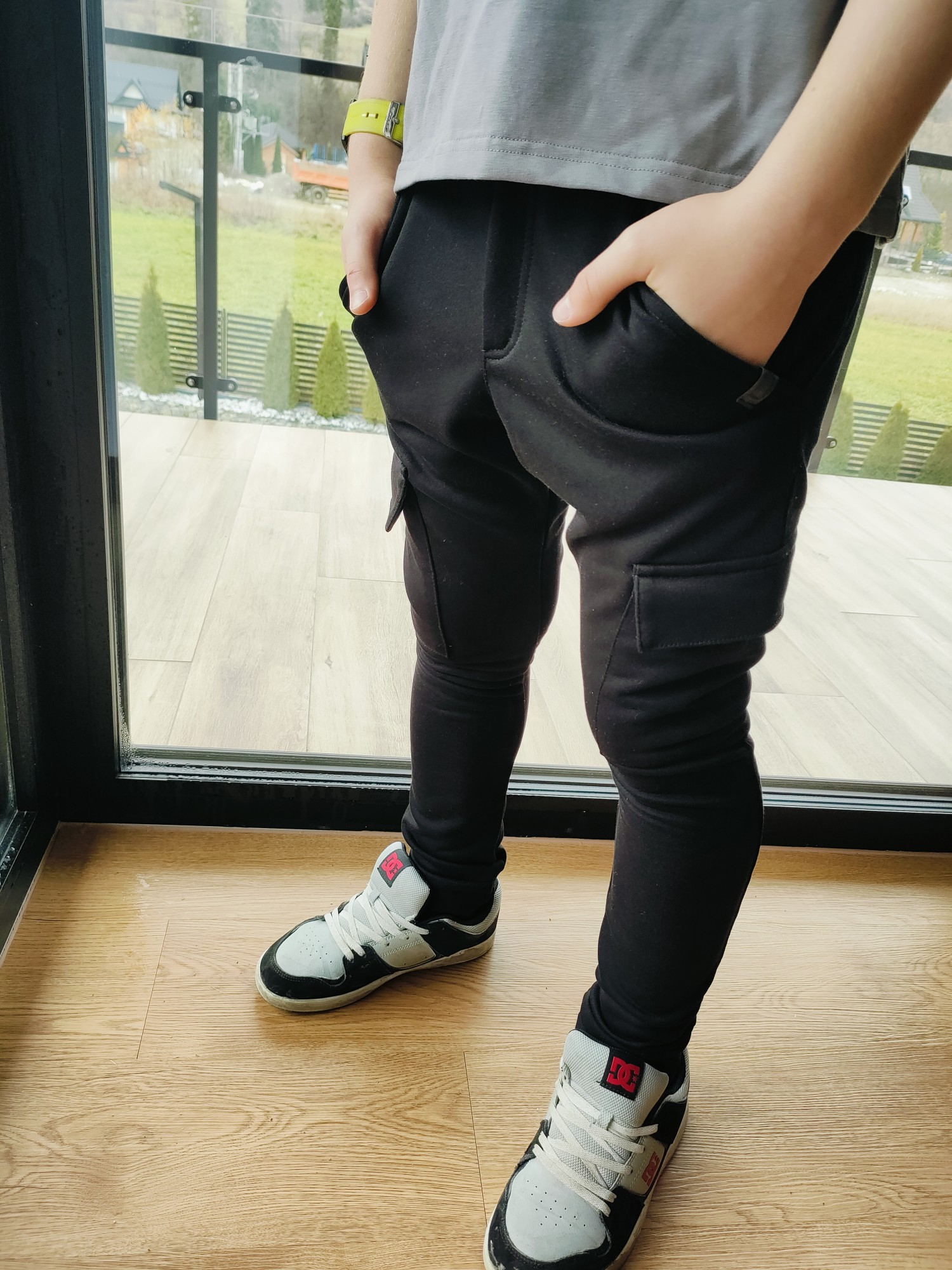Spodnie dresowe bojówki czarne All For Kids to must-have do codziennej rotacji małego streetweara. Luźny krój cargo daje luz ruchu i młodzieżowy vibe, kieszenie boczne są prawdziwie funkcjonalne (zmieści się wszystko co ważne), a ściągacze w kostce trzymają formę i nie zahaczają o buty podczas gry, zabawy czy jazdy na rowerze. Czarny kolor to baza, która pasuje do wszystkiego – kolorowych bluz, białych t-shirtów, kurtek oversize.