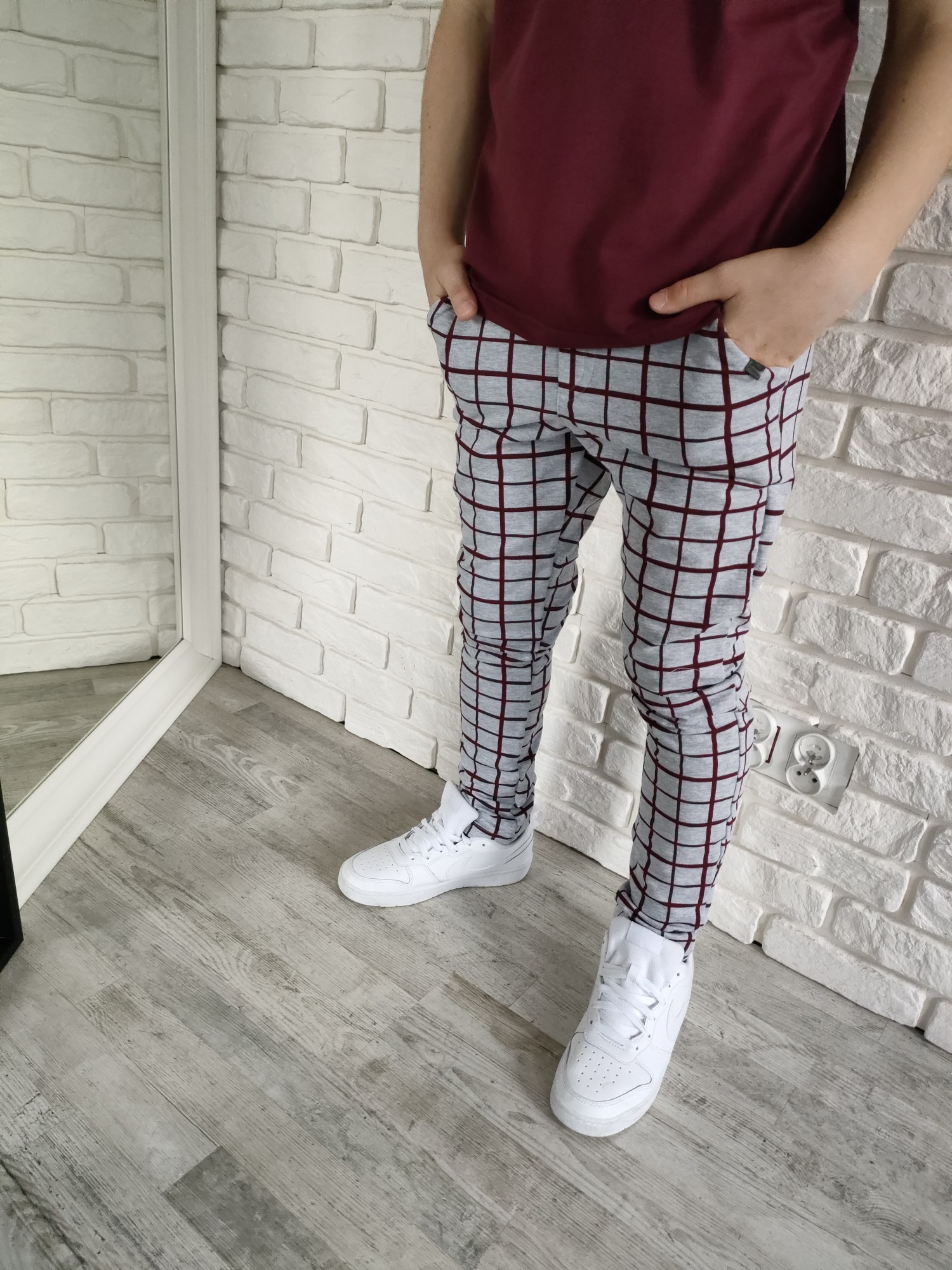 Spodnie, które same w sobie potrafią zrobić całą stylówkę. Szaro-granatowa krata daje im elegancki sznyt, a sportowy, elastyczny materiał trzyma wygodę na najwyższym poziomie. Smukła linia, porządny krój, gumka w pasie – wchodzą na dziecko bez marudzenia i leżą jak trzeba.