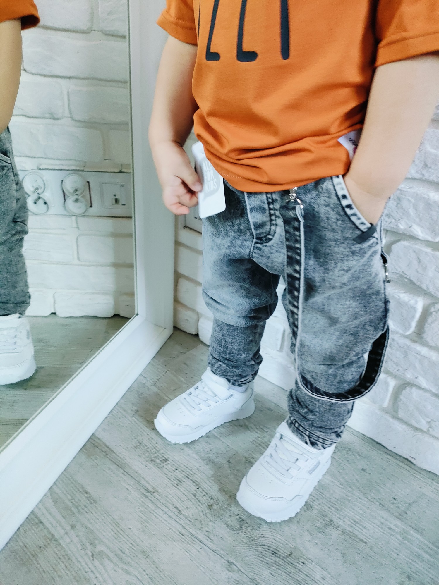 All For Kids Spodnie Jeansowe z taśmą grafitowe
