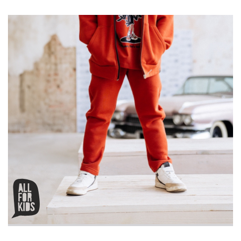 Spodnie dresowe ceglane All For Kids to kolor, który wyróżnia – intensywny, ciepły odcień między pomarańczą a czerwienią robi efekt na żywo i dodaje charakteru każdej stylizacji. Regular fit zapewnia wygodę ruchu bez obcisłości, ściągacze w kostce trzymają formę i nie zahaczają o buty podczas zabawy, a miękka dresowa tkanina daje komfort od rana do wieczora. To spodnie, które łatwo zestawiać z czernią, szarością, beżem i białymi t-shirtami.