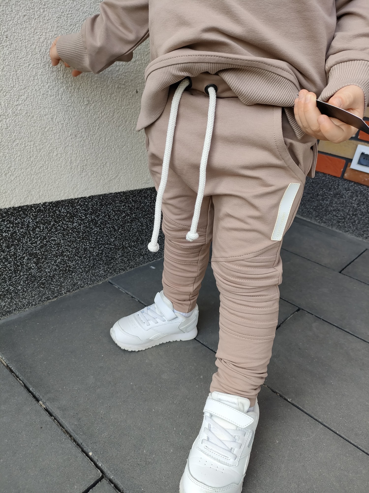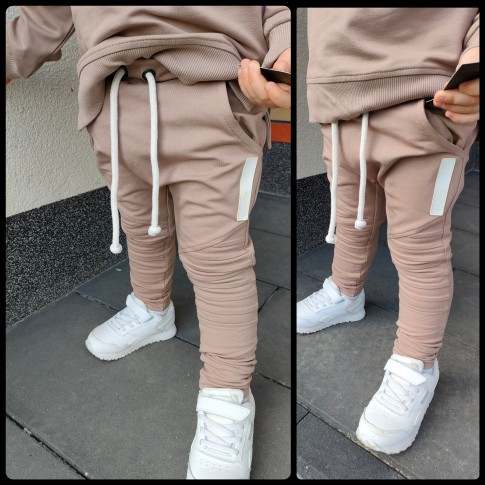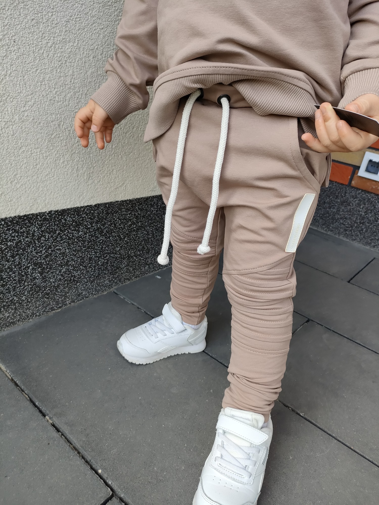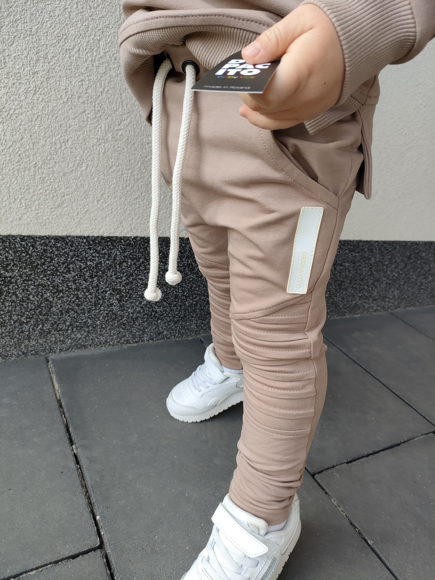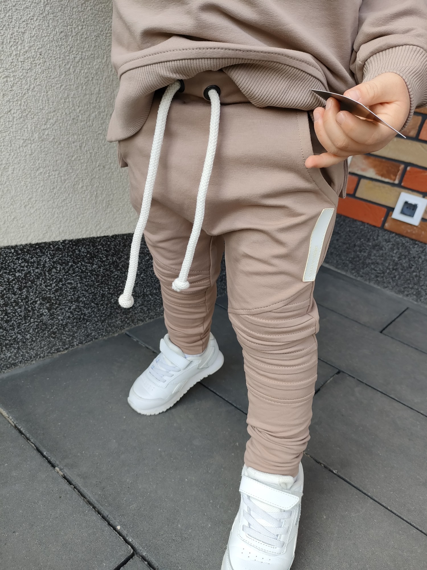Bawełniane spodnie Despacito 'basic' z przeszyciami na kolanach beż