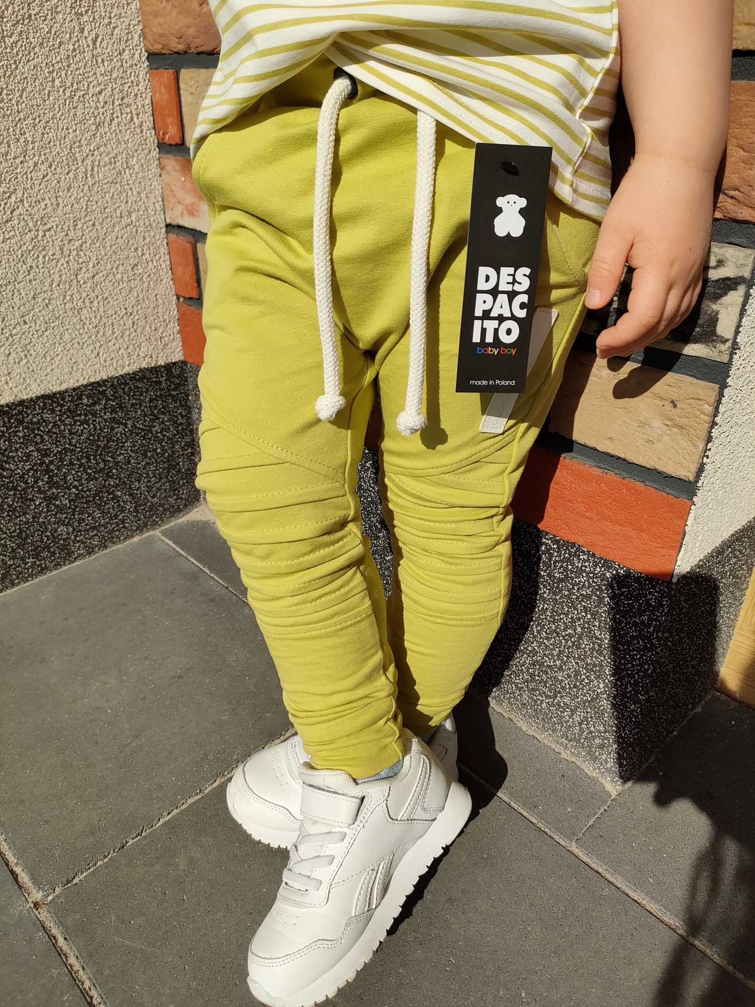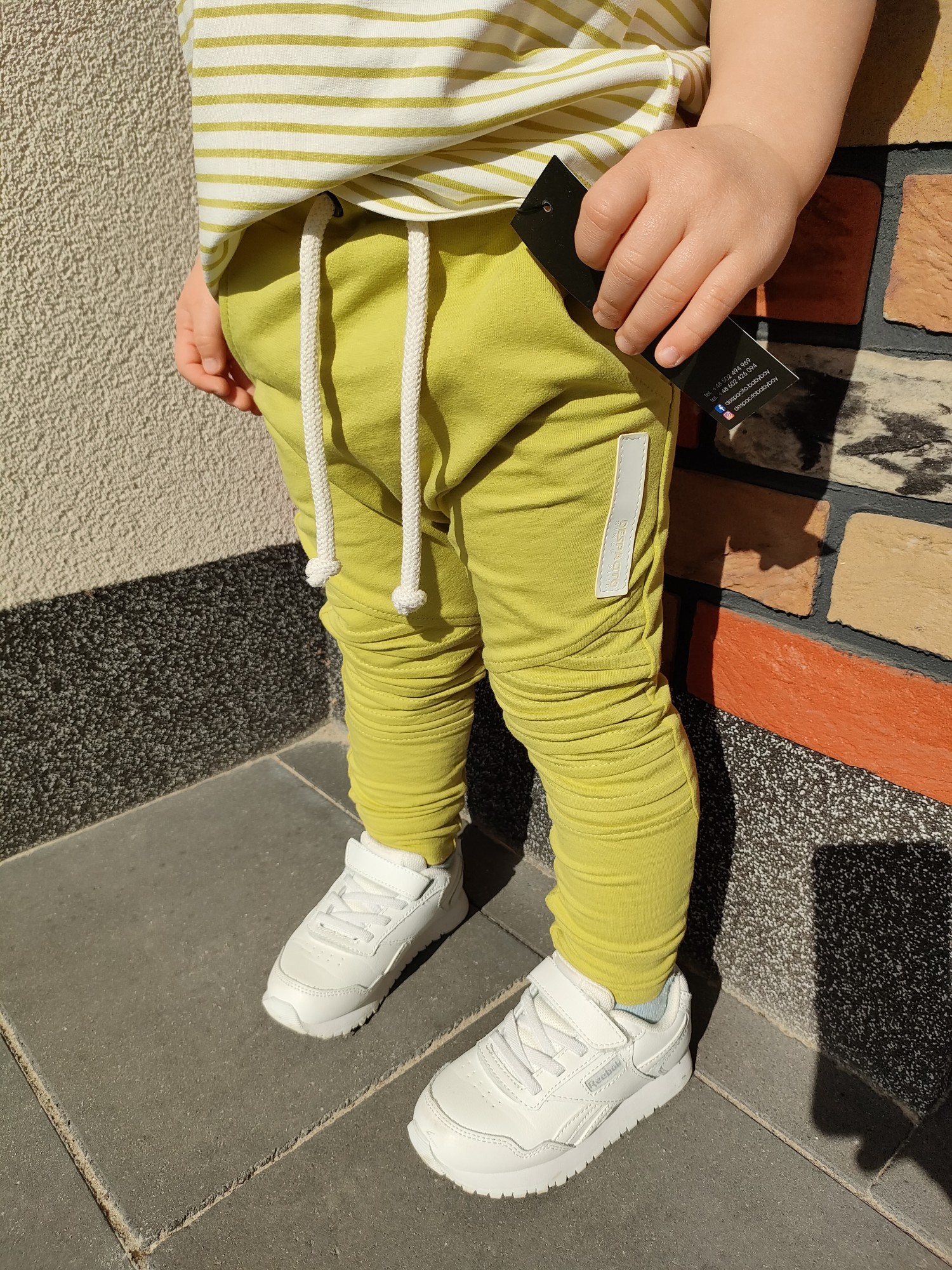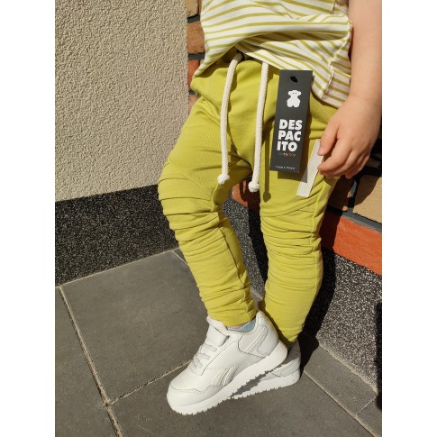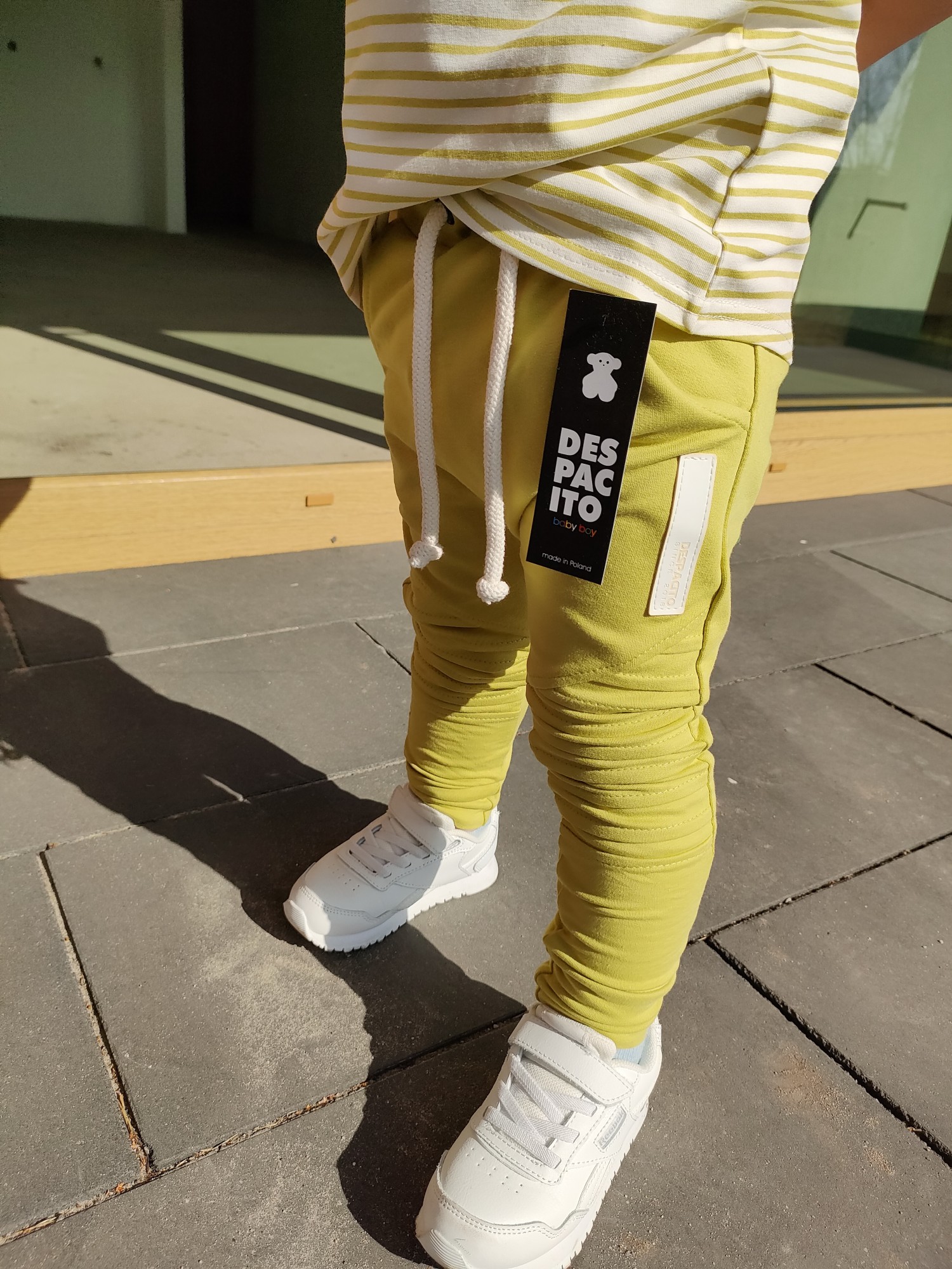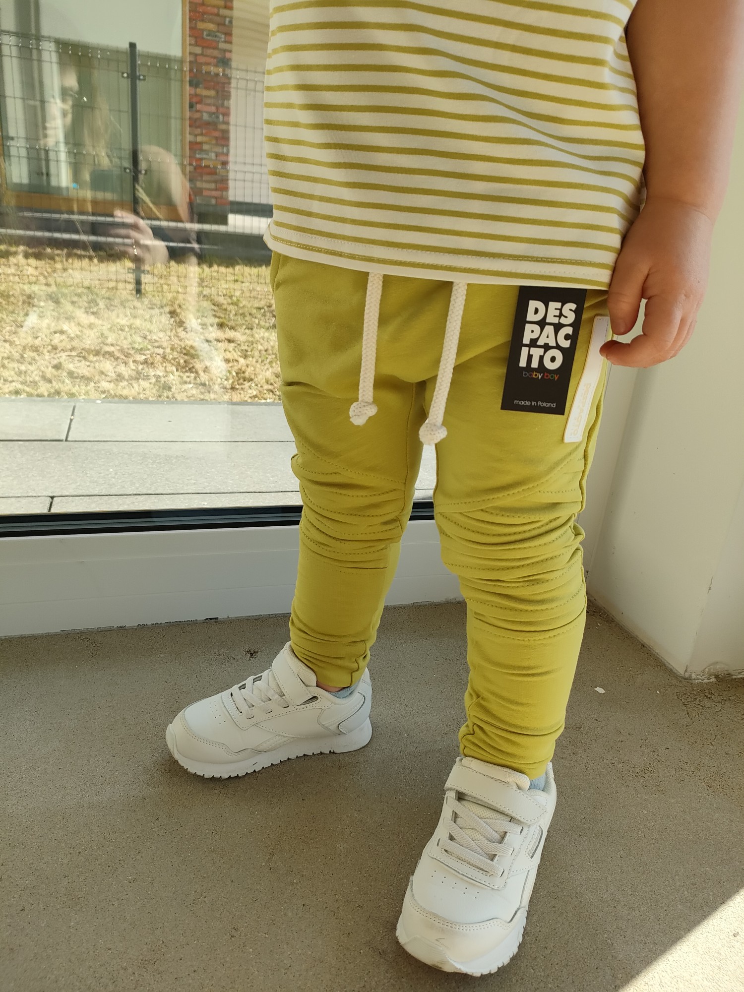 Bawełniane spodnie Despacito 'basic' z przeszyciami na kolanach limonka