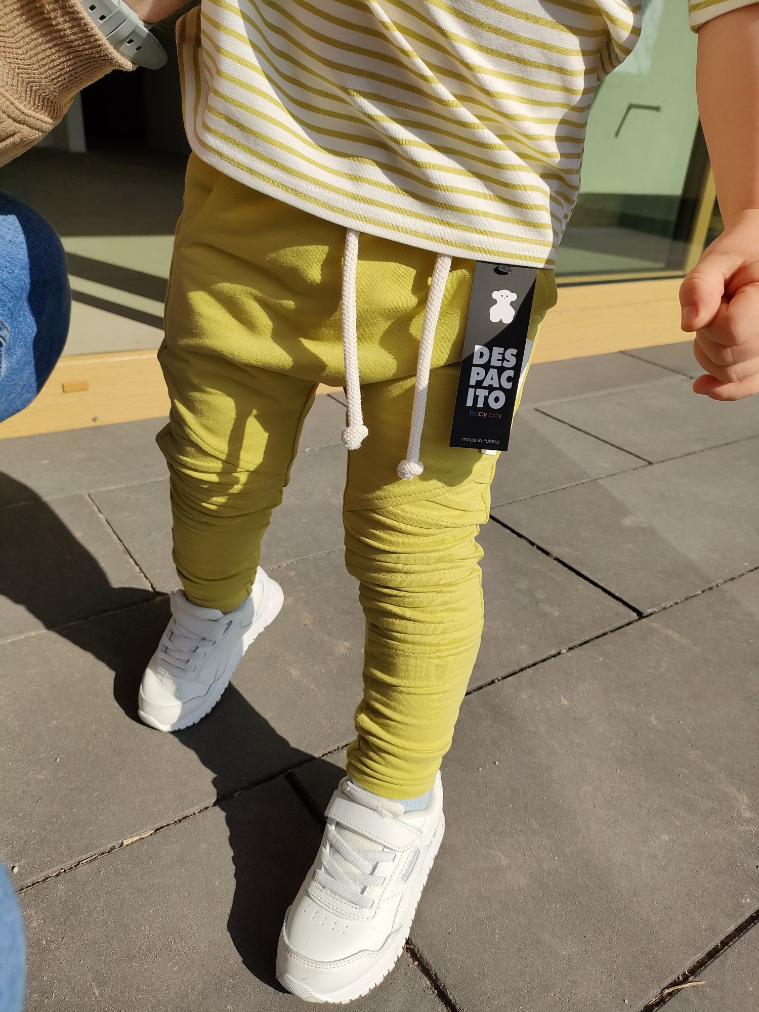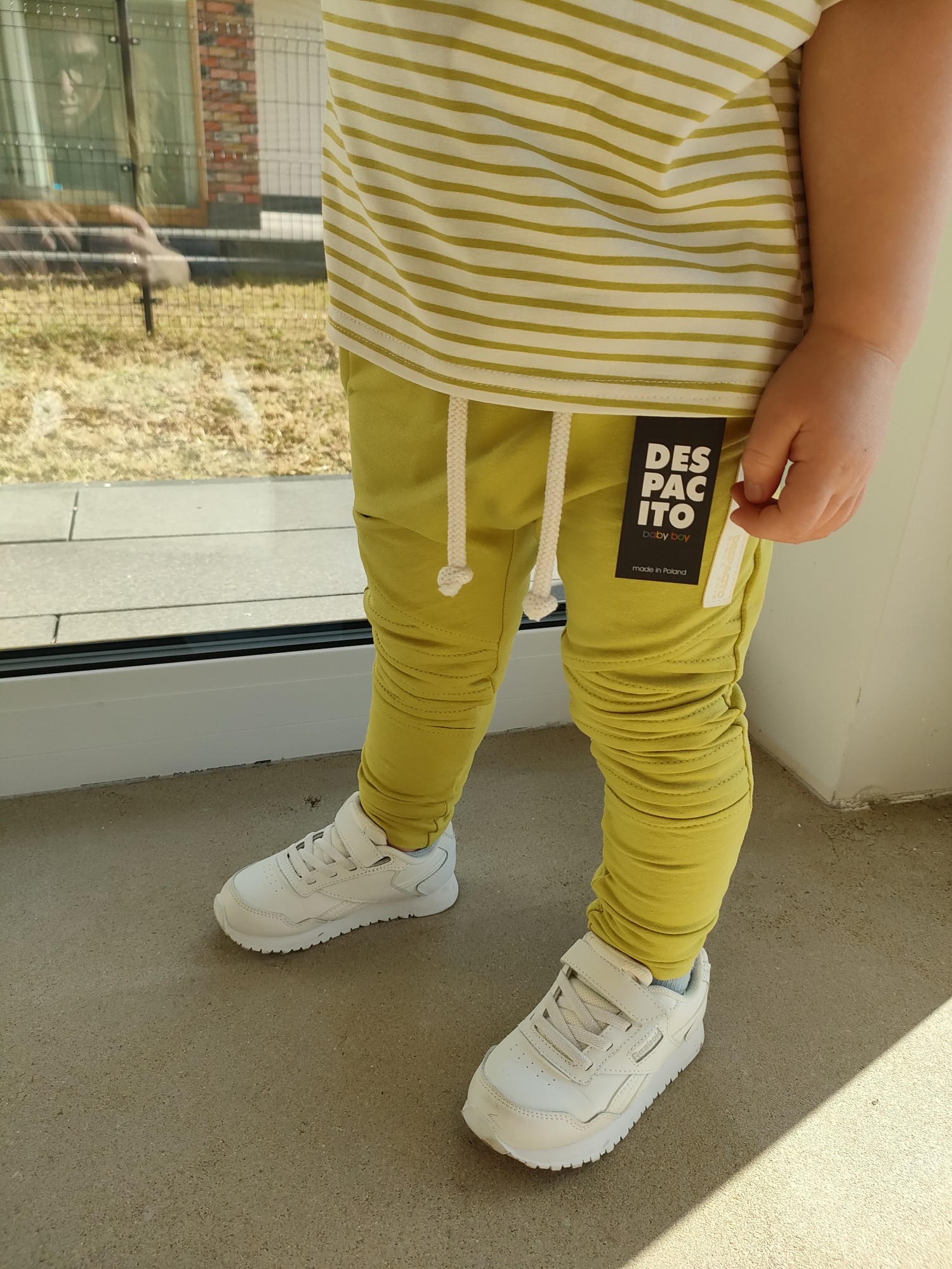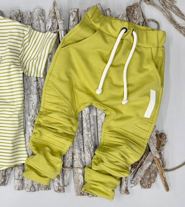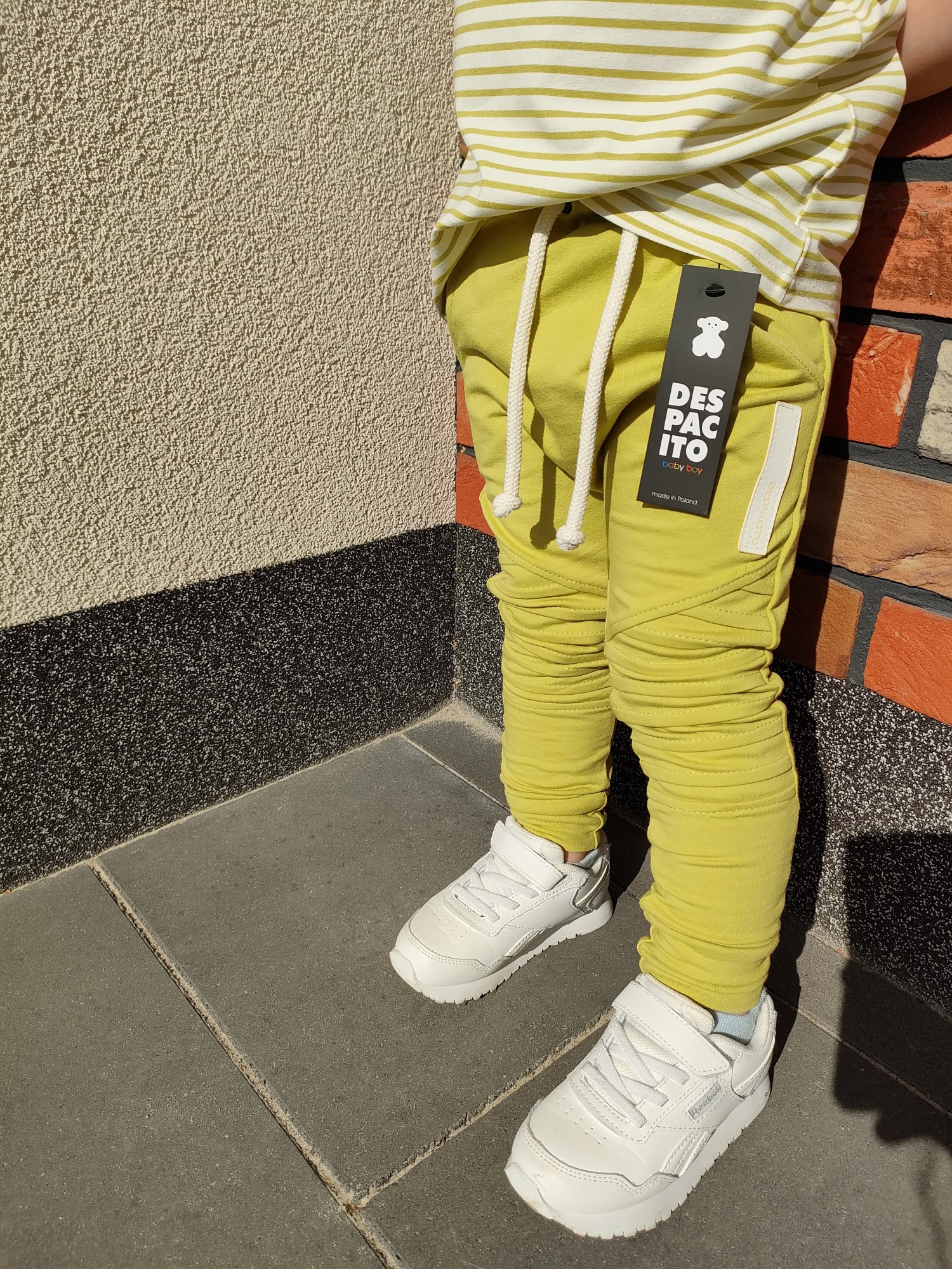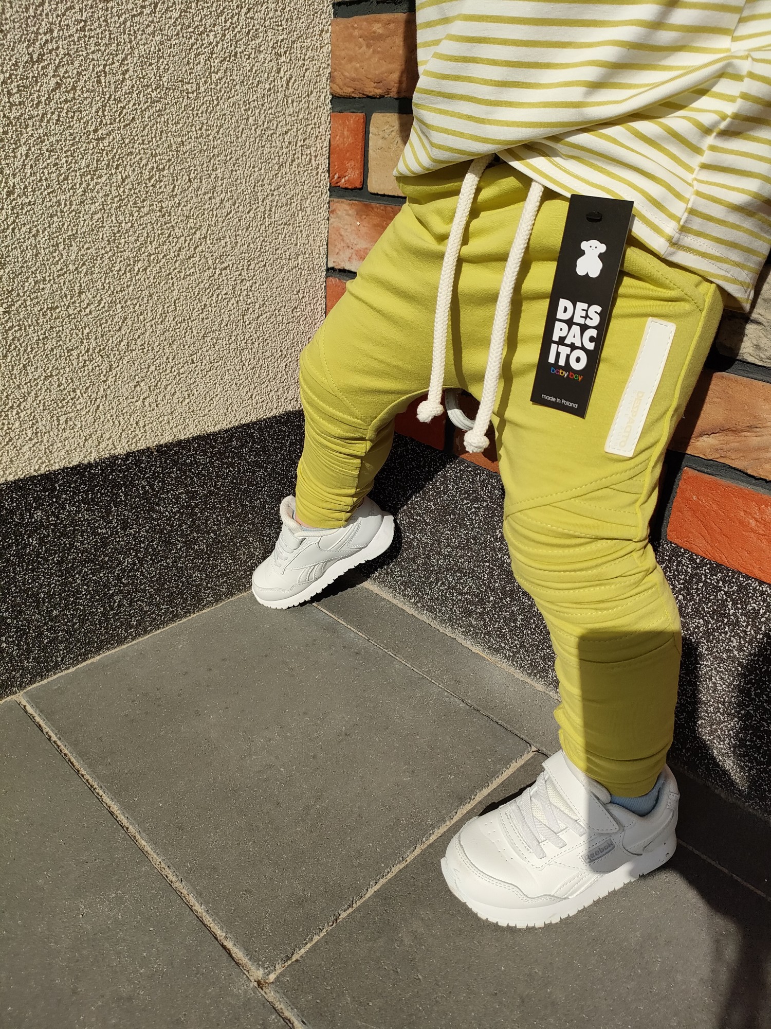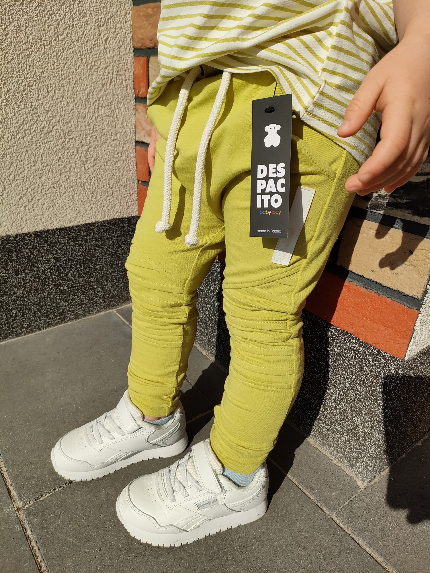 Bawełniane spodnie Despacito 'basic' z przeszyciami na kolanach limonka