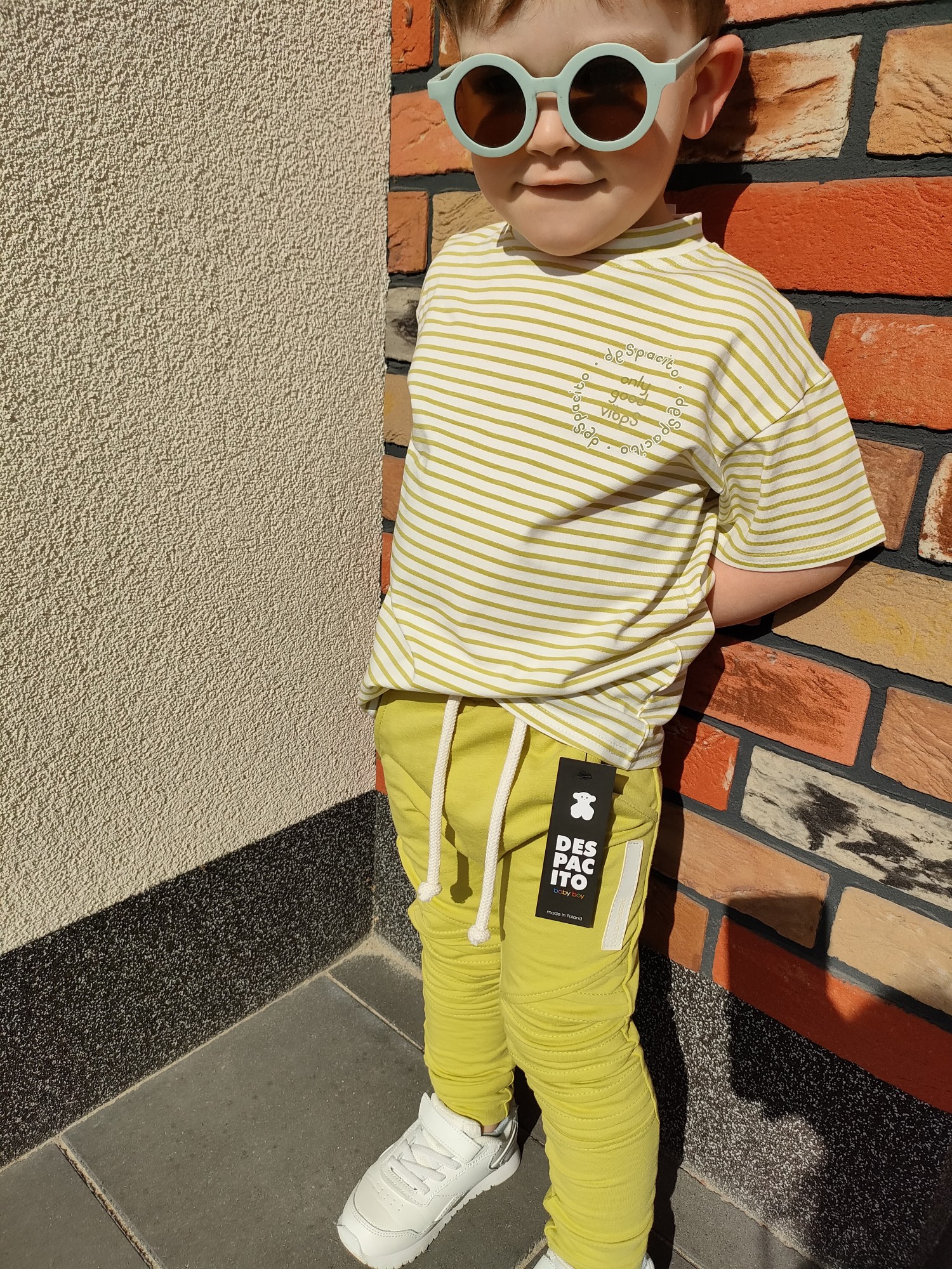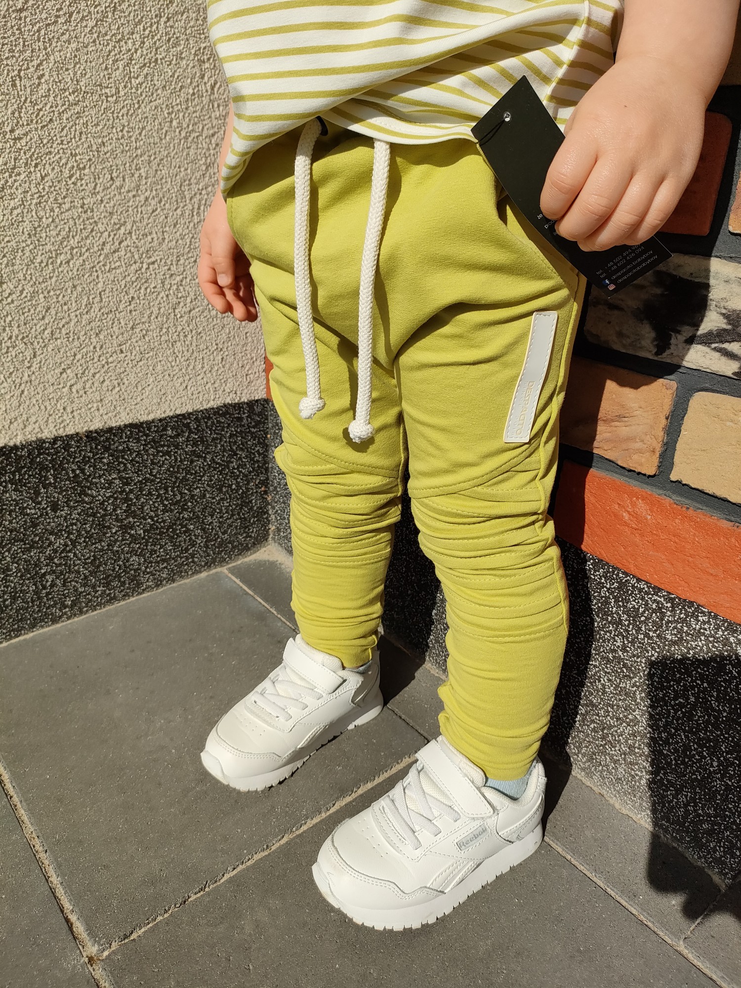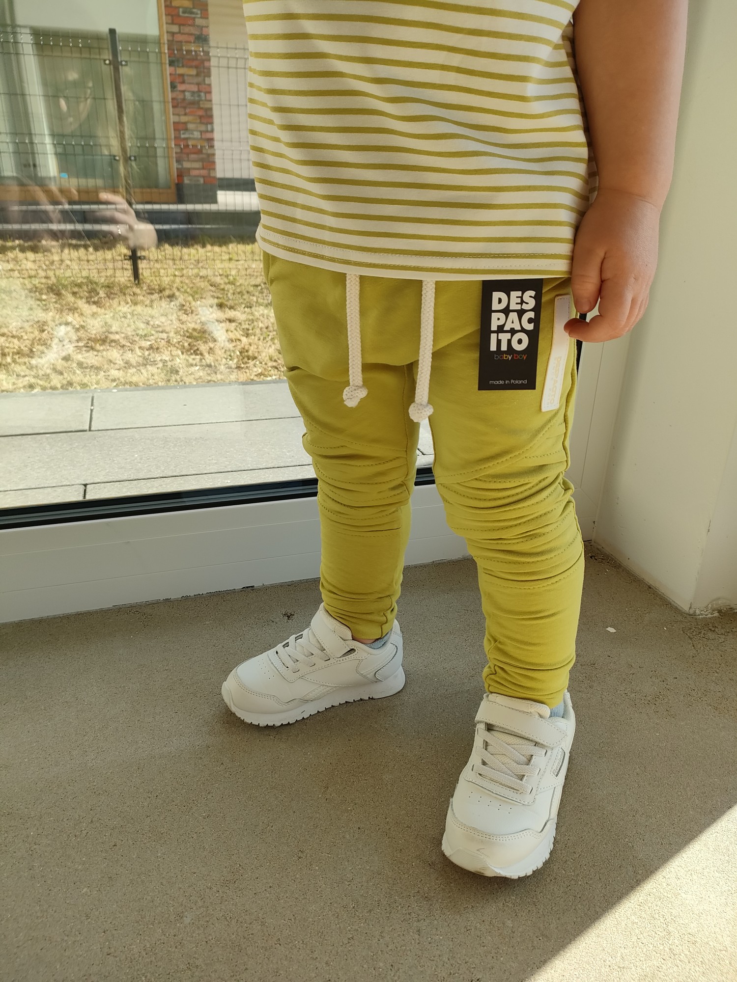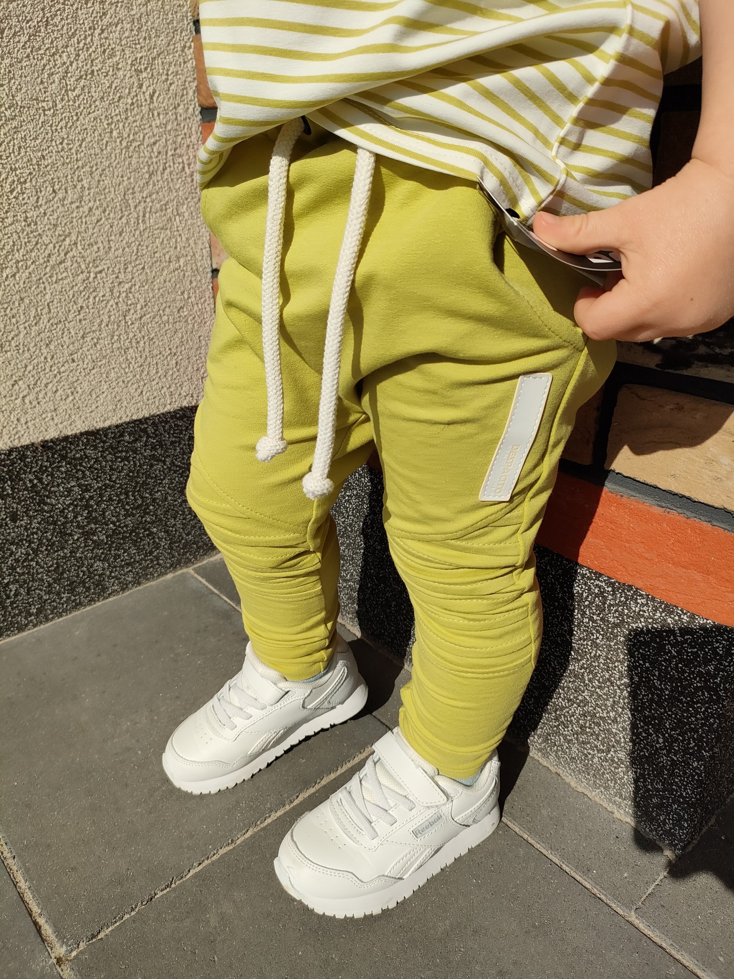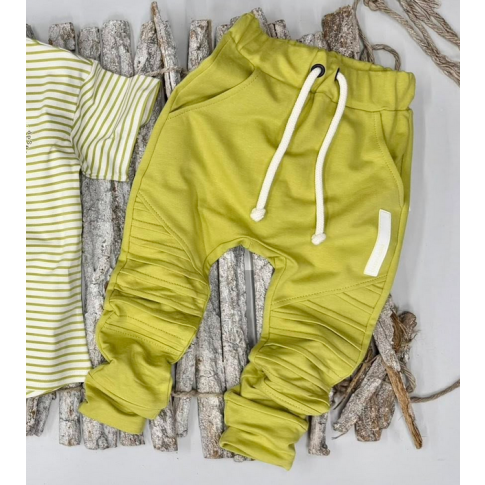 Bawełniane spodnie Despacito 'basic' z przeszyciami na kolanach limonka