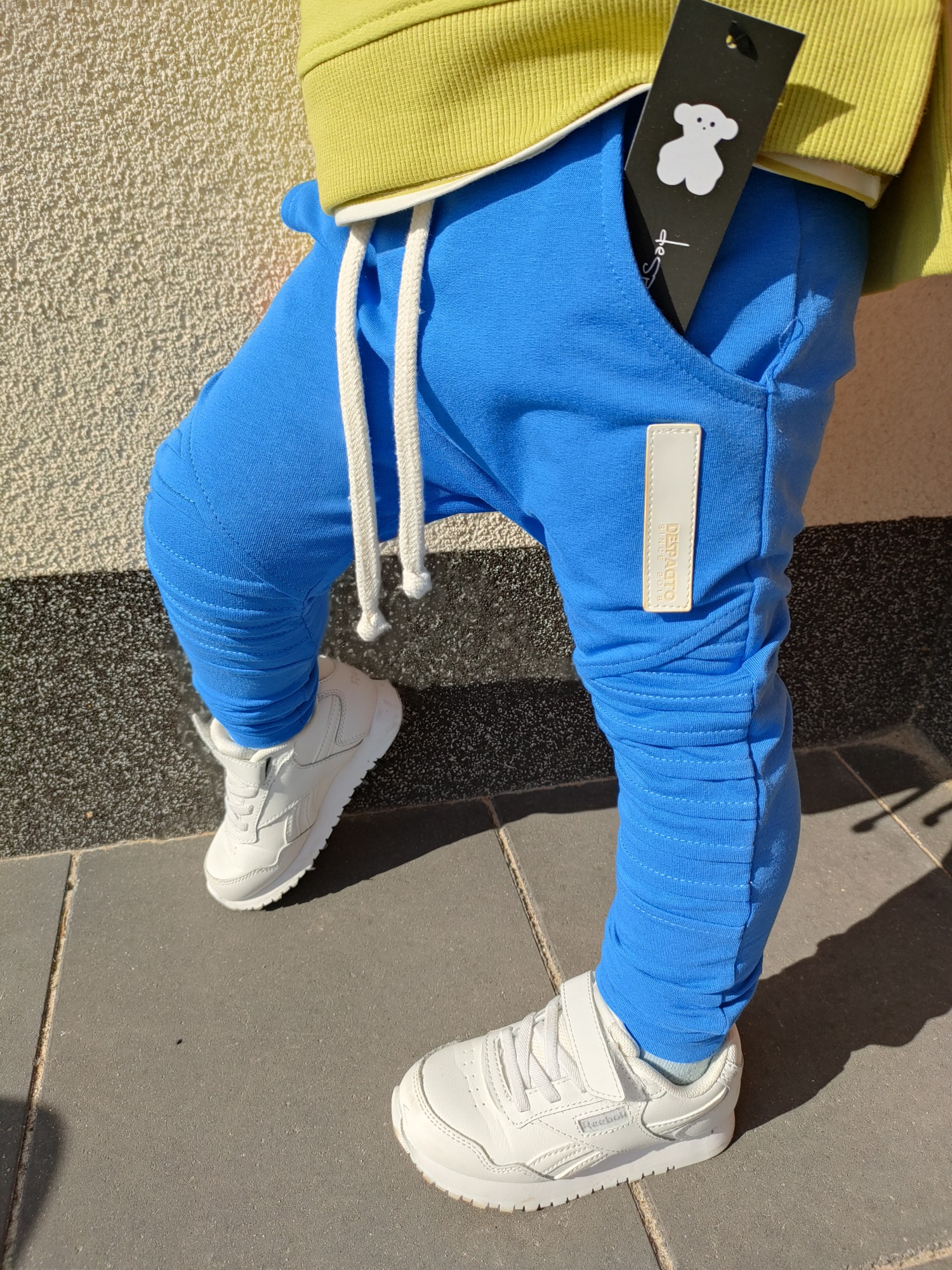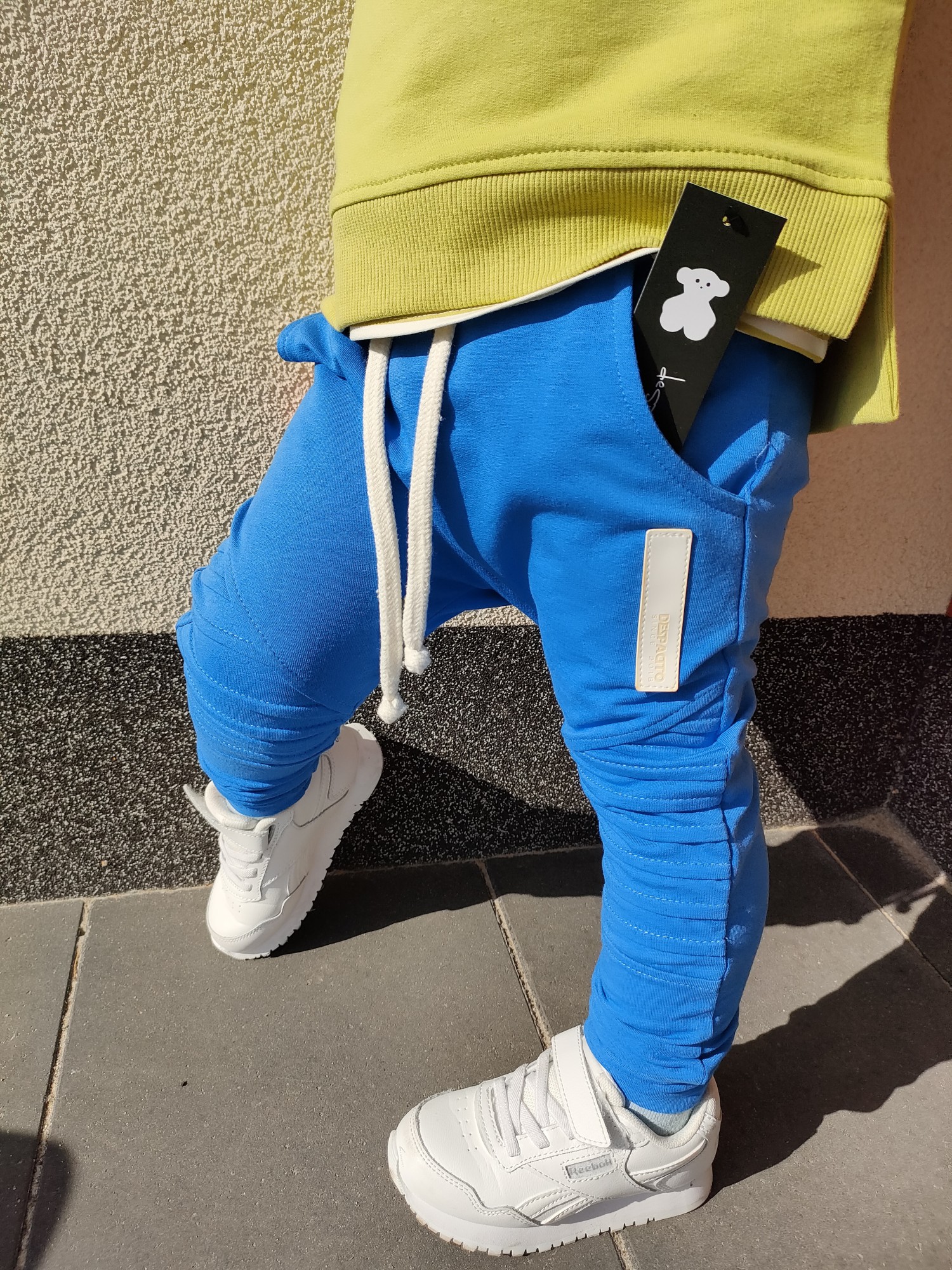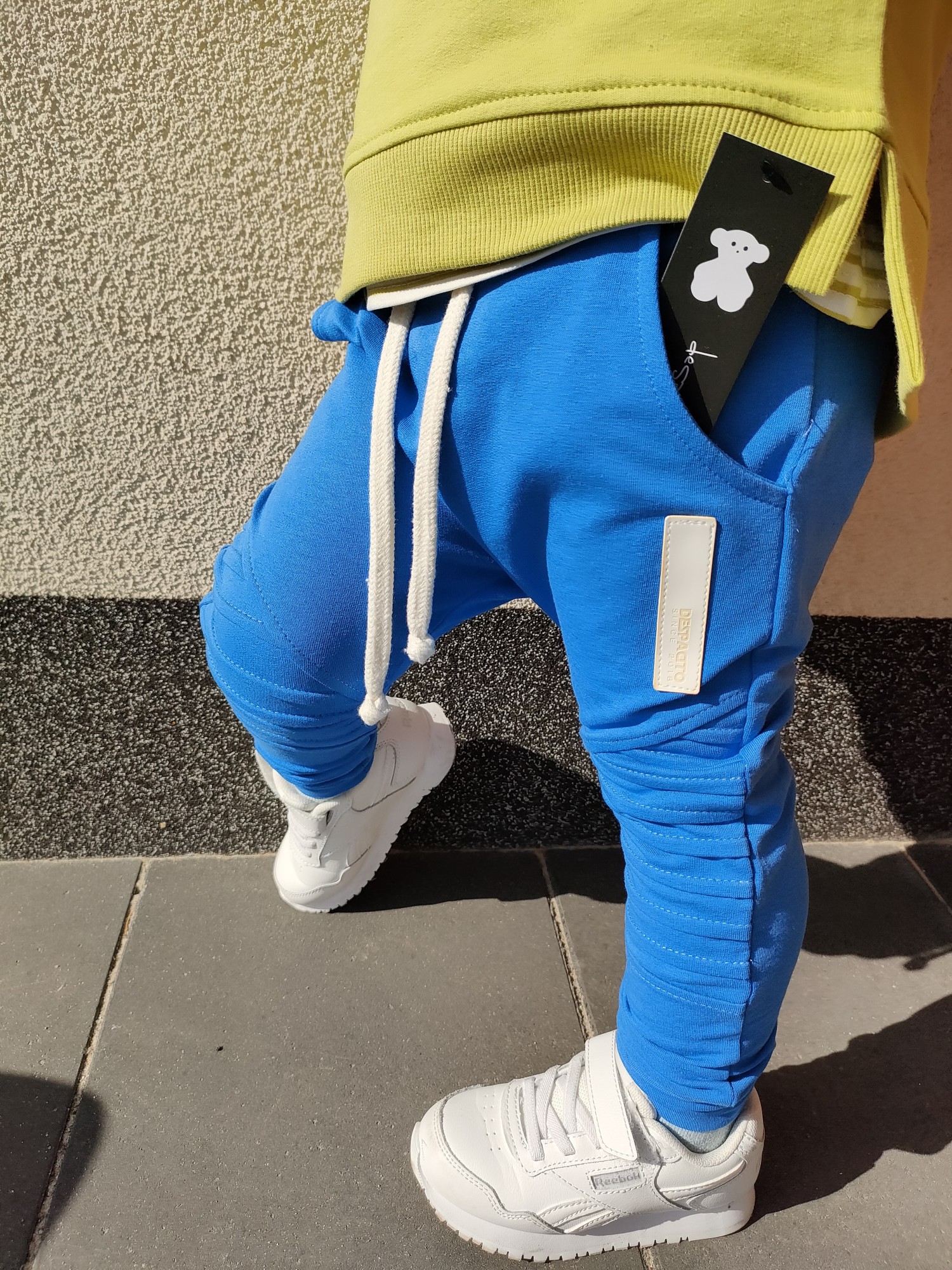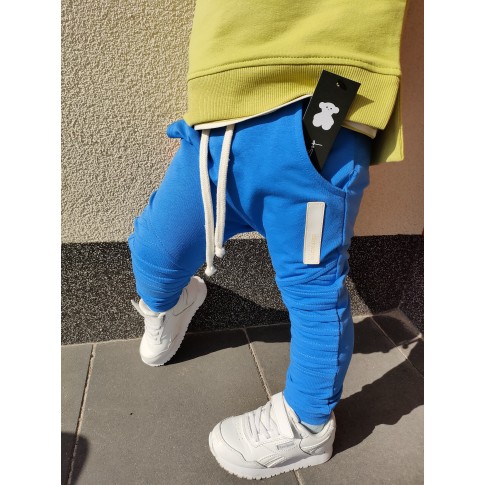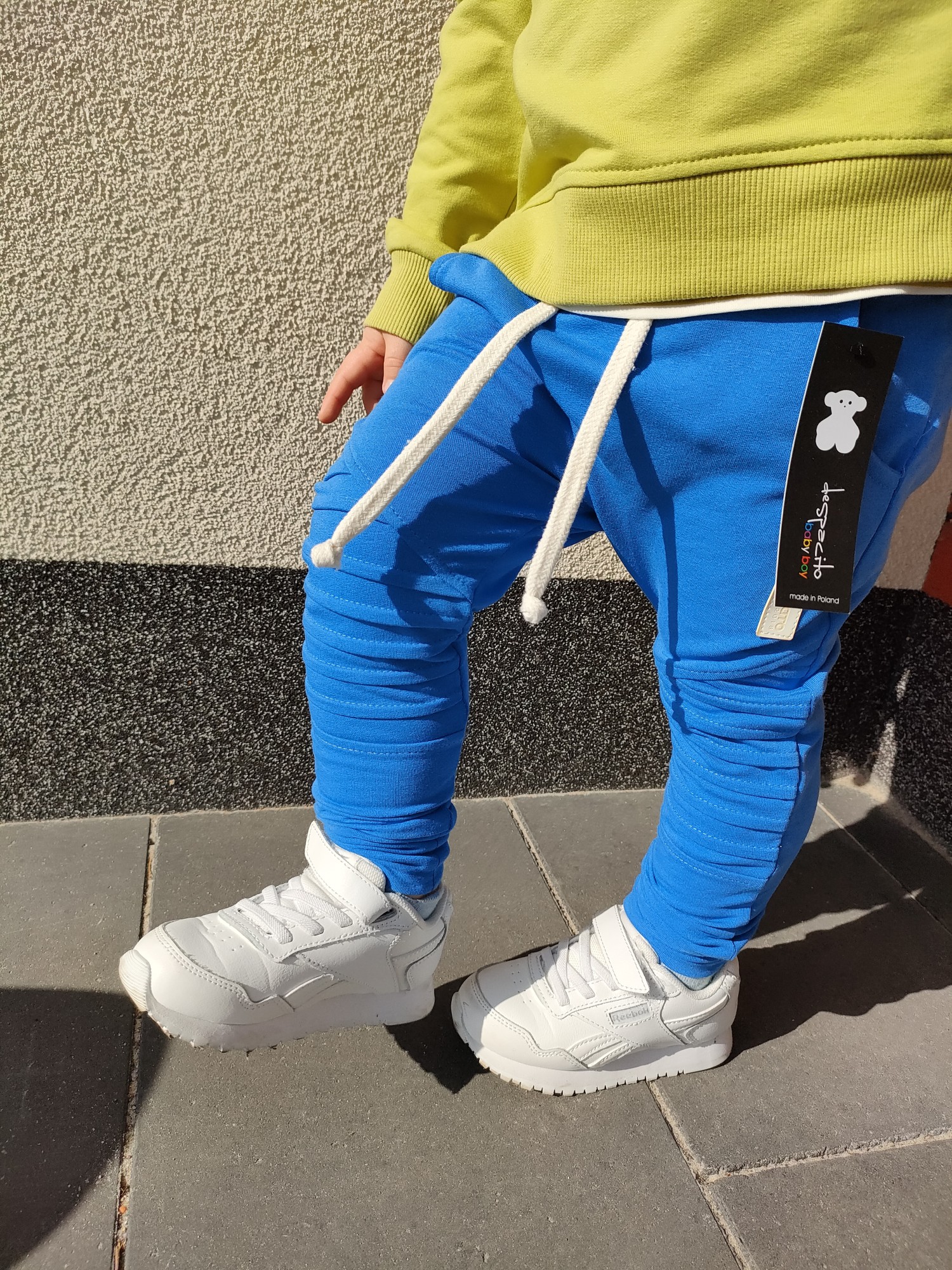Bawełniane spodnie Despacito 'basic' z przeszyciami na kolanach niebieski