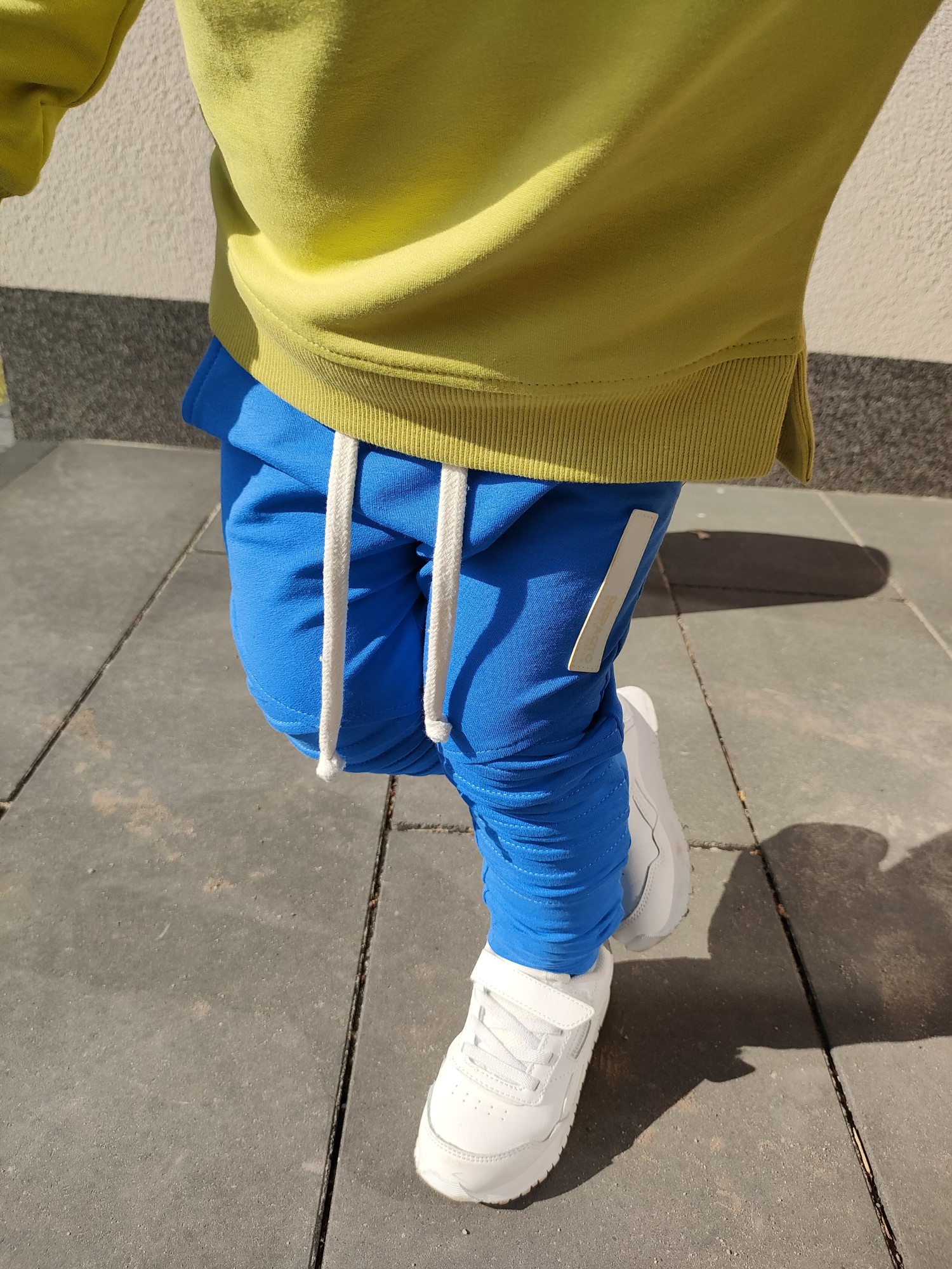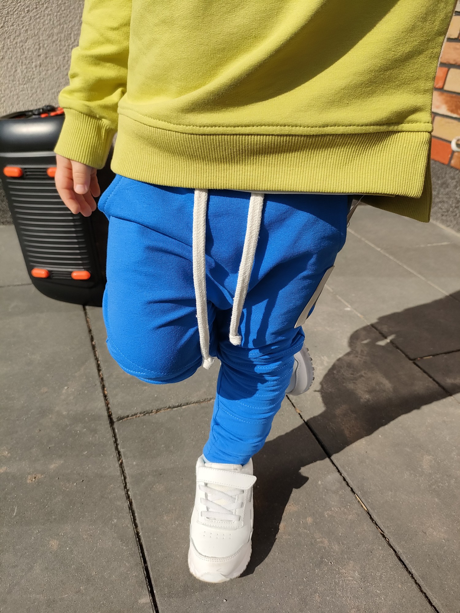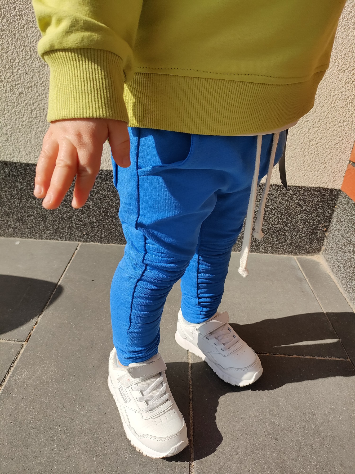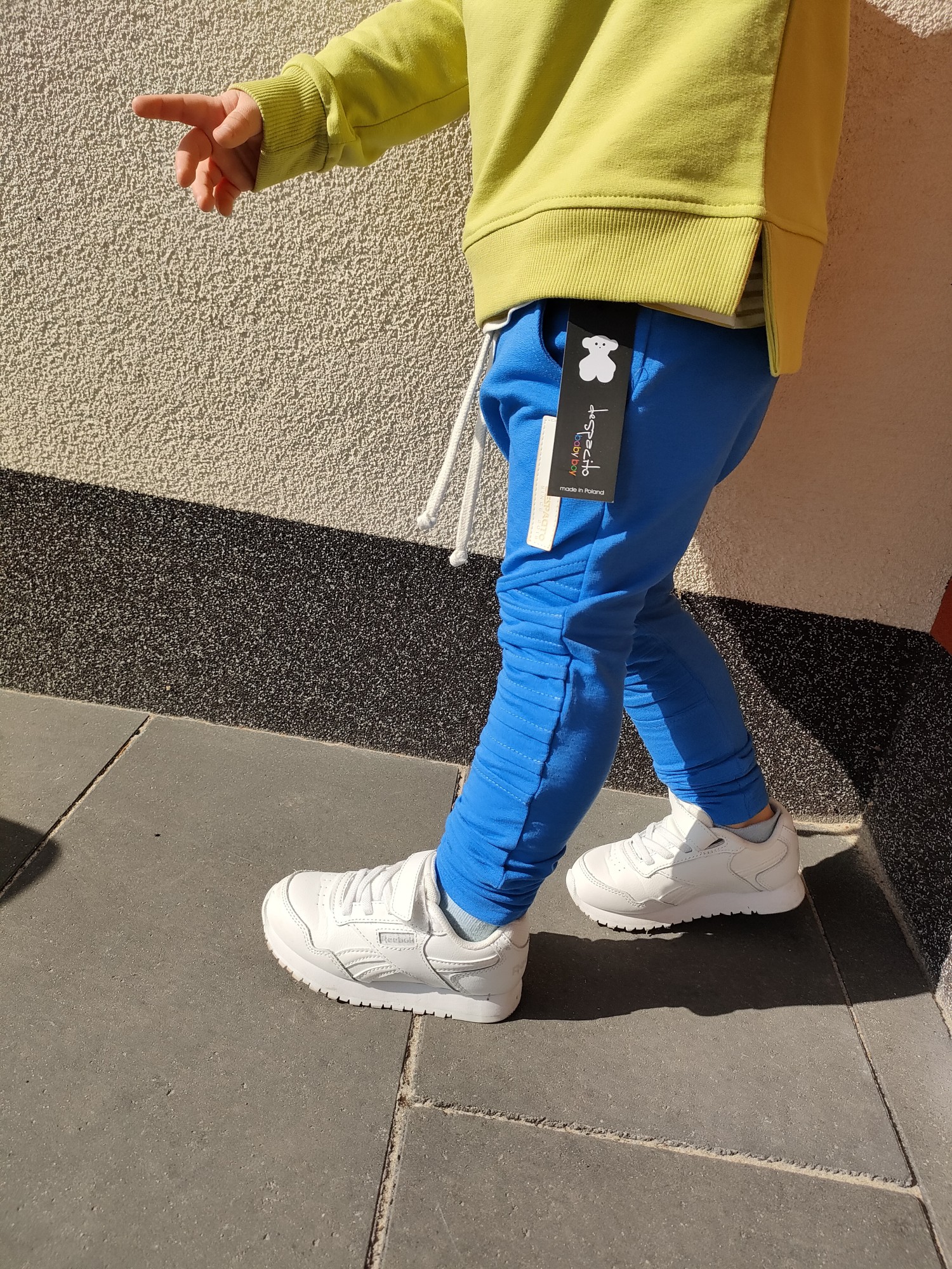 Bawełniane spodnie Despacito 'basic' z przeszyciami na kolanach niebieski
