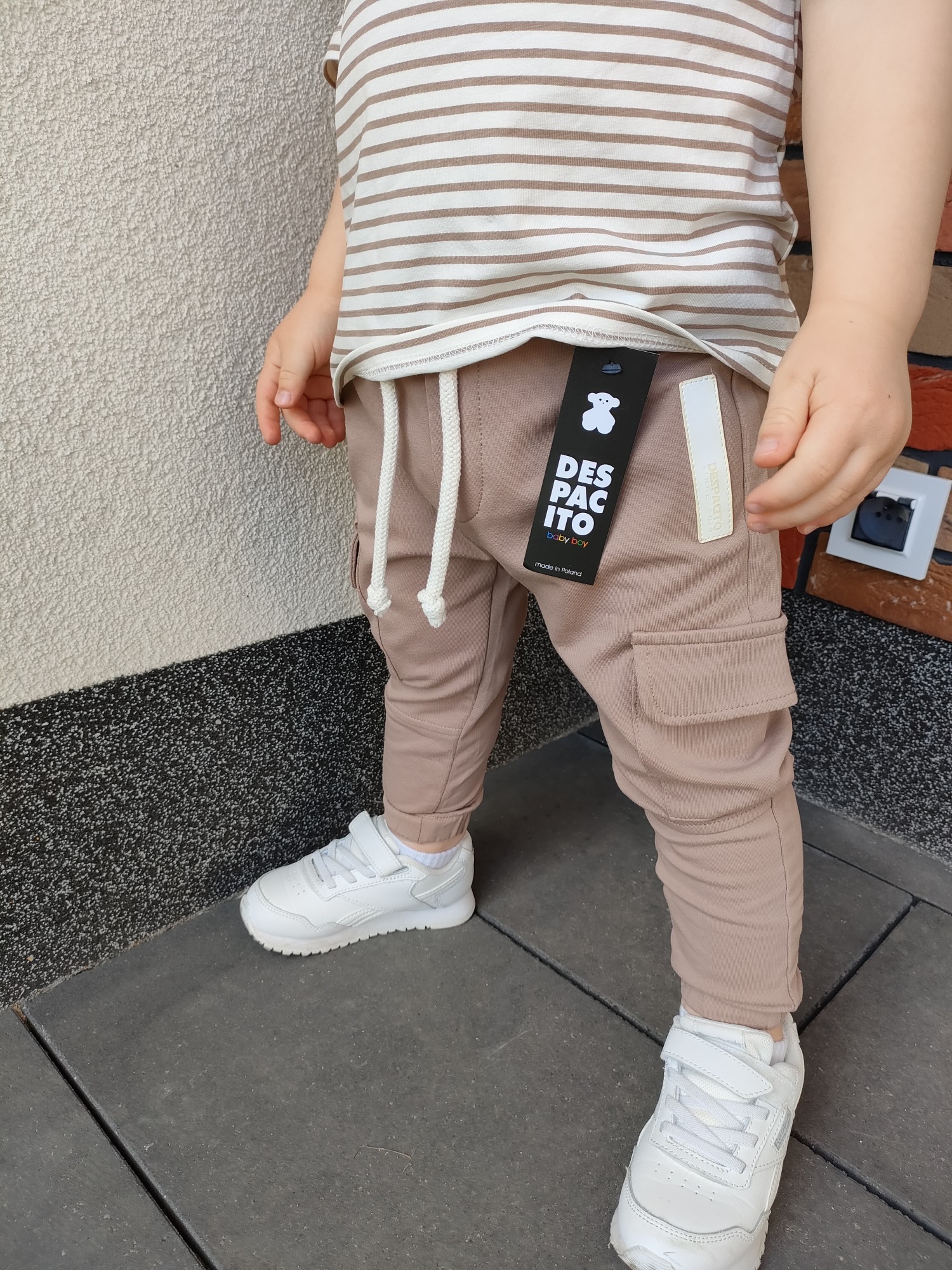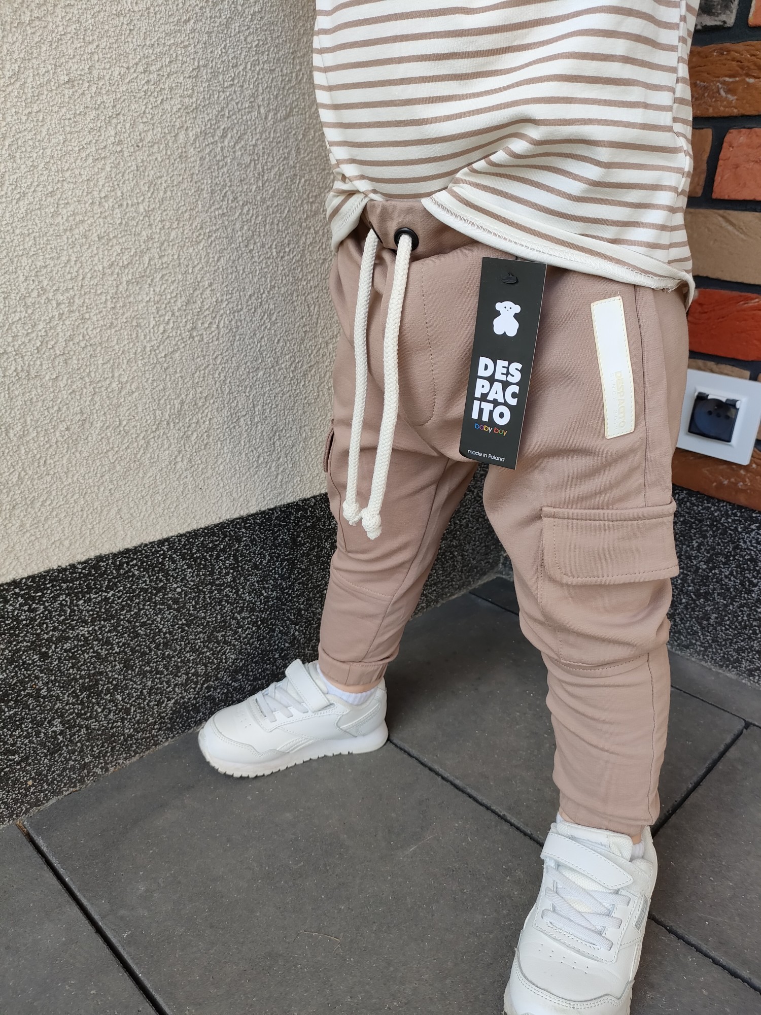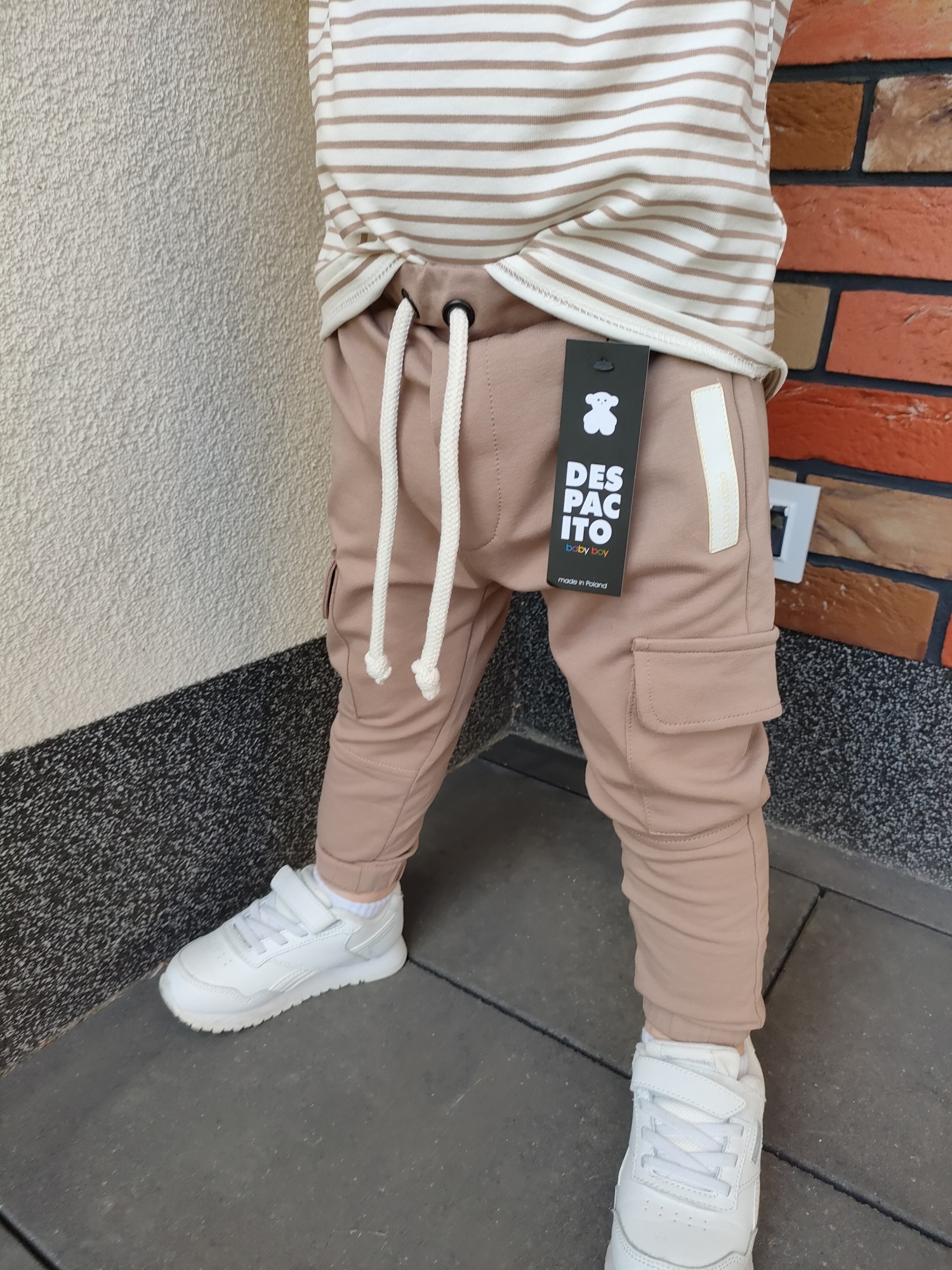 Bawełniane spodnie Despacito bojówki z gumką w nogawce beż