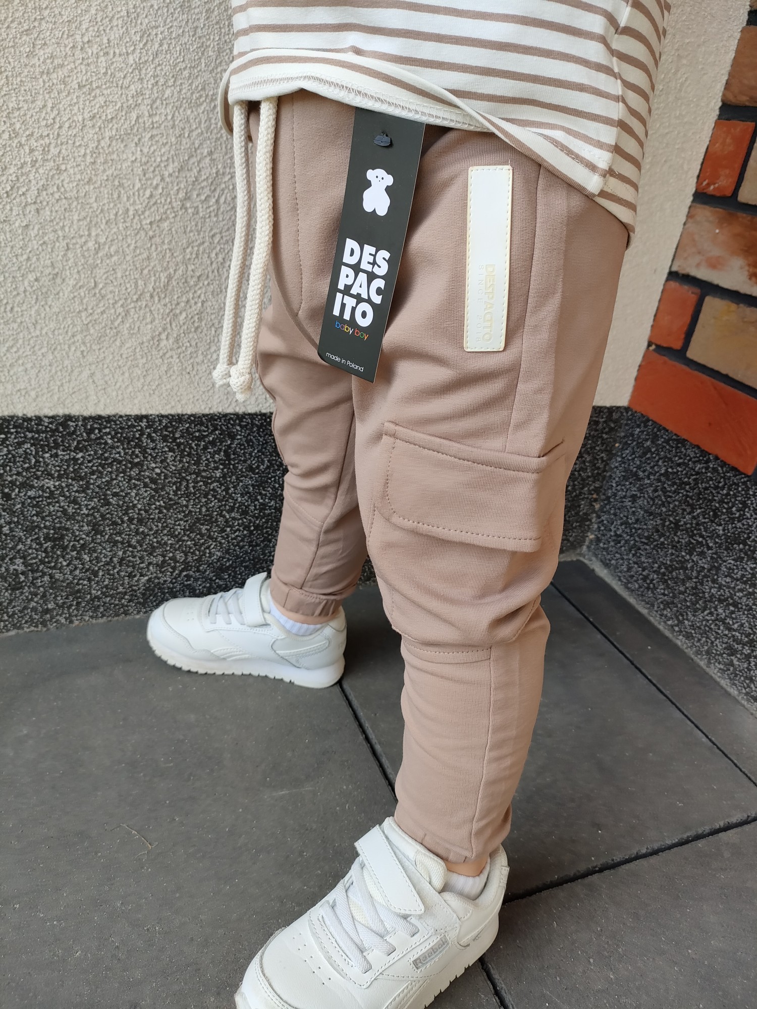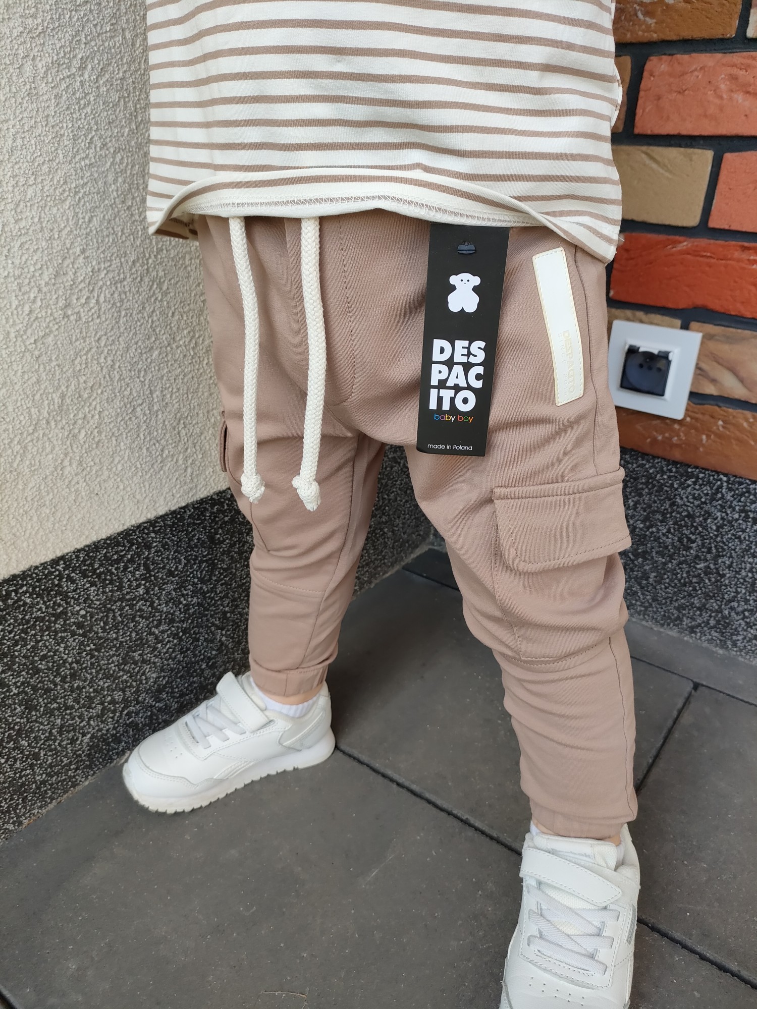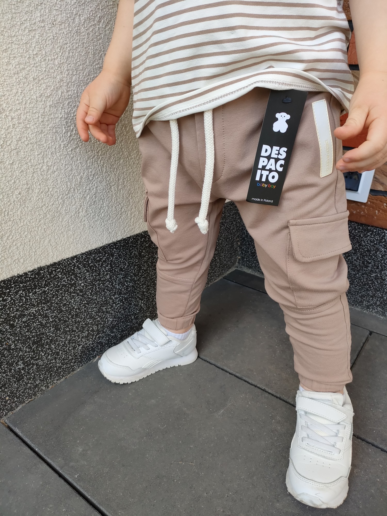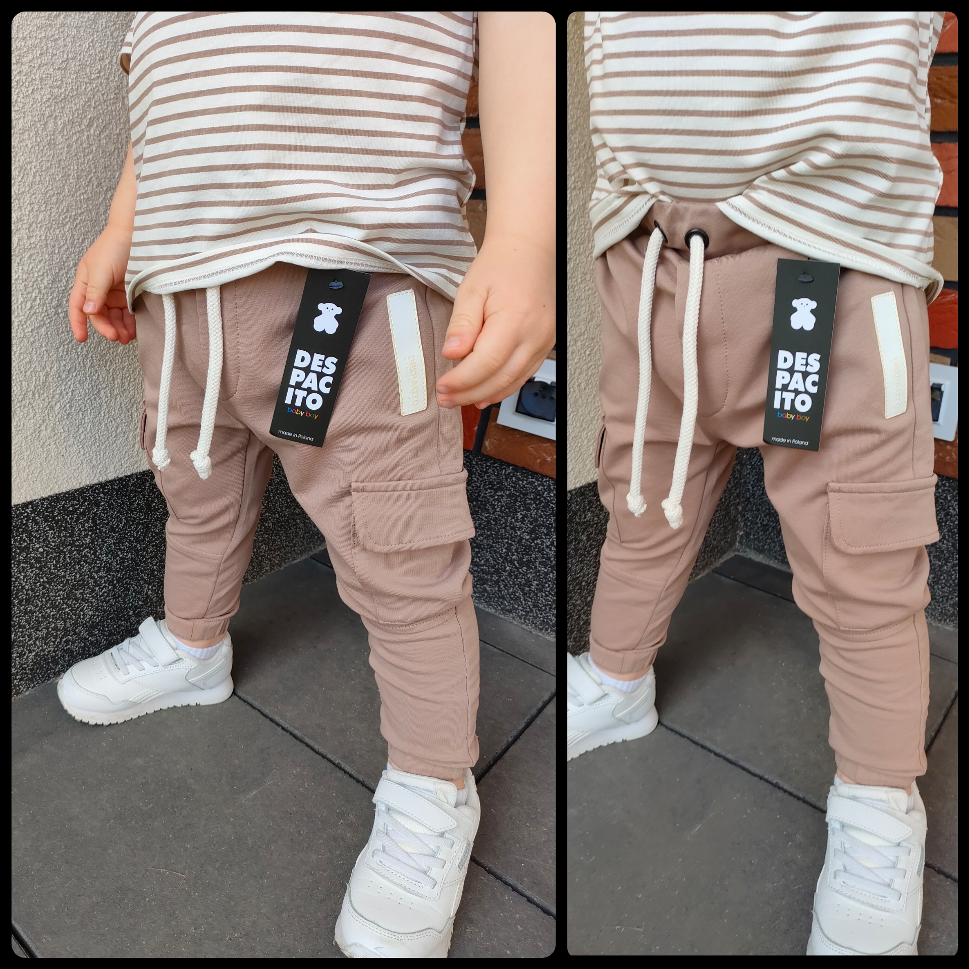Bawełniane spodnie Despacito bojówki z gumką w nogawce beż