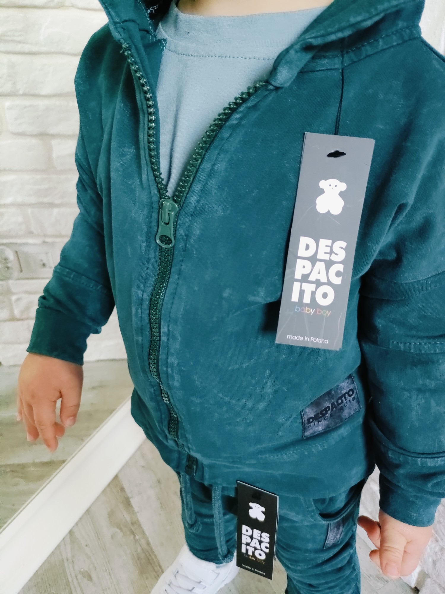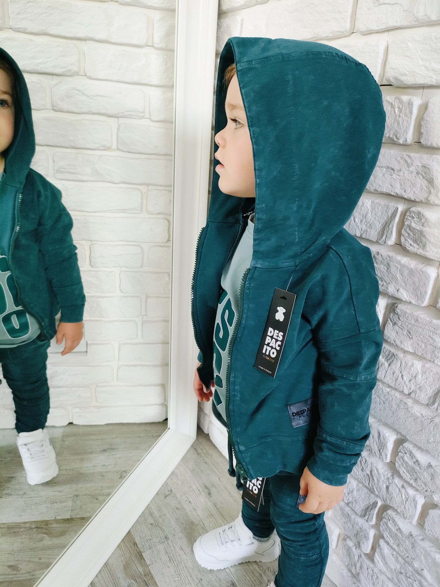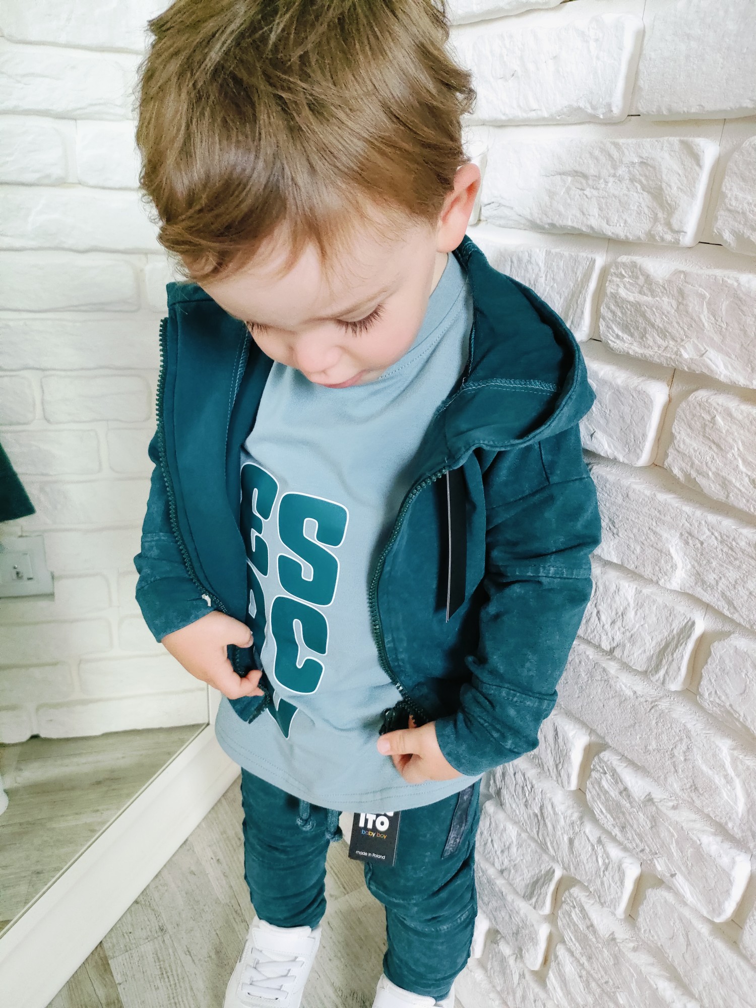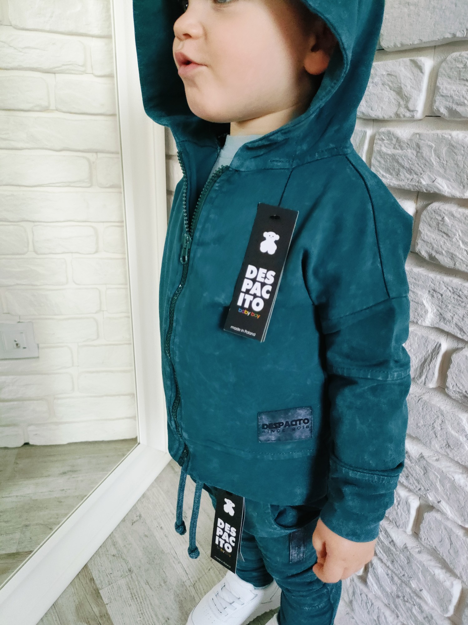Jedno klik i masz look, który robi robotę. Miękka bawełna, efekt dekatyzowania jak po setce prań, zamek do samej góry i ta głęboka zieleń „deep lagun”, która gra z każdym basicem. To bluza, którą dzieciak założy rano – i nie będzie chciał zdjąć do wieczora.