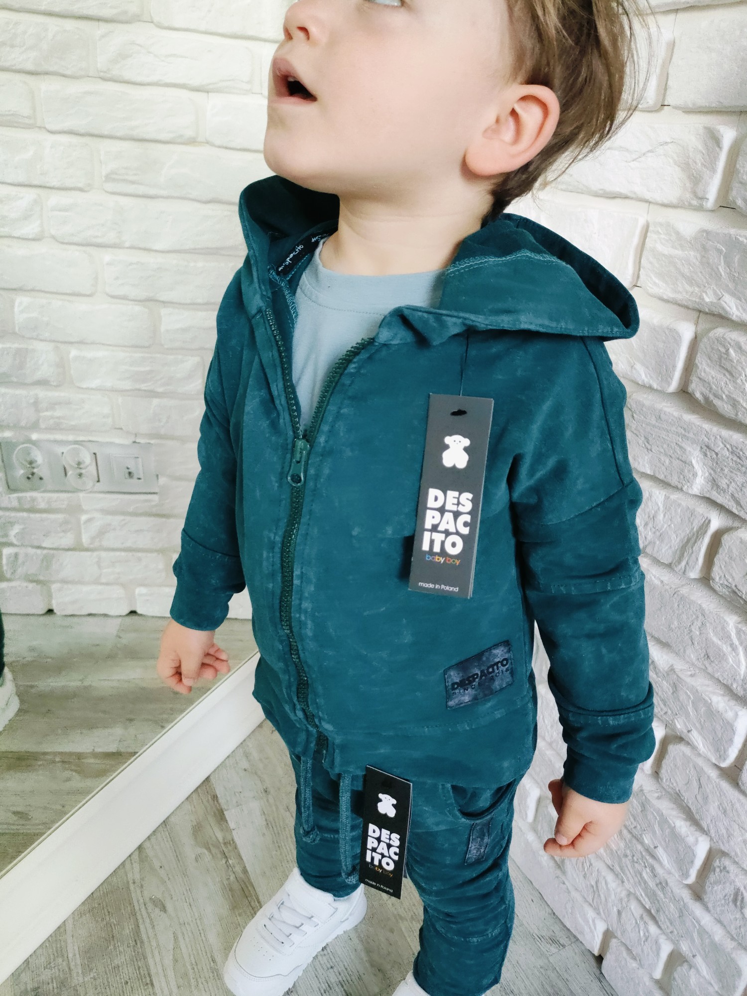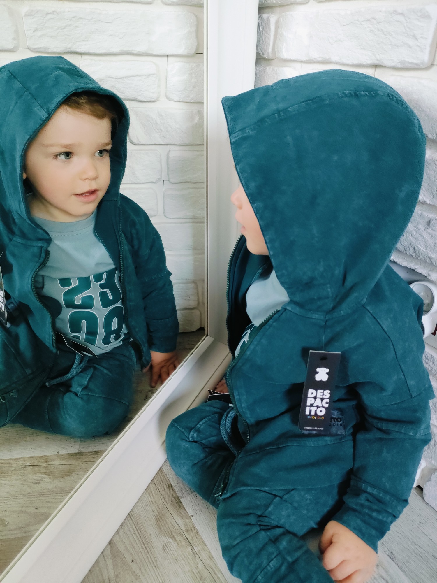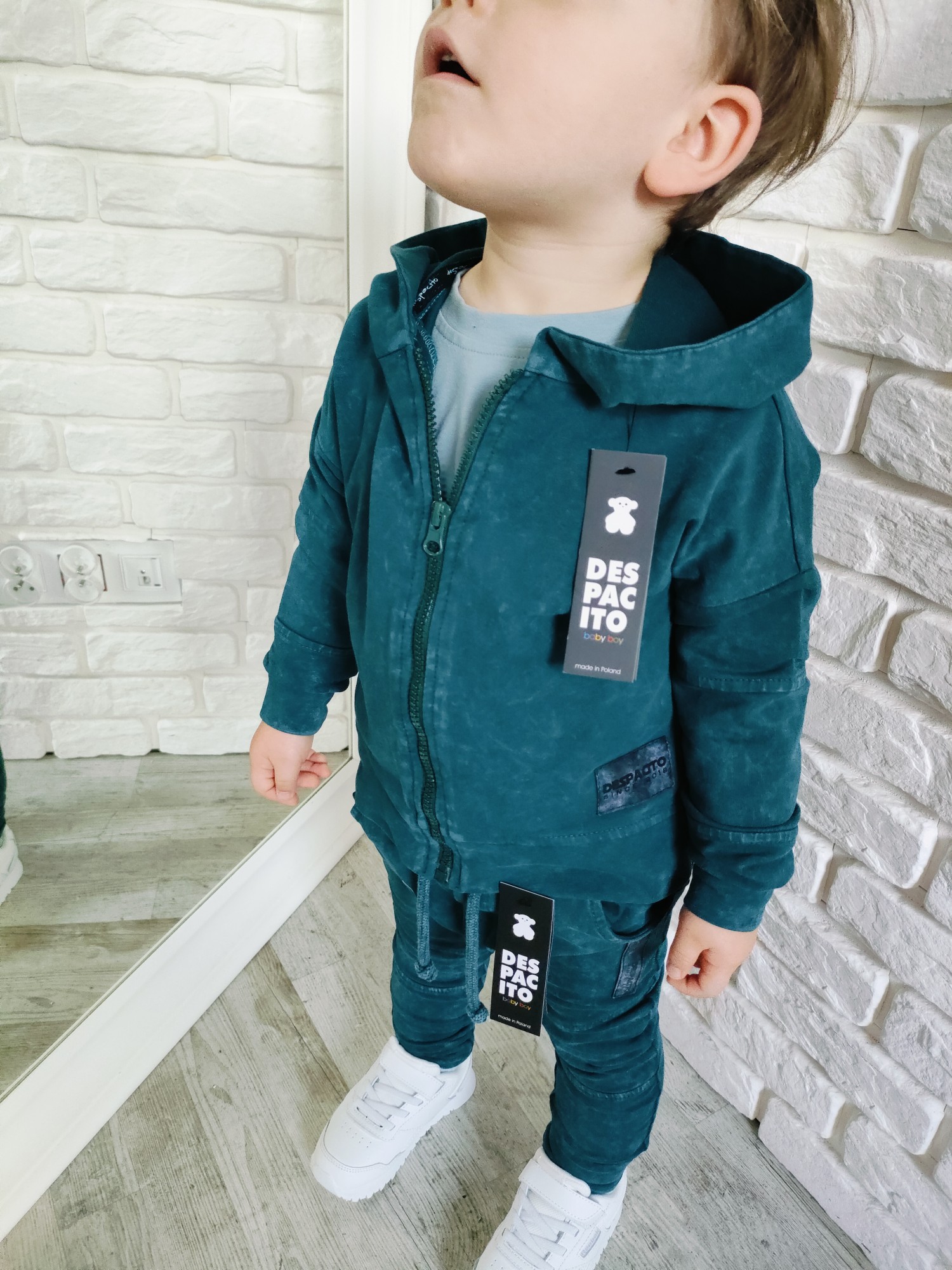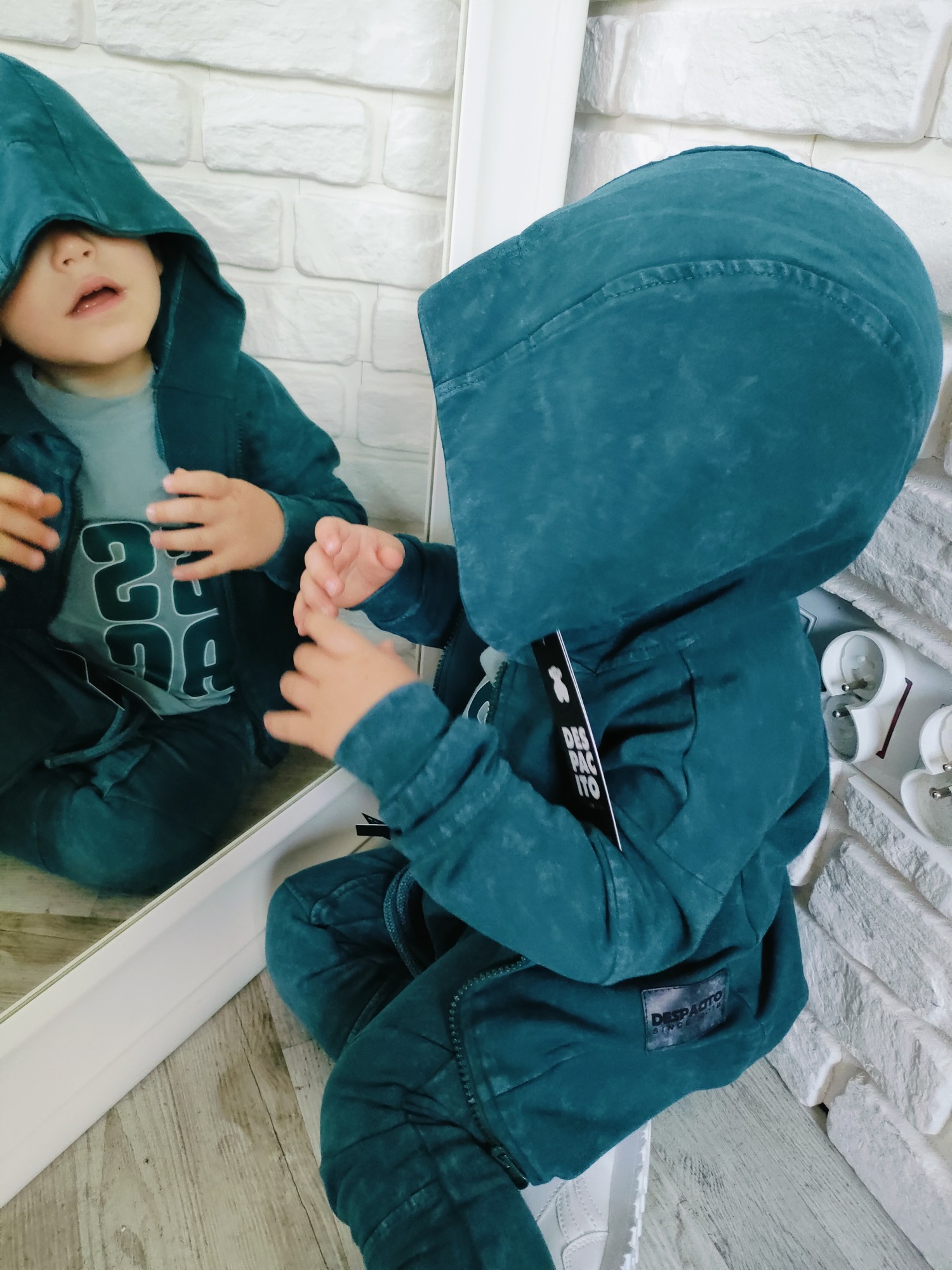 Jedno klik i masz look, który robi robotę. Miękka bawełna, efekt dekatyzowania jak po setce prań, zamek do samej góry i ta głęboka zieleń „deep lagun”, która gra z każdym basicem. To bluza, którą dzieciak założy rano – i nie będzie chciał zdjąć do wieczora.
