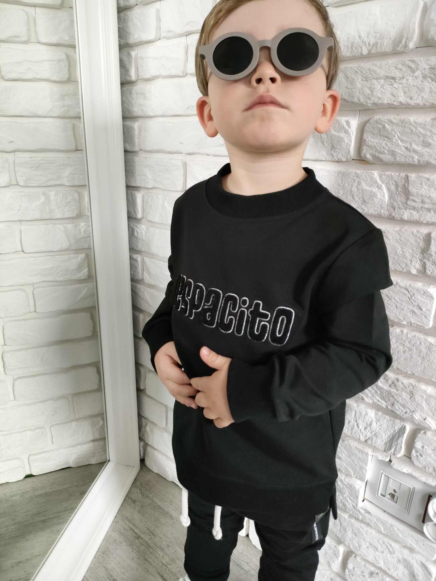 Czerń jak espresso: krótko, mocno, na temat. Ta bluza Despacito „fluffy” to codzienny pewniak: przyjemny chwyt dzianiny daje komfort, a lekka sprężystość trzyma formę po praniu. Krój „do życia” - nic nie ciągnie, nic nie gryzie, po prostu działa do szkoły, na plac i pod kurtkę.