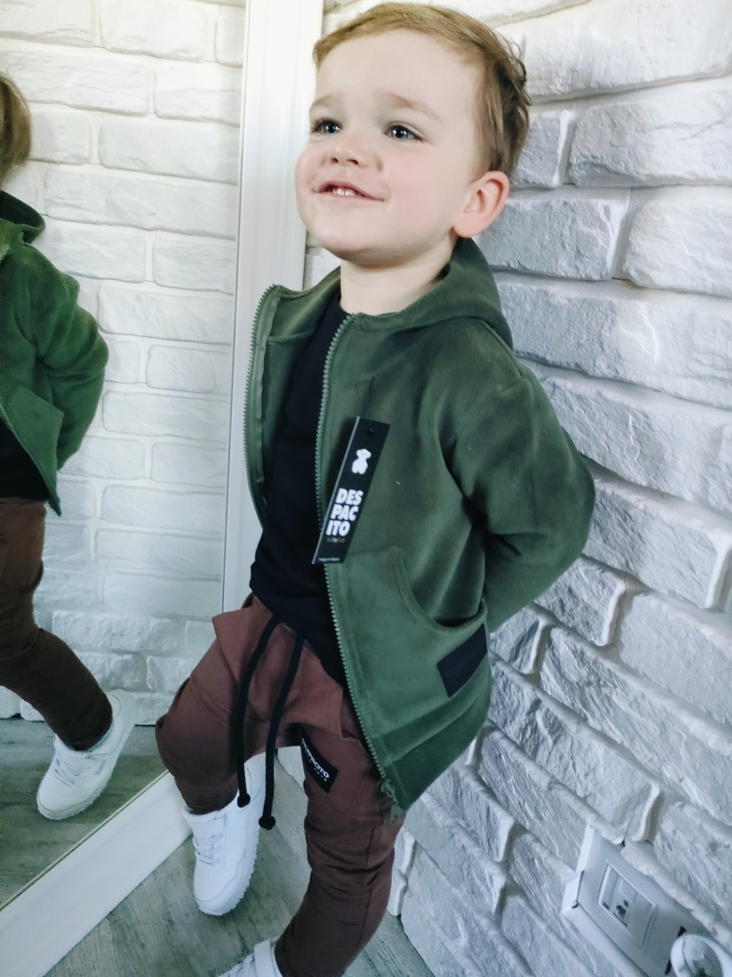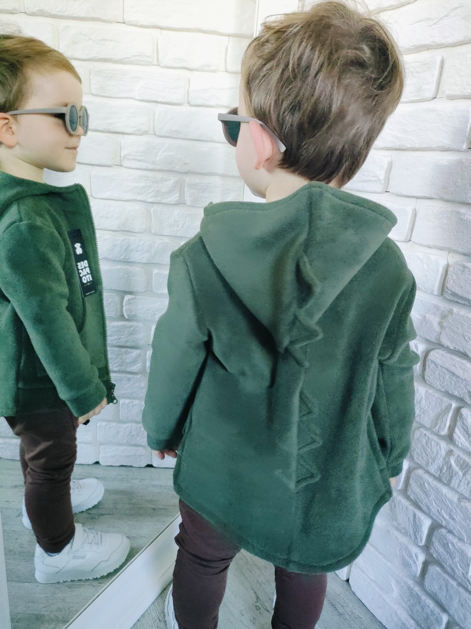 Khaki jak park po deszczu – spokojny kolor, który robi styl. Despacito Dino to bluza „do życia”: dzianina z 95% bawełny i 5% elastanu nosi się miękko, trzyma kształt po praniu i nie kaprysi w biegu między lekcjami a placem zabaw. Wykończenie „warm up” dodaje przytulności, ale bez zbędnej grubości – pod kurtkę czy kamizelkę wchodzi idealnie. Dino robi uśmiech, a ściągacze pilnują linii.