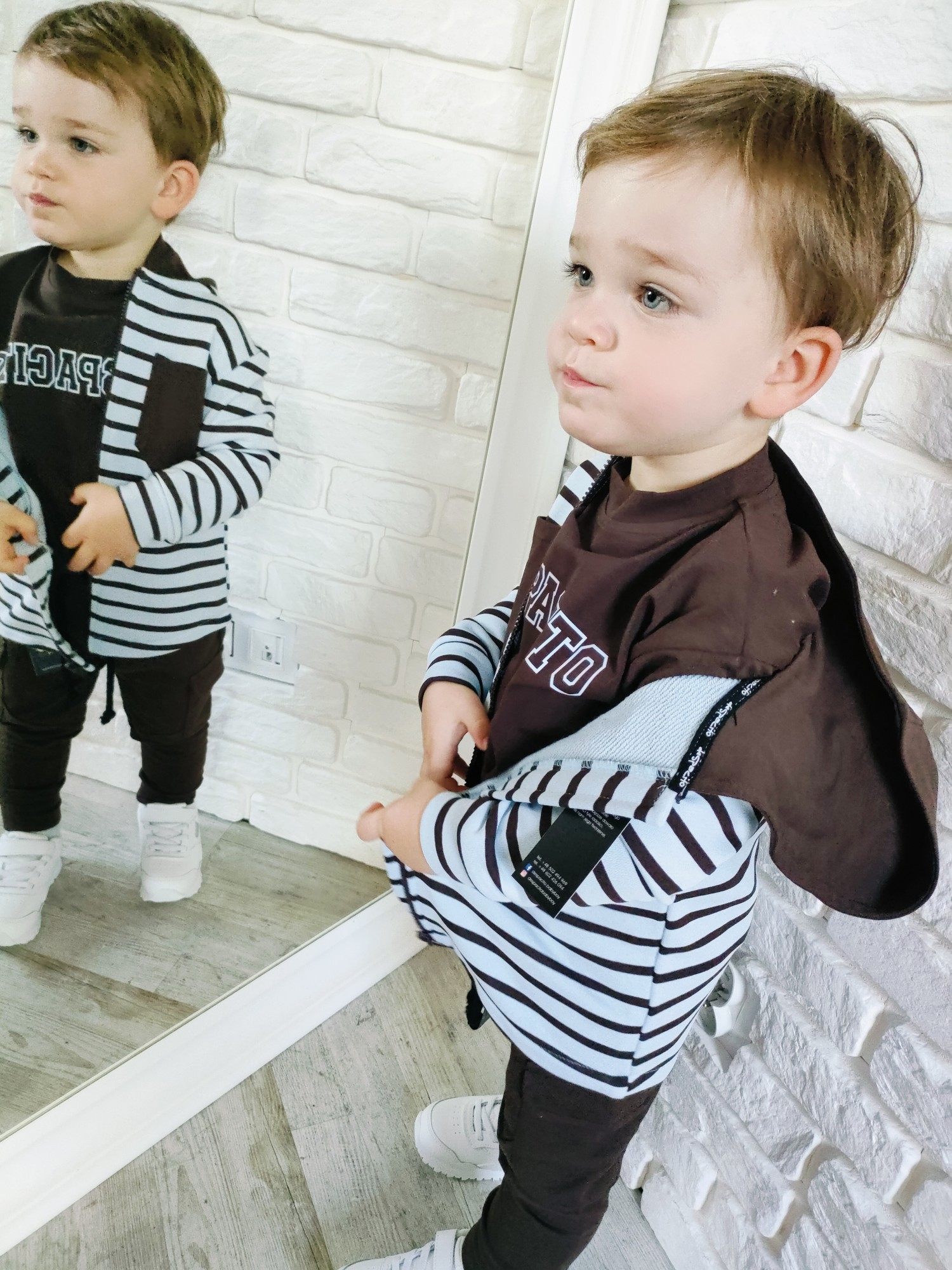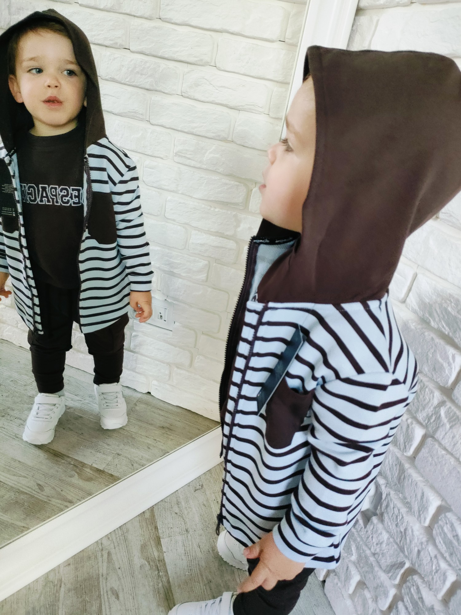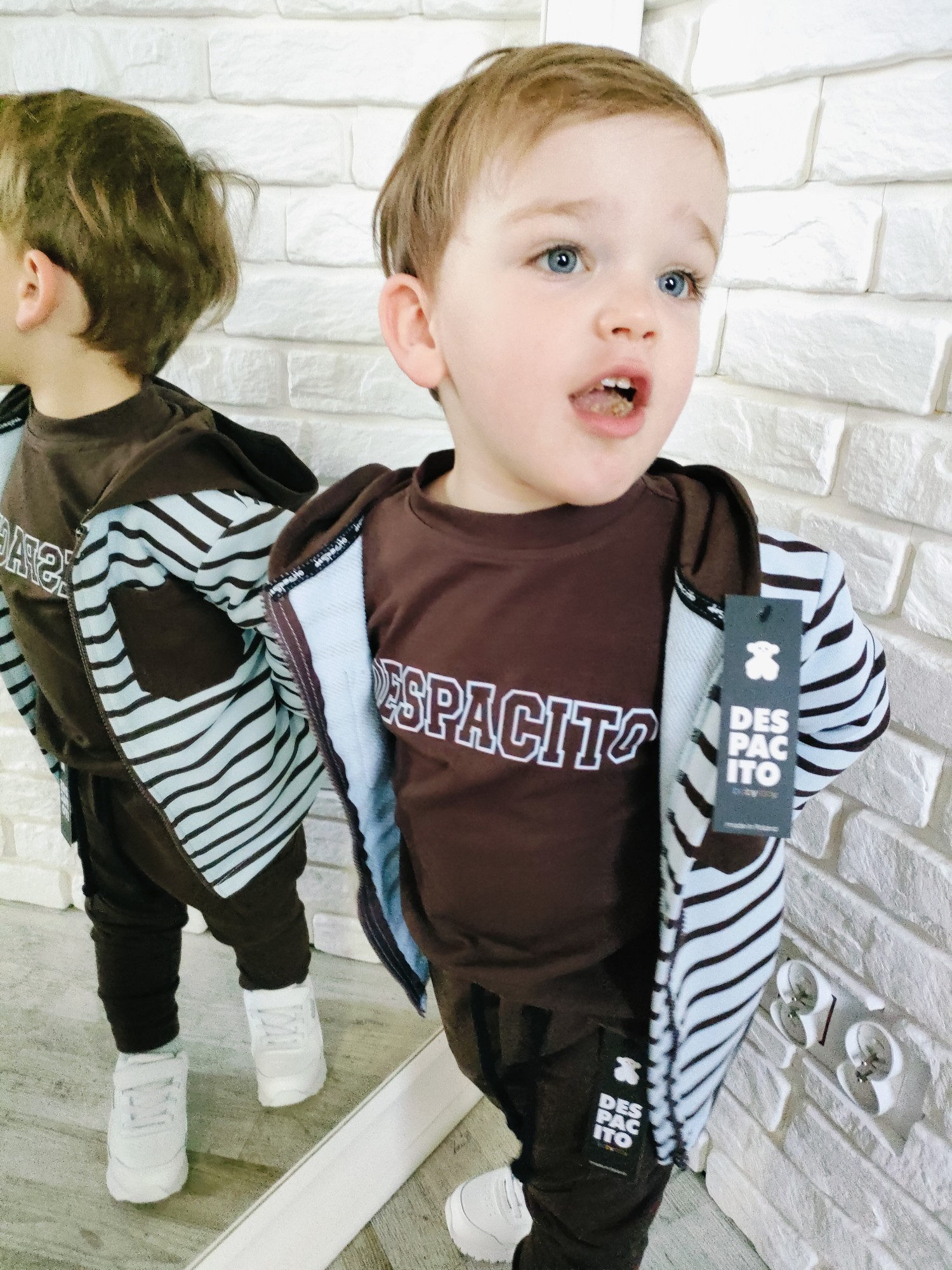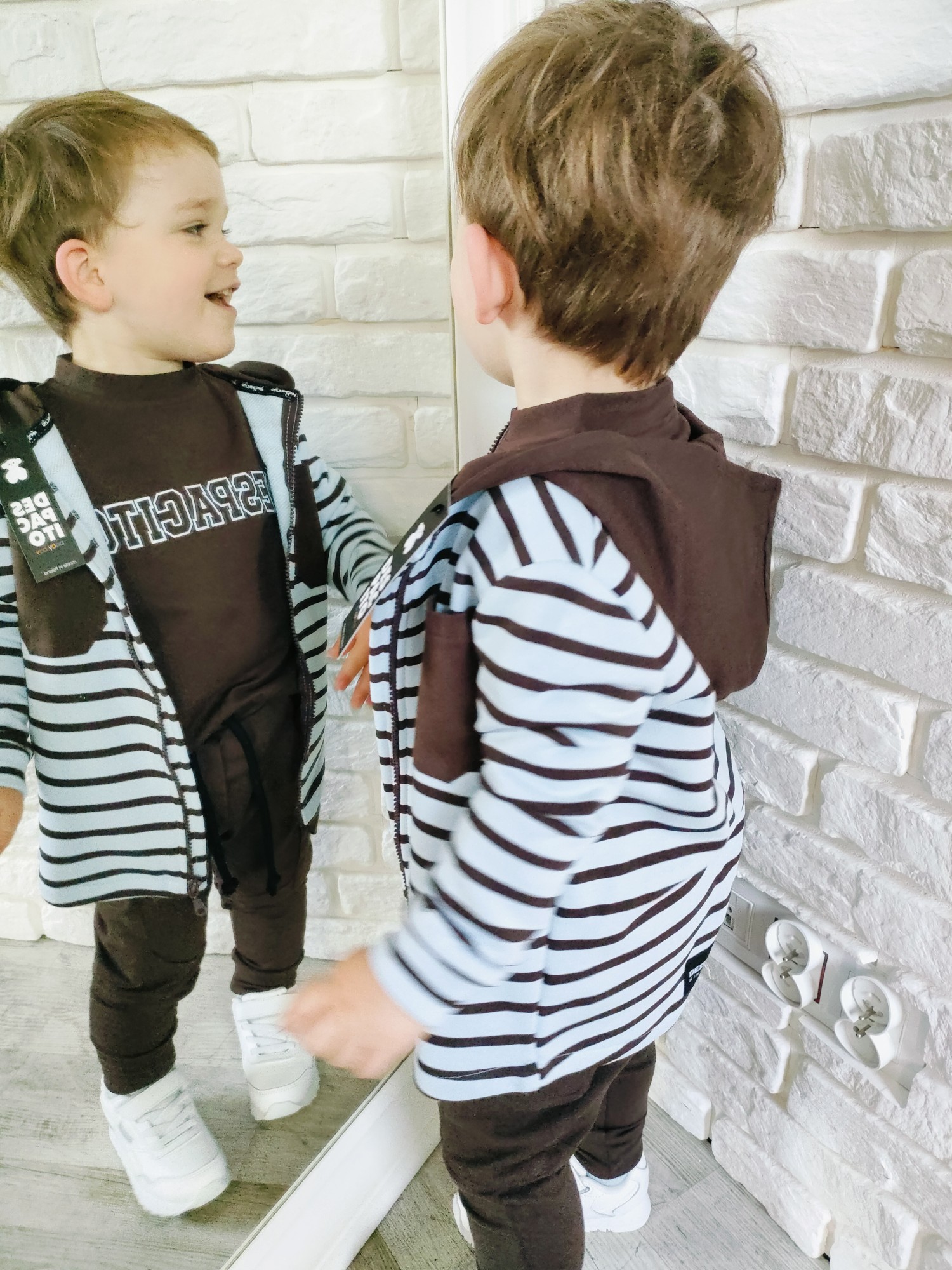 Bluza Despacito w paski „czekolada” to ciepły, głęboki brąz i rytm pasków, który robi charakter bez krzyku. Full-zip ogarnia poranki w minutę, kaptur chroni od wiatru, a miękka dzianina dowozi wygodę w klasie i na placu zabaw. To jest ta bluza dziecięca na zamek, która gra z T-shirtem i longiem, a pod puchówką daje warstwę „na pewniaka”. „Czekolada” lubi ecru, beż, oliwkę, czerń i denim – składasz w sekundę, wygląda jak przemyślany set.