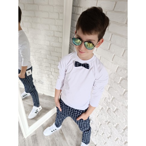 Bluzeczka elegancka z muchą kratka granat Style Kids