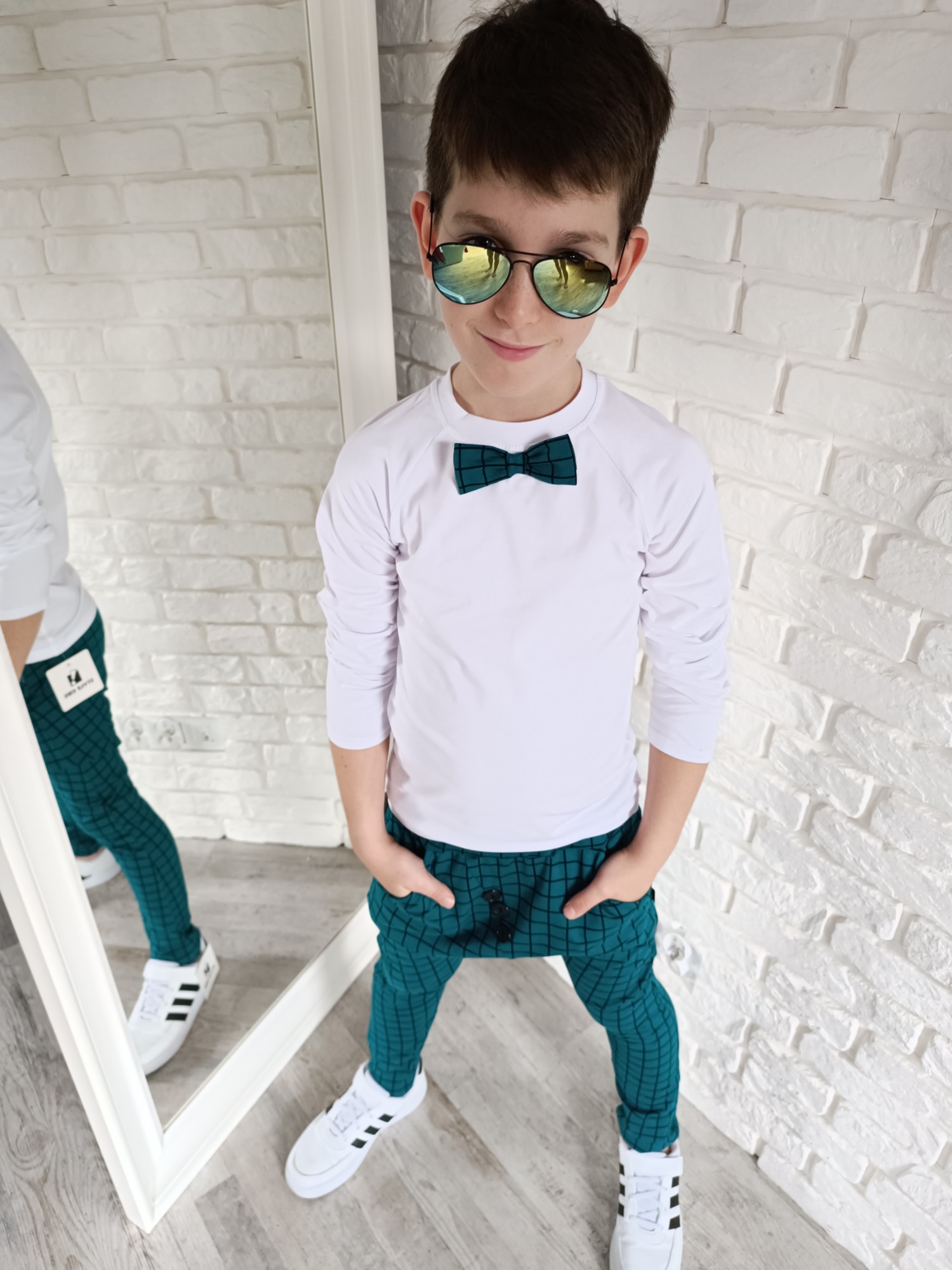 Bluzeczka elegancka z muchą kratka zieleń Style Kids
