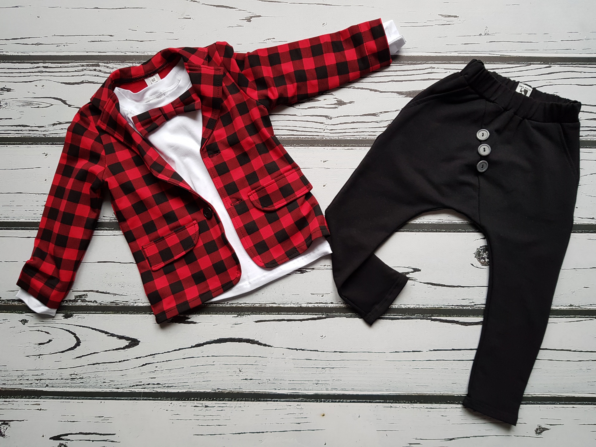 Bluzeczka elegancka z muchą w czerwoną kratę Style Kids