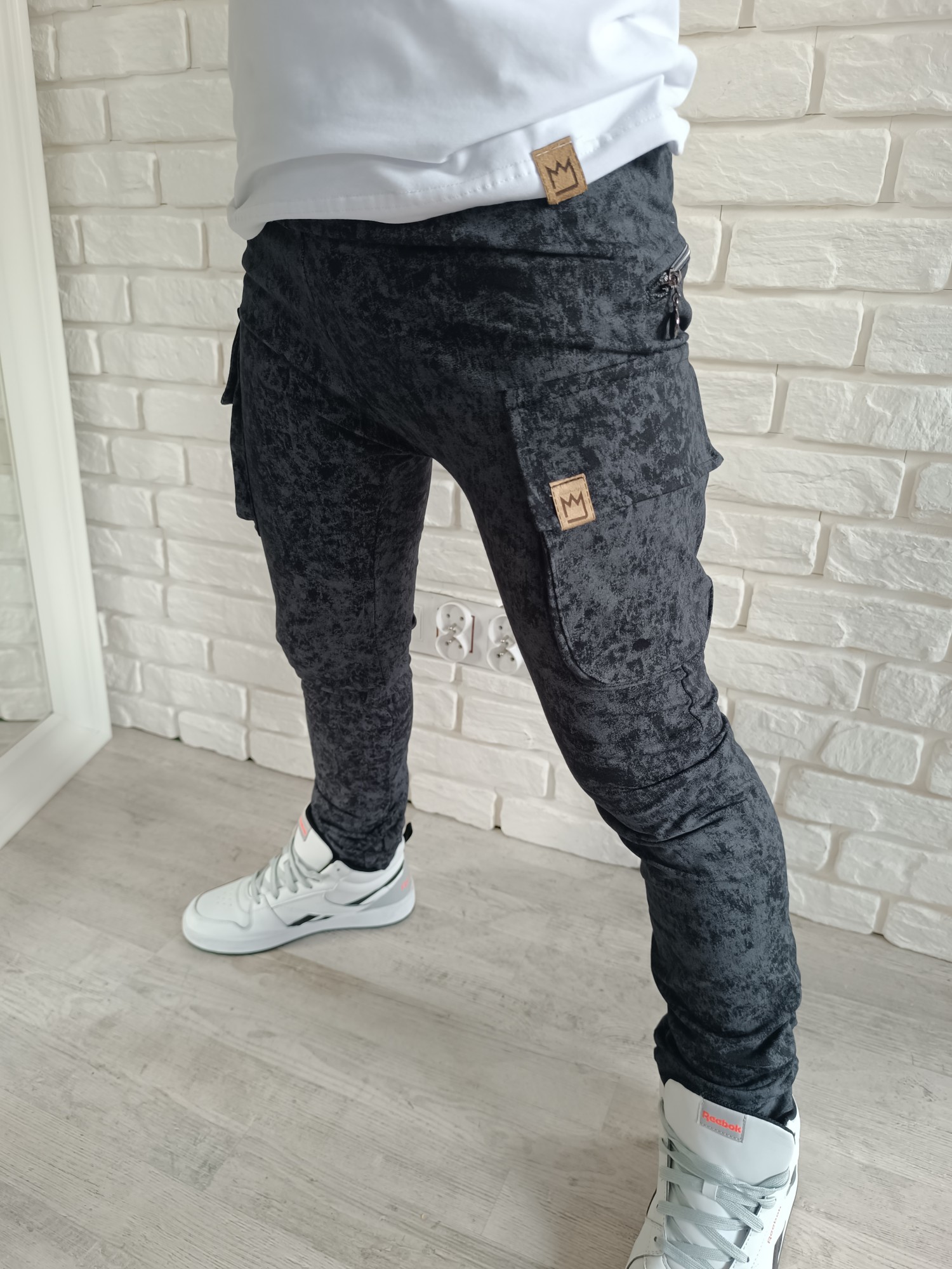 Bojówki dekatyzowane dresówka czerń Mimi