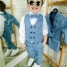 W skład zestawu wchodzą: marynarka, kamizelka, koszula, spodnie, mucha i przypinka do marynarki w kształcie róży wiatrów.