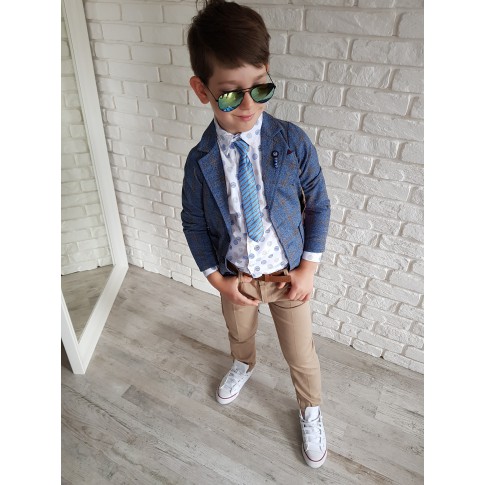 Zestaw 5-częściowy: Marynarka, mucha, koszula, pasek i spodnie.