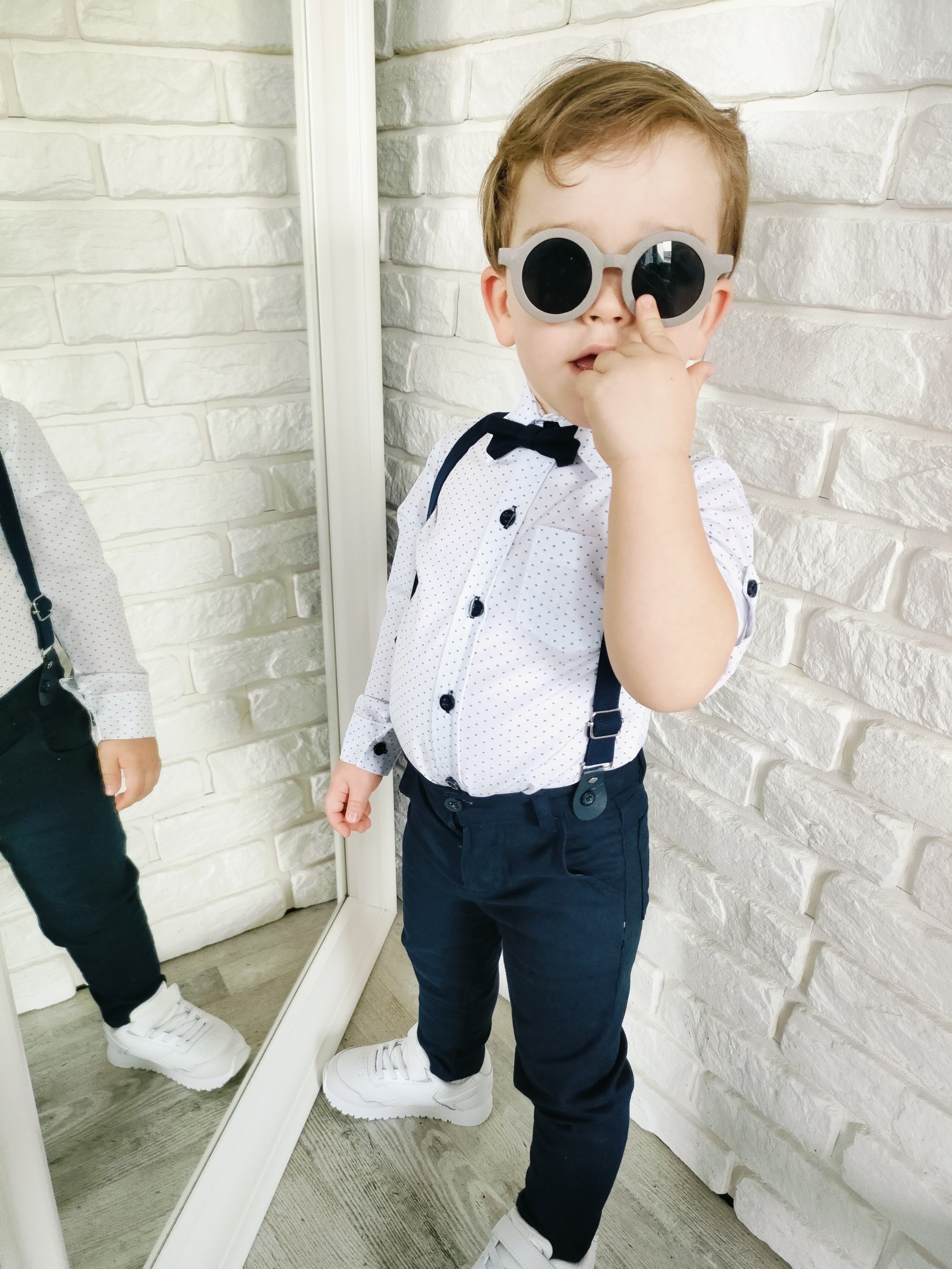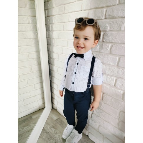 Komplet elegancki z muszką granat