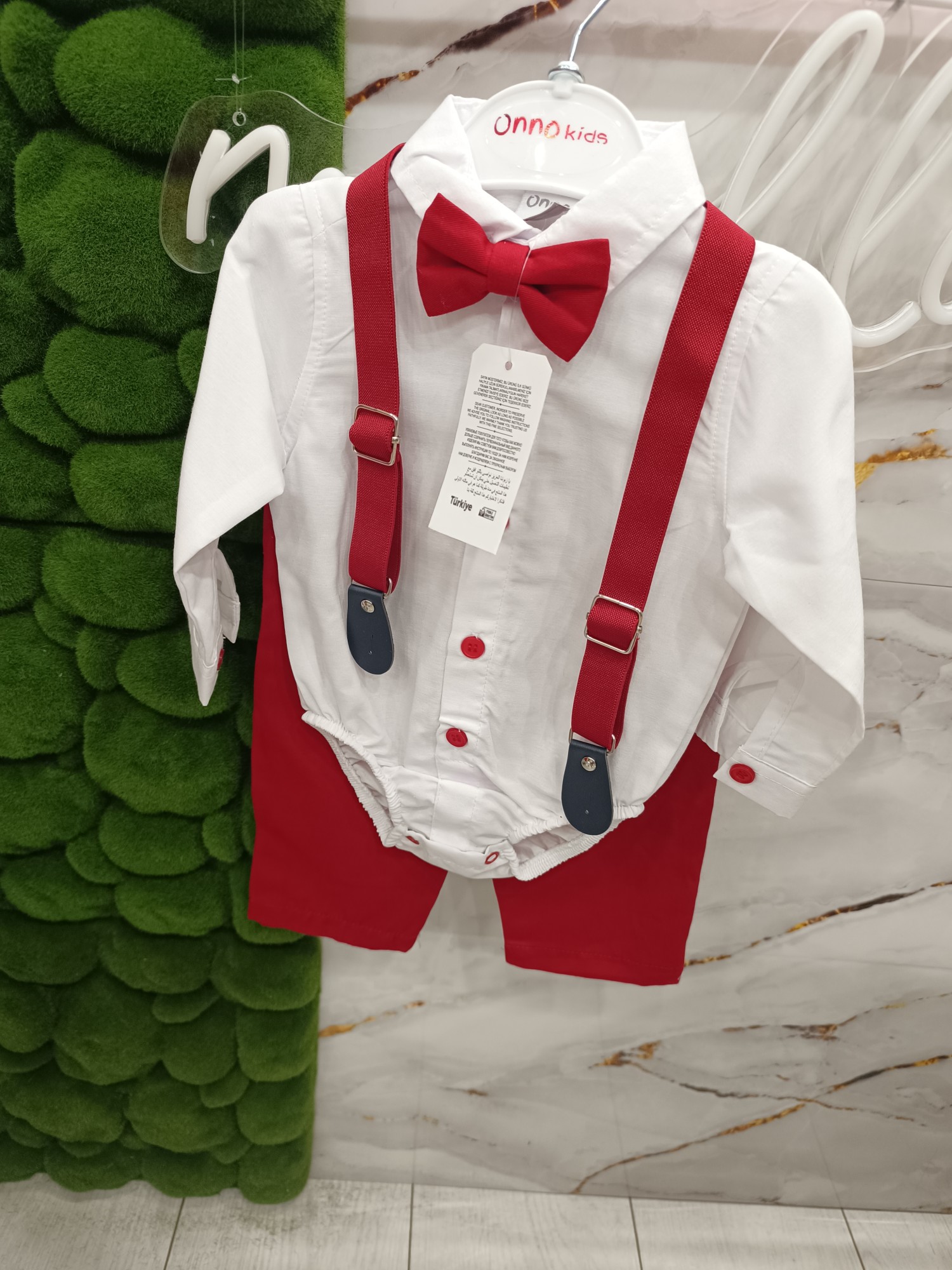 Komplet elegancki z szelkami i muszką „biała koszula + czerwone spodnie” to gotowy set na święta, rodzinne uroczystości, sesje zdjęciowe i szkolne akademie. Biel koszuli robi czystość i klasę, czerwień spodni daje efekt pierwszego wrażenia, a szelki z muszką spajają całość w styl „wow”, ale po dziecięcemu wygodny. To jest ten zestaw wizytowy dla chłopca, który wygląda „odświętnie”, a dalej pozwala biegać, tańczyć i czuć się swobodnie.