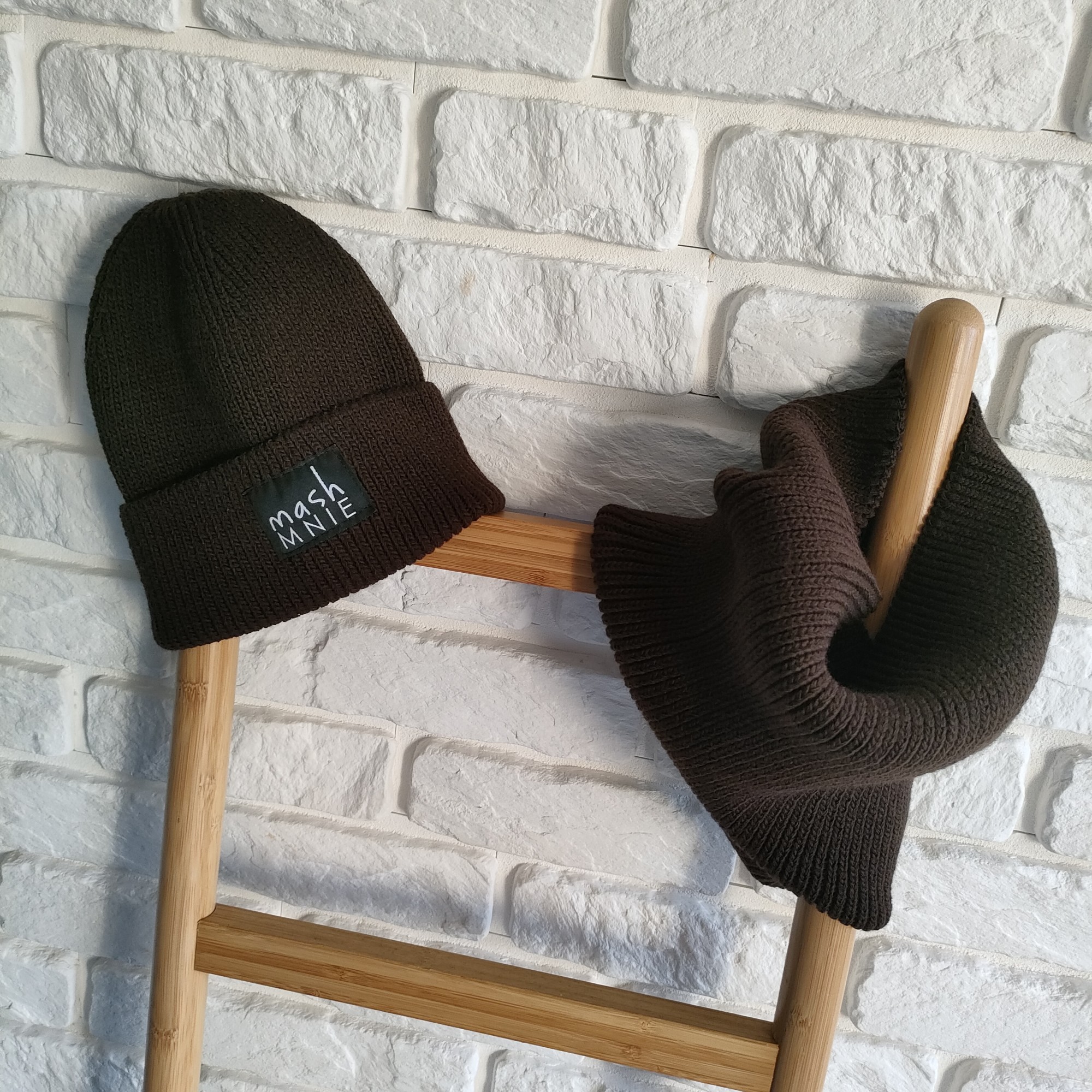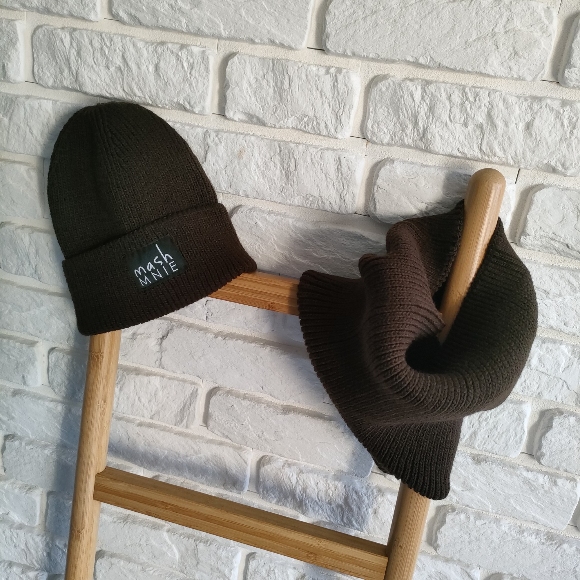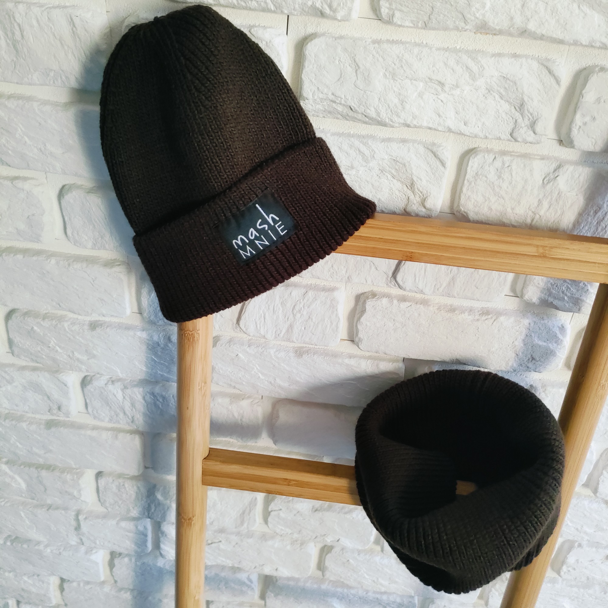 Zimowy komplet MashMnie czapka + komin kolor brązowy.