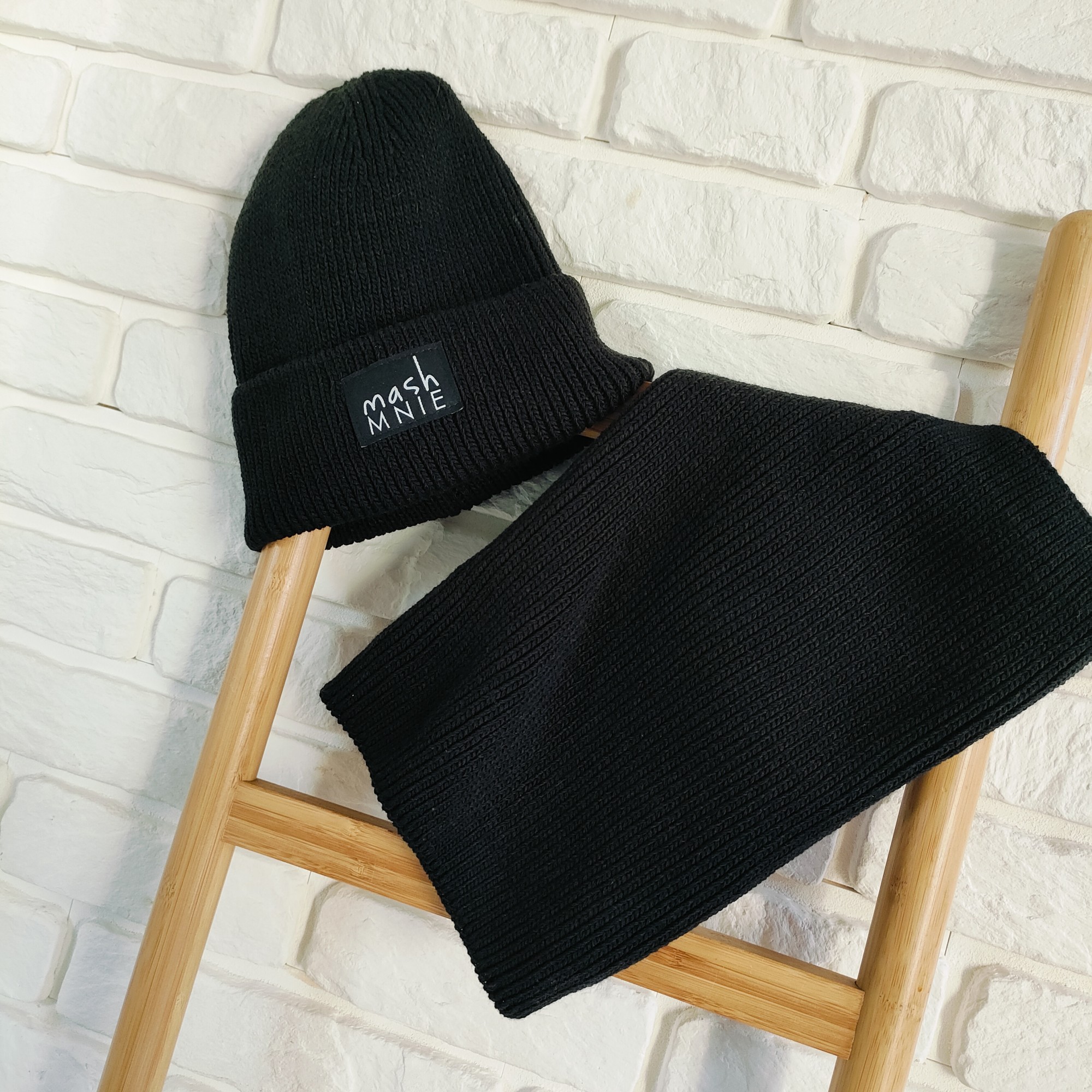Zimowy komplet MashMnie czapka + komin kolor czarny
