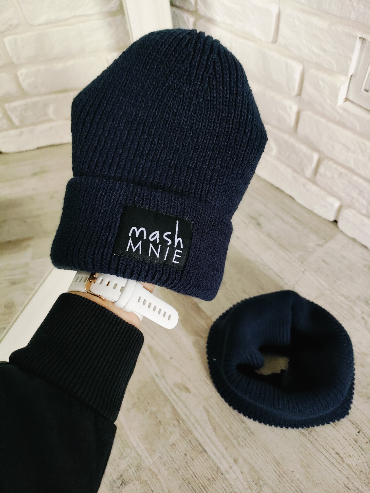 Zimowy komplet MashMnie czapka + komin kolor granat