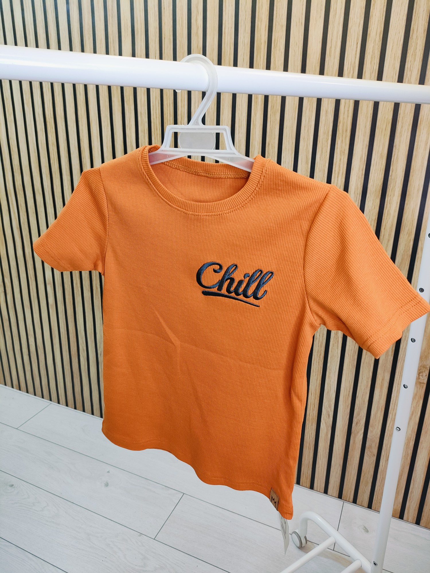 Koszulka prążek Chill cegła + haft grafit MiMi