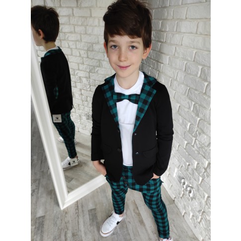 Marynarka z dresówki czerń + butelkowa krata Style Kids