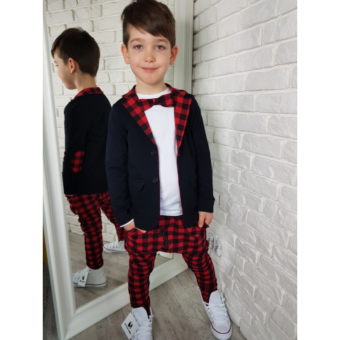 Marynarka z dresówki czerń z czerwoną kratą Style Kids
