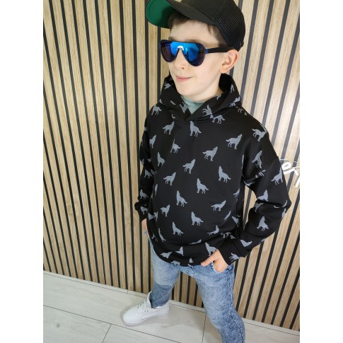 MashMnie BLUZA Z KAPTUREM WILKI CZARNA