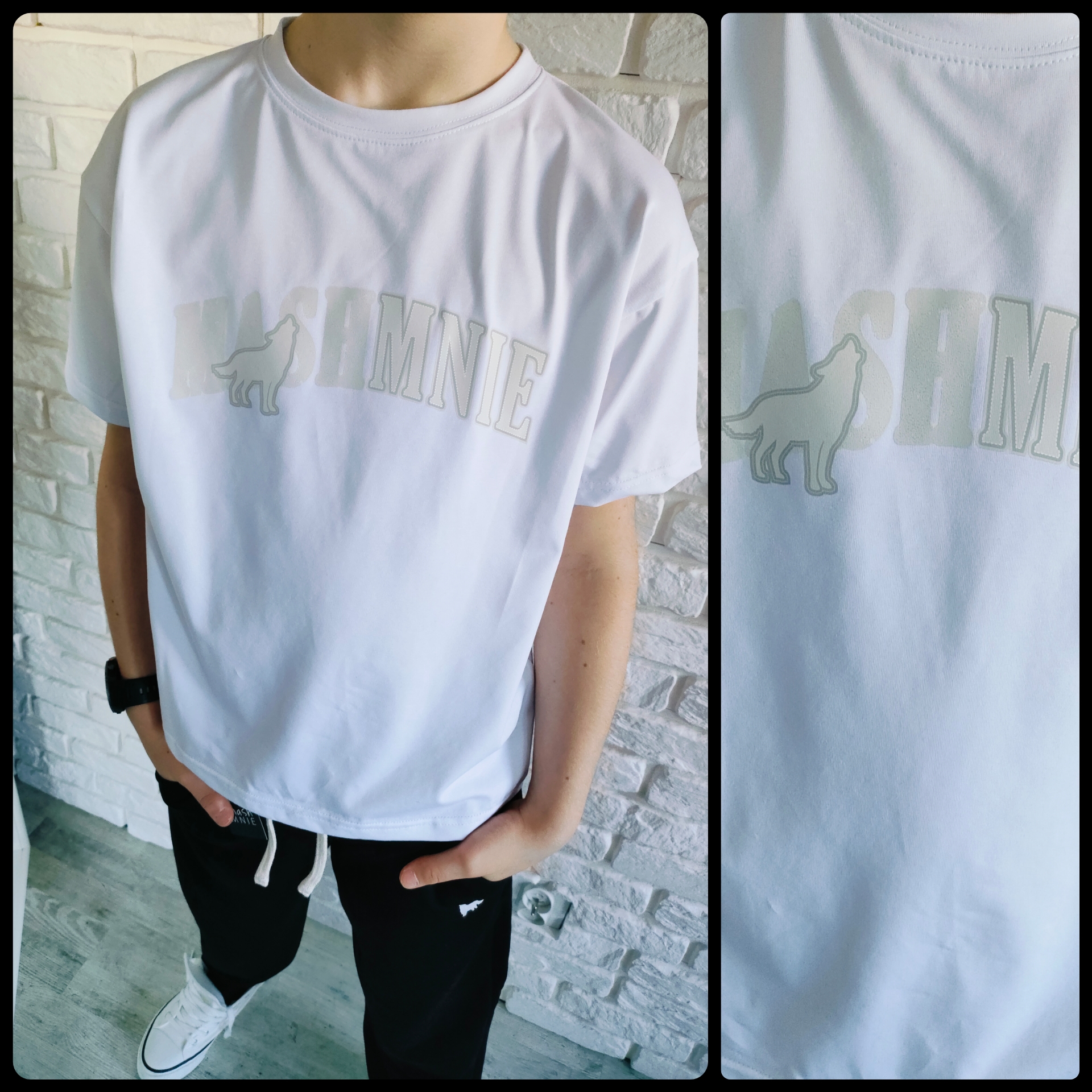 MashMnie Shadow Wolf Drop 1 T-Shirt over biały