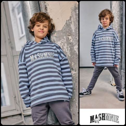 MashMnie Shadow Wolf Drop 2 Bluza z kapturem niebieska w paski