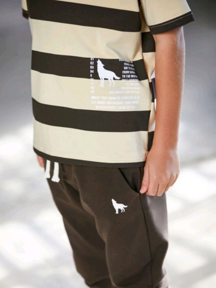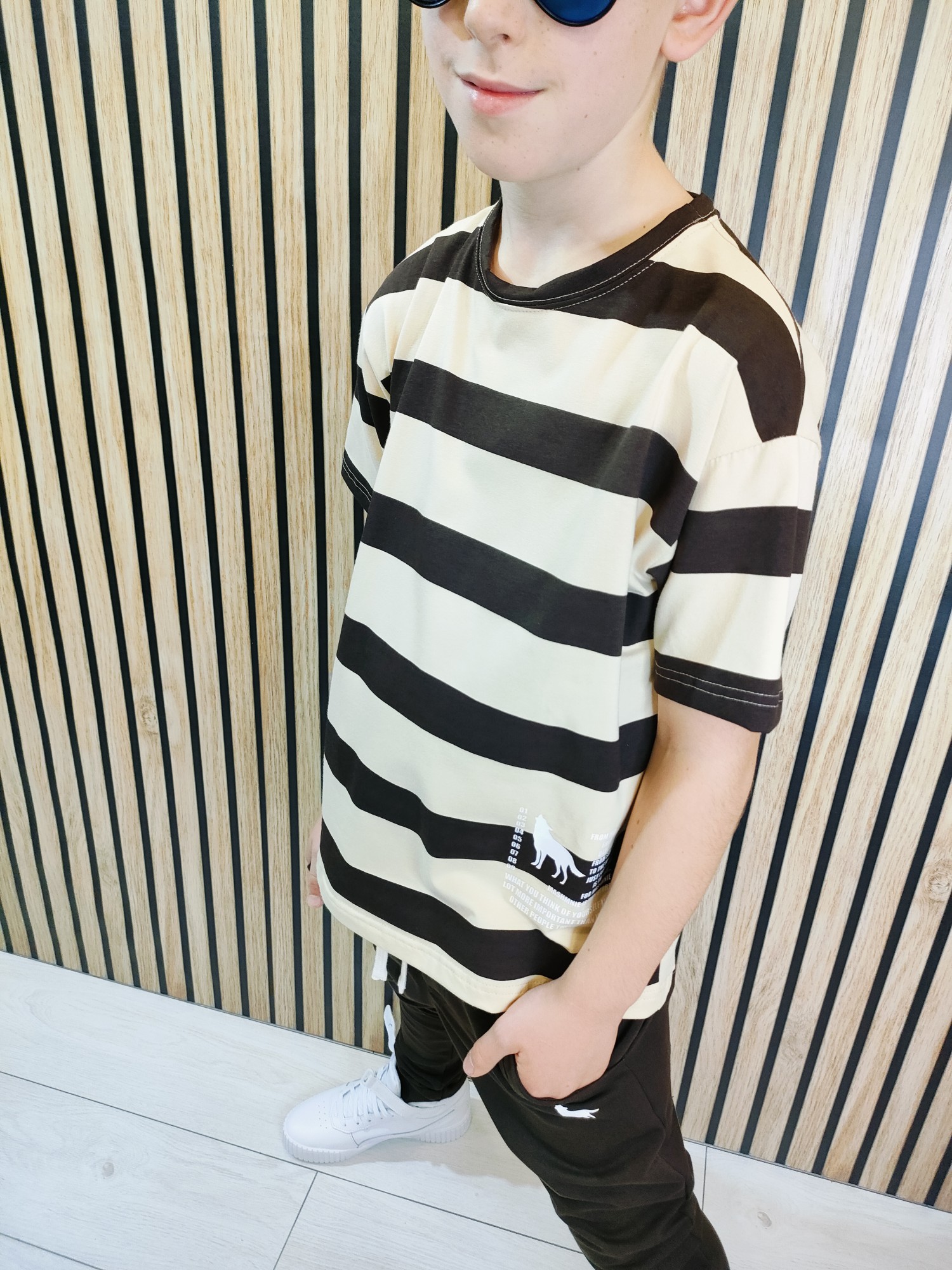 MashMnie Wild City T-shirt paski brązowo/beżowe