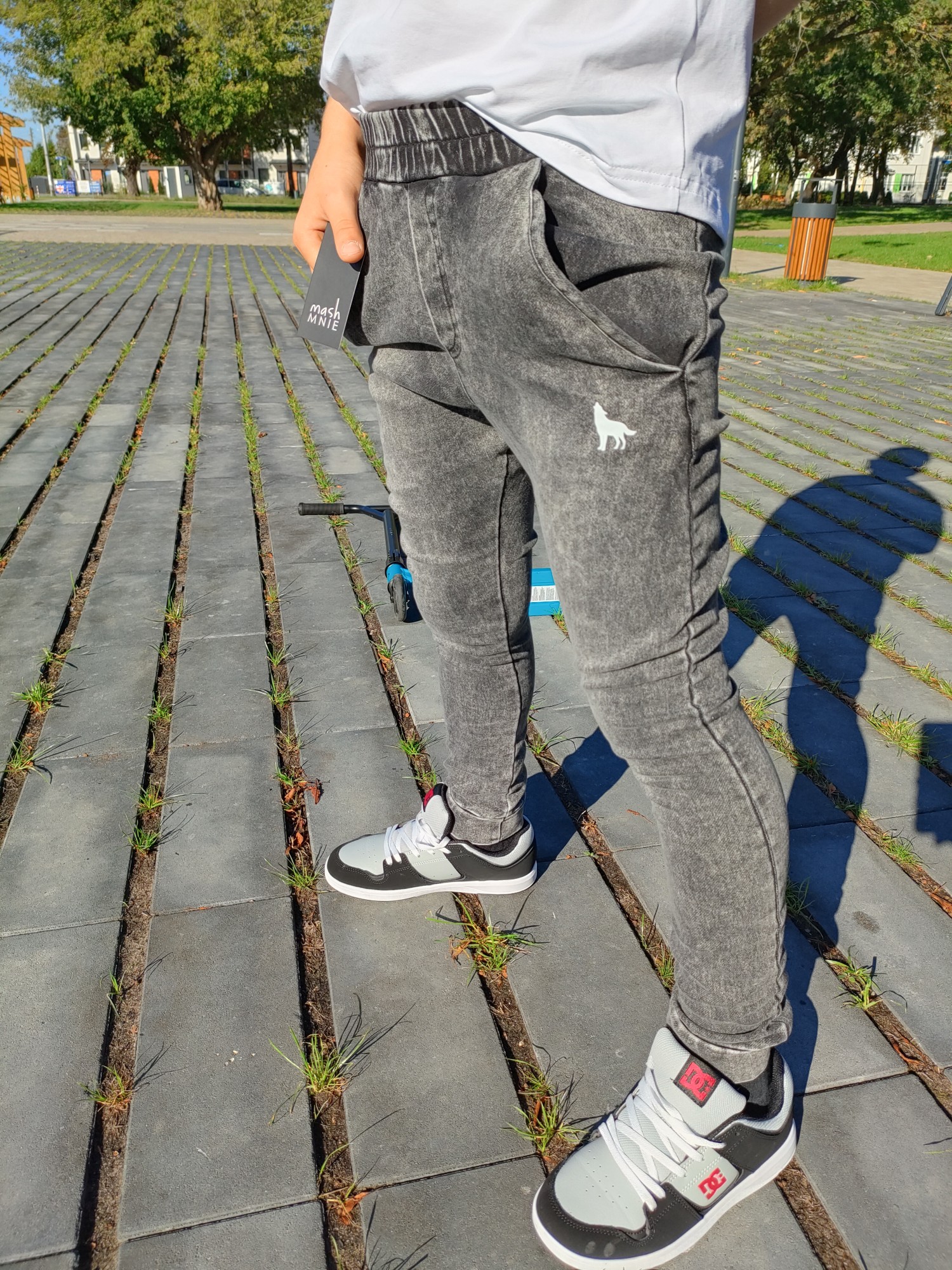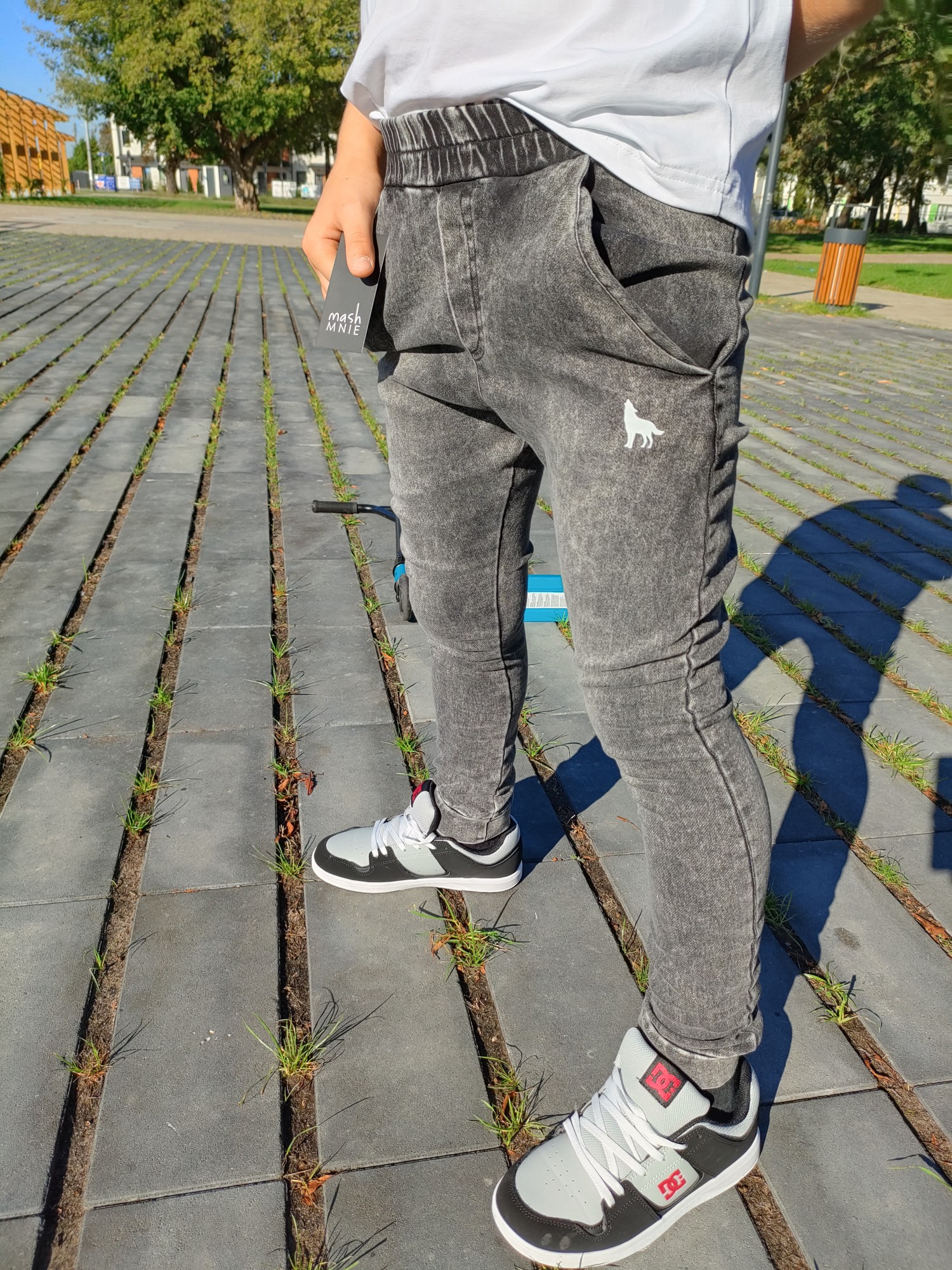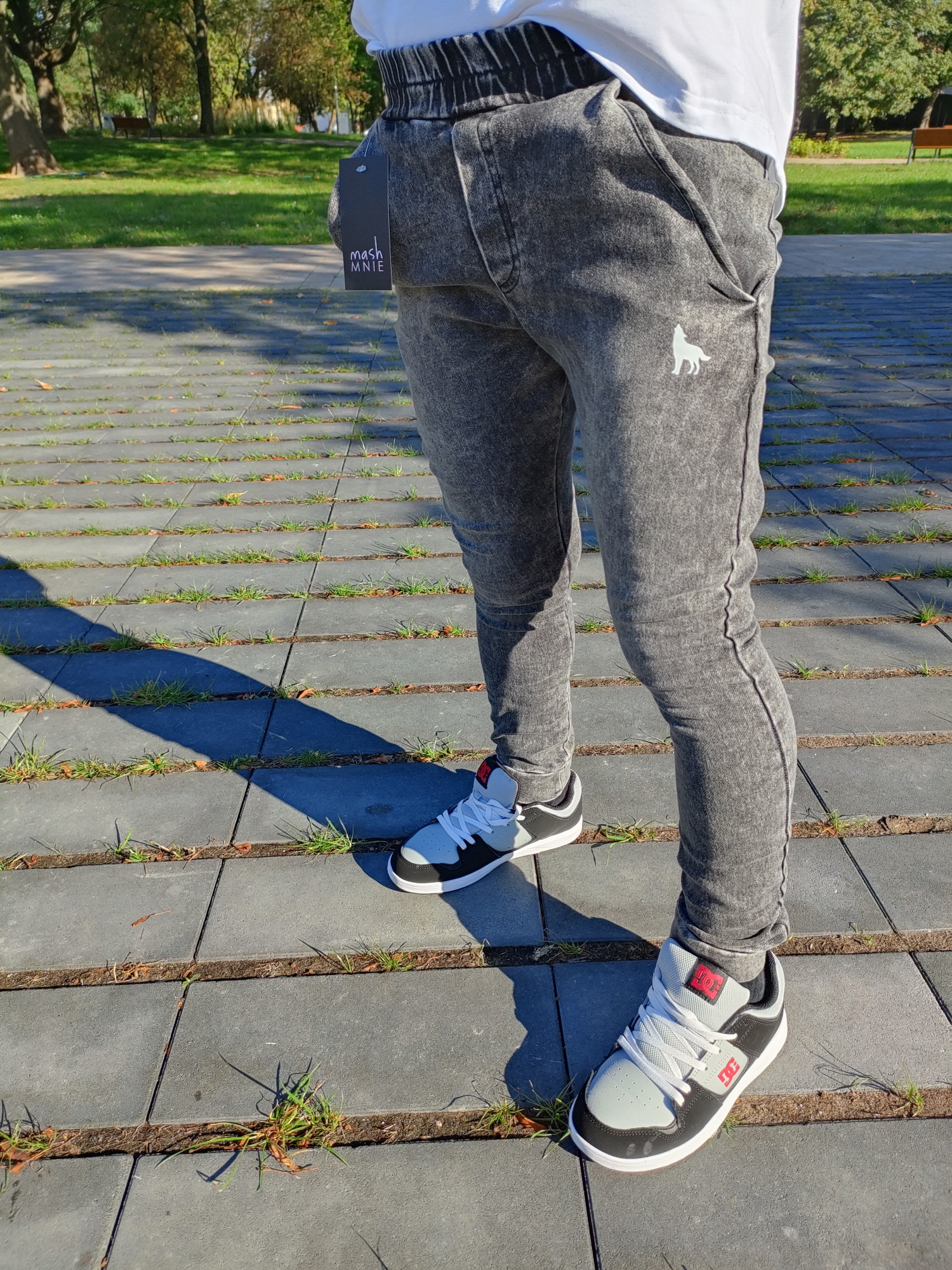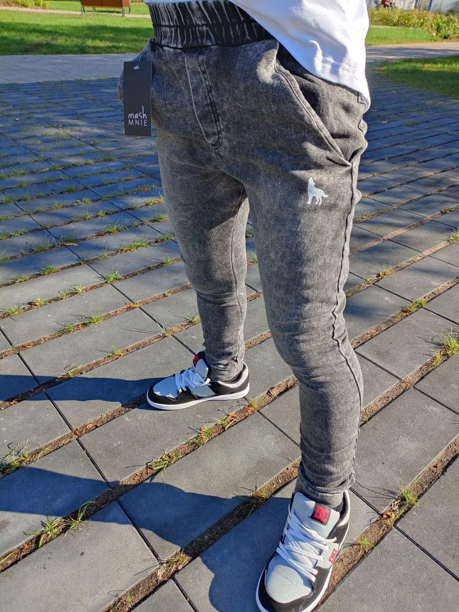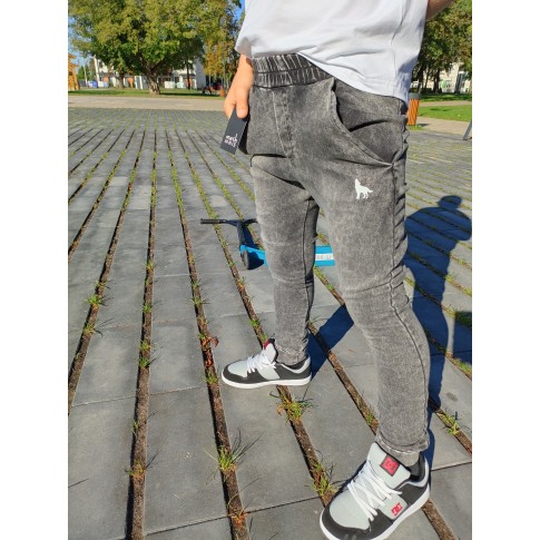MashMnie With Wolves Drop 2 Spodnie slim jeansowe dzianina grafitowe