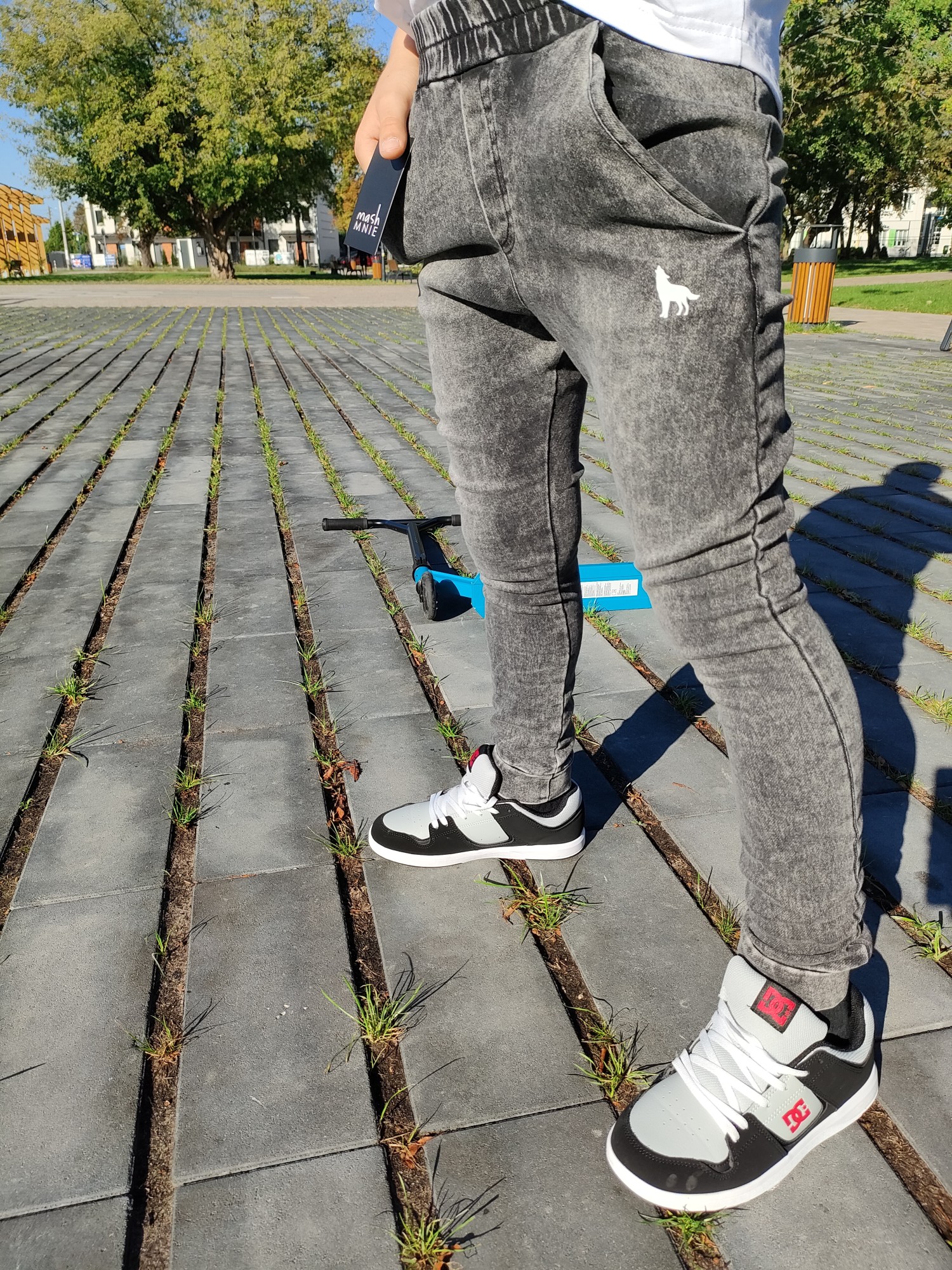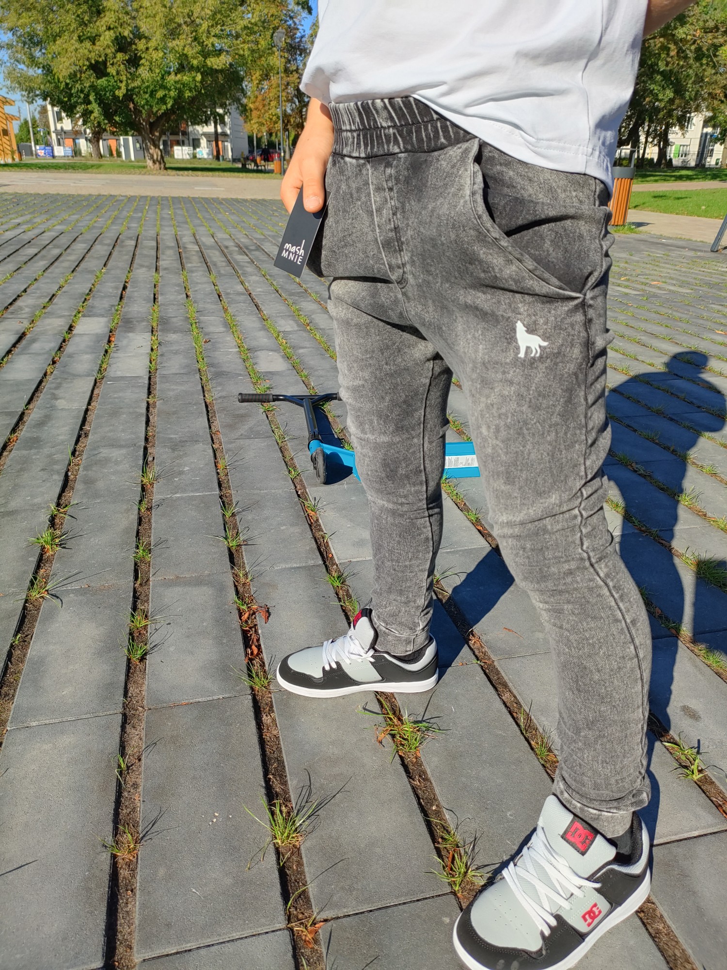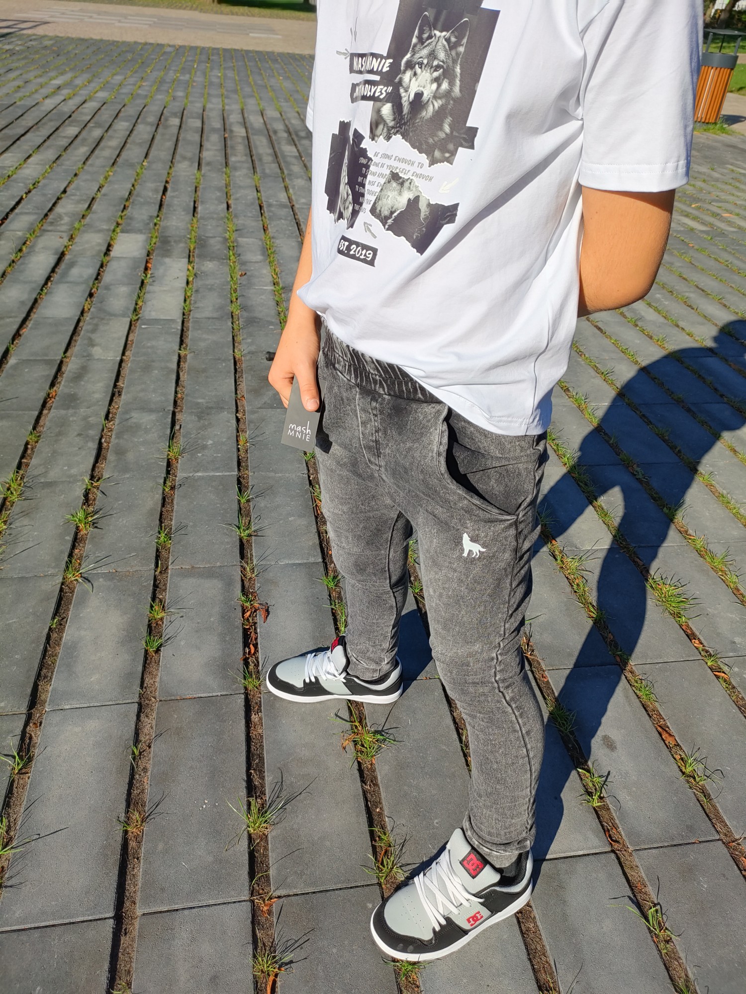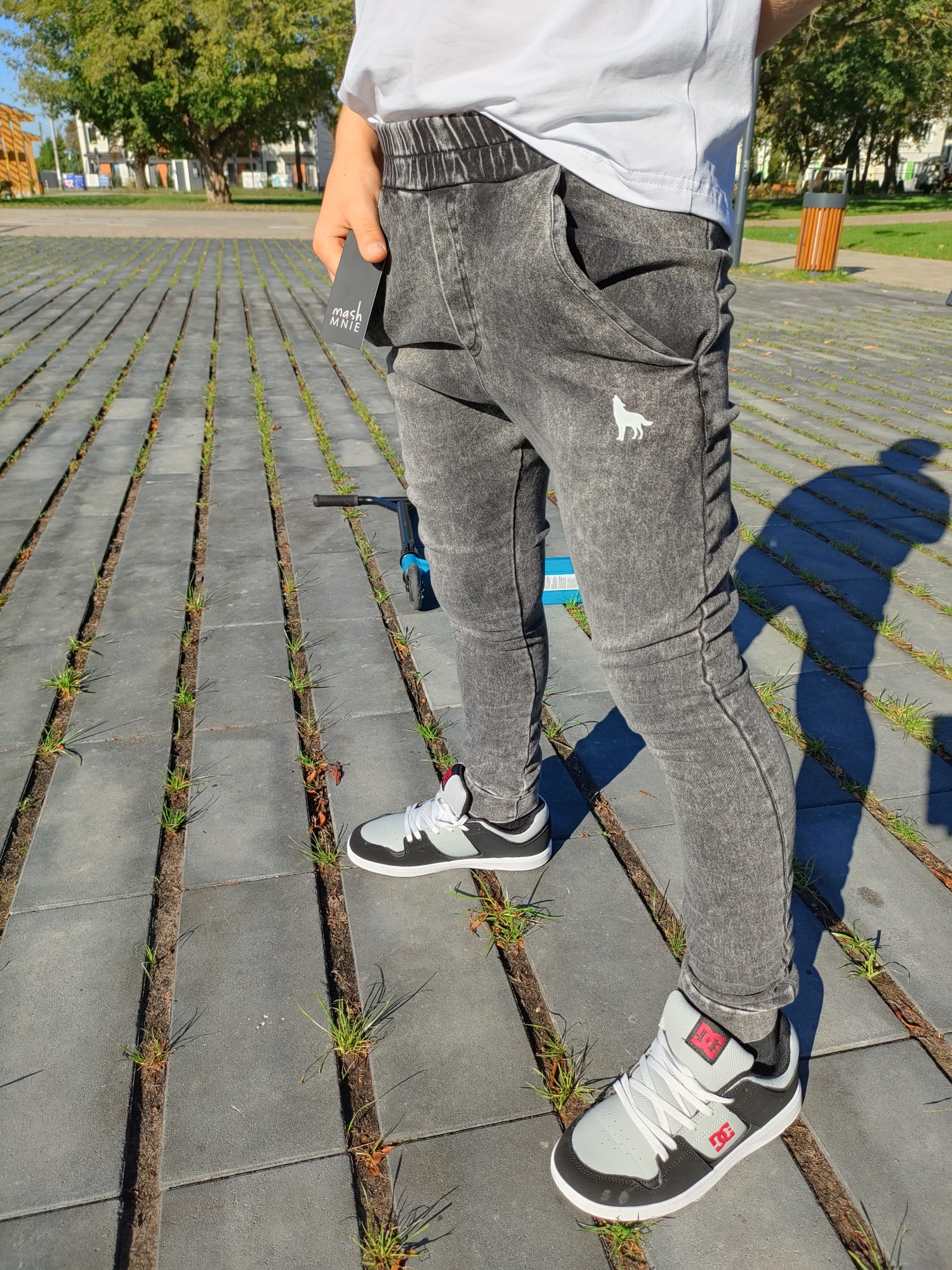 MashMnie With Wolves Drop 2 Spodnie slim jeansowe dzianina grafitowe