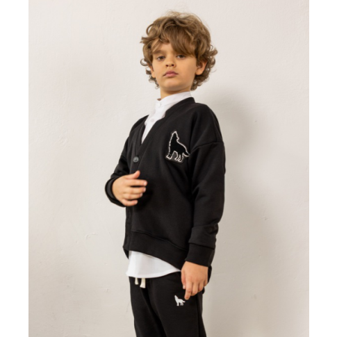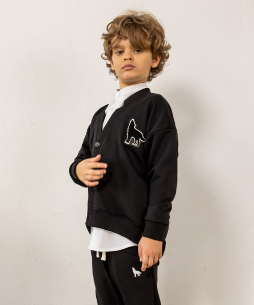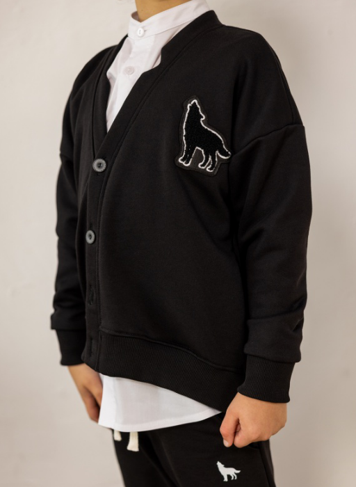 Kardigan z naszywką czarny MashMnie "With Wolves" Drop 3 to minimalistyczny statement piece dla młodzieżowego streetwear – oversizowy krój daje luz i swobodę, głęboka czerń to uniwersalna baza która pasuje do wszystkiego, a haftowana naszywka wilka na piersi dodaje subtelny akcent z charakterem bez zbędnego krzyku. Zapinany na guziki, więc działa jako samodzielna bluza lub warstwa layeringowa na białą longsleeve, t-shirt czy koszulę. To element limitowanej kolekcji "With Wolves" Drop 3.