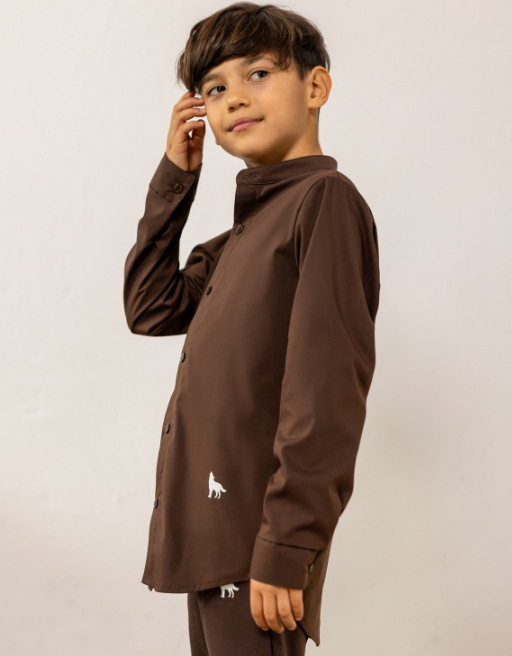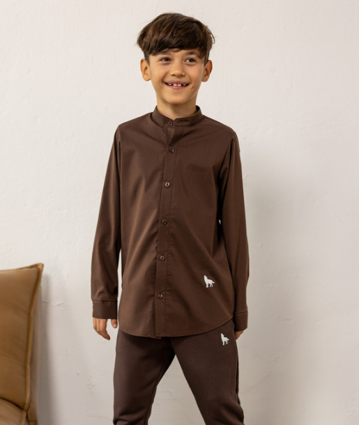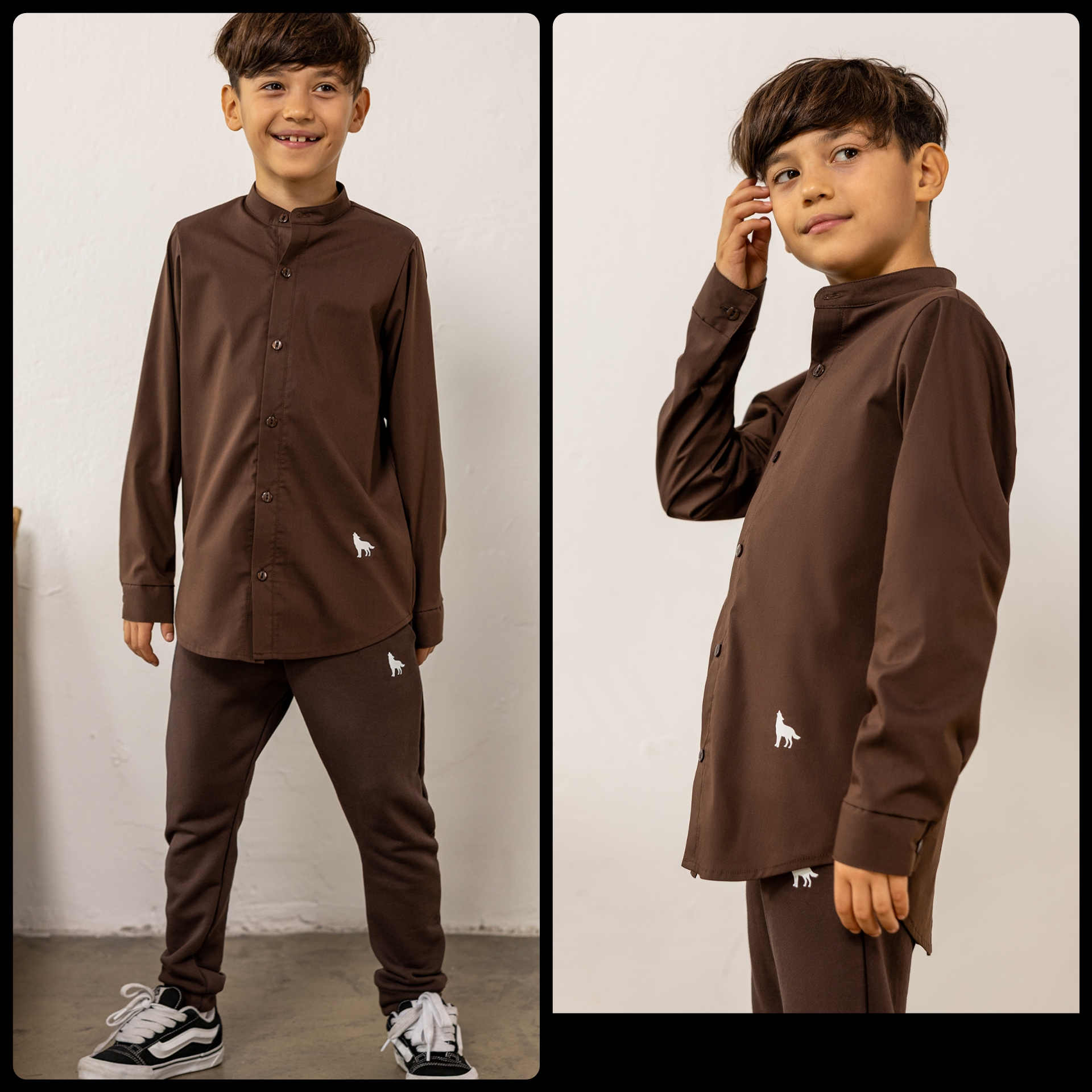 Koszula brązowa MashMnie "With Wolves" Drop 3 to minimalistyczna baza z młodzieżowym twistem – oversizowy luźny krój daje streetwear vibe i swobodę ruchu, kołnierzyk stójka zamiast klasycznego kołnierza robi nowoczesny look, a głęboki brązowy kolor w earth tones pasuje do wszystkiego – czerni, beżu, brązu, szarości. Zapinana na guziki, z subtelnym logo na przodzie. To element limitowanej kolekcji "With Wolves" Drop 3, która łączy minimalizm z funkcjonalnością.
