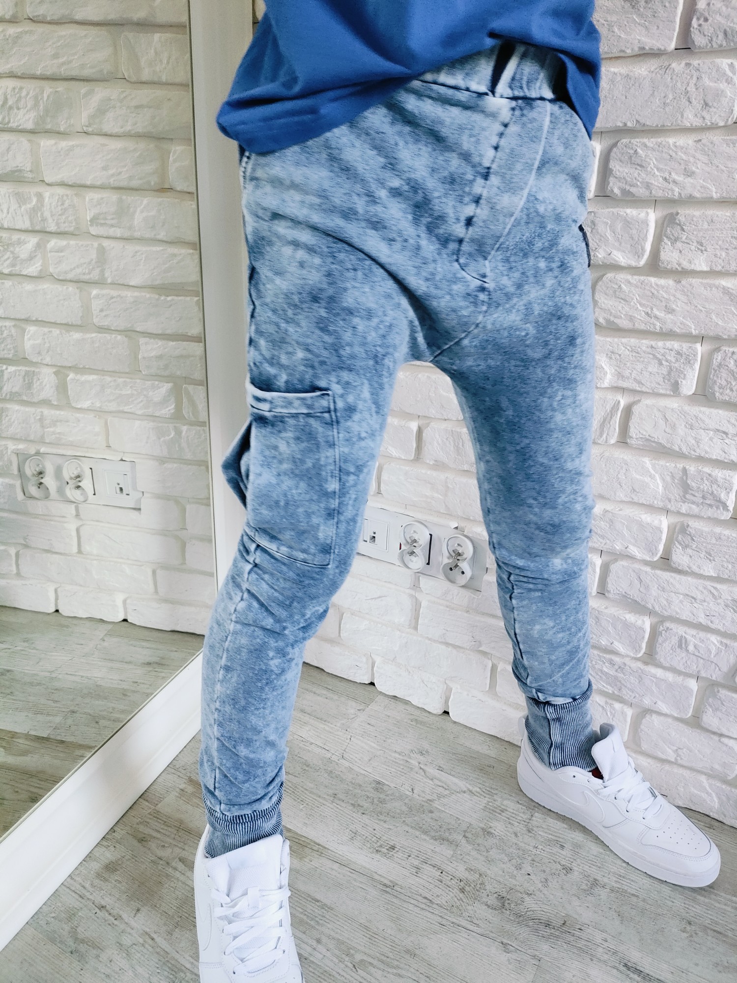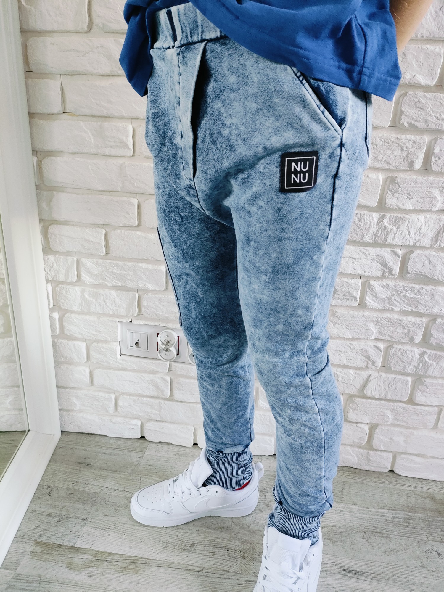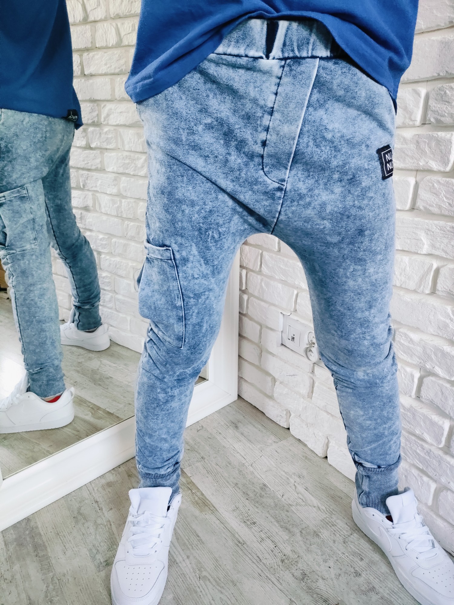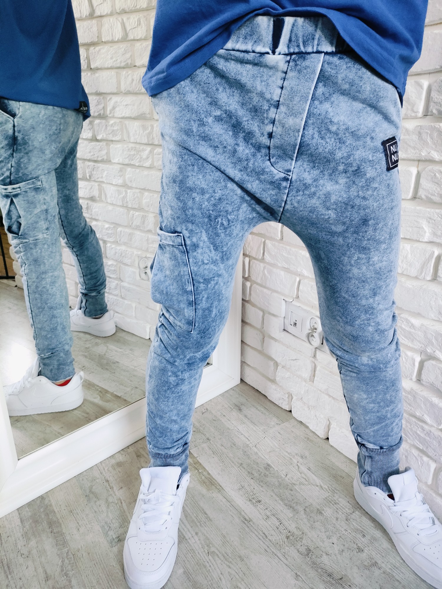 Spodnie bojówki dekatyzowane jeans blue NUNU