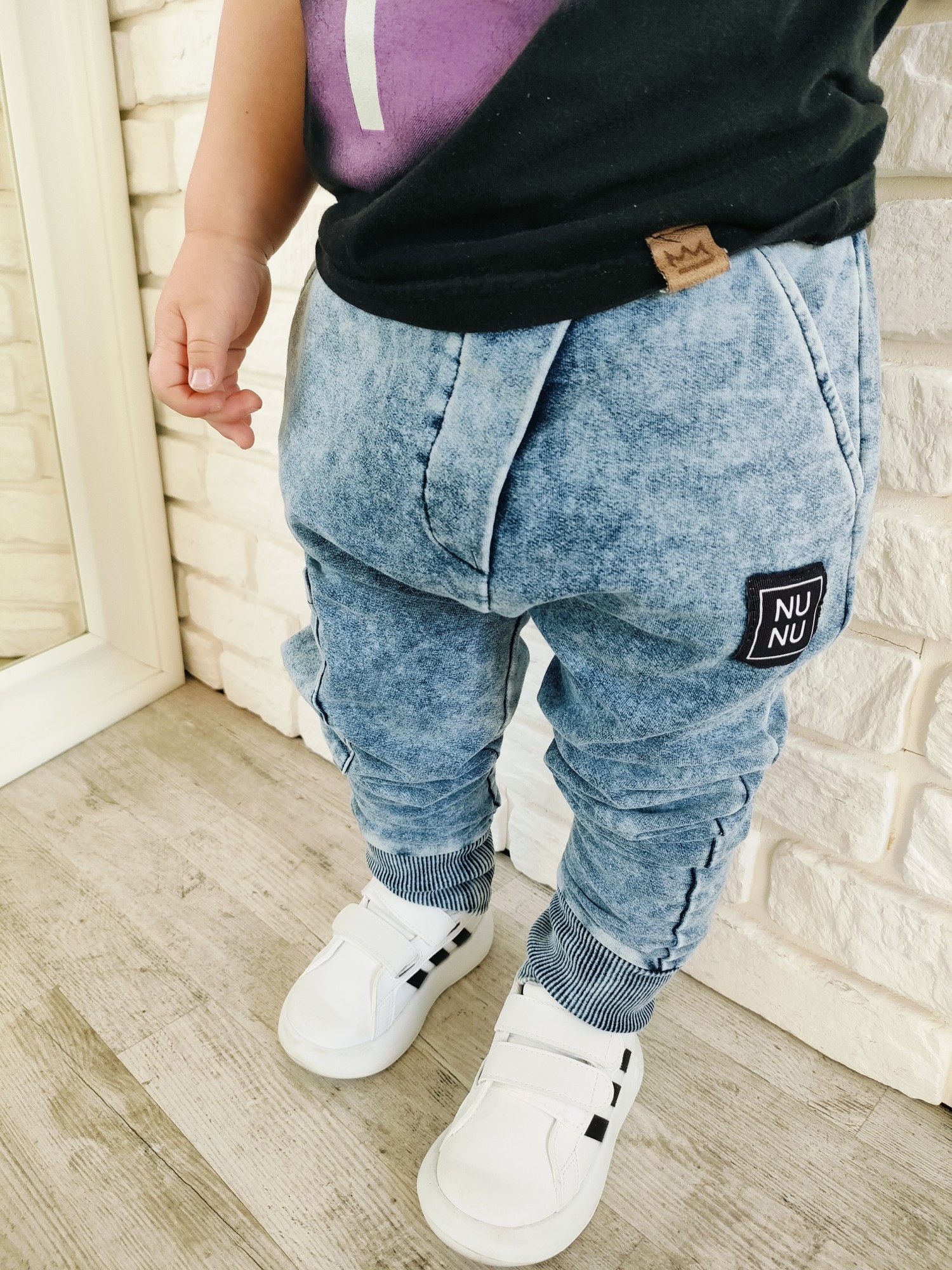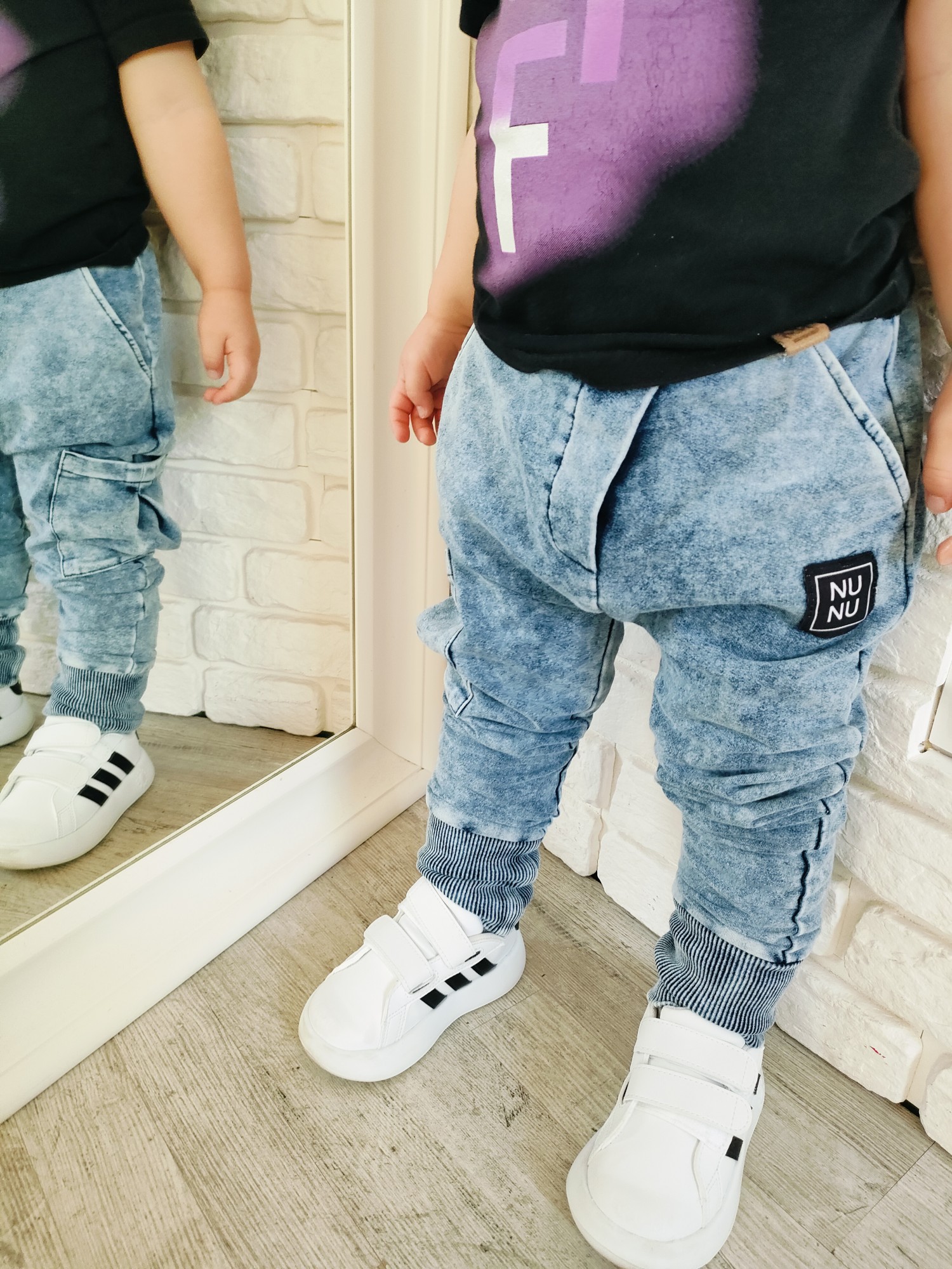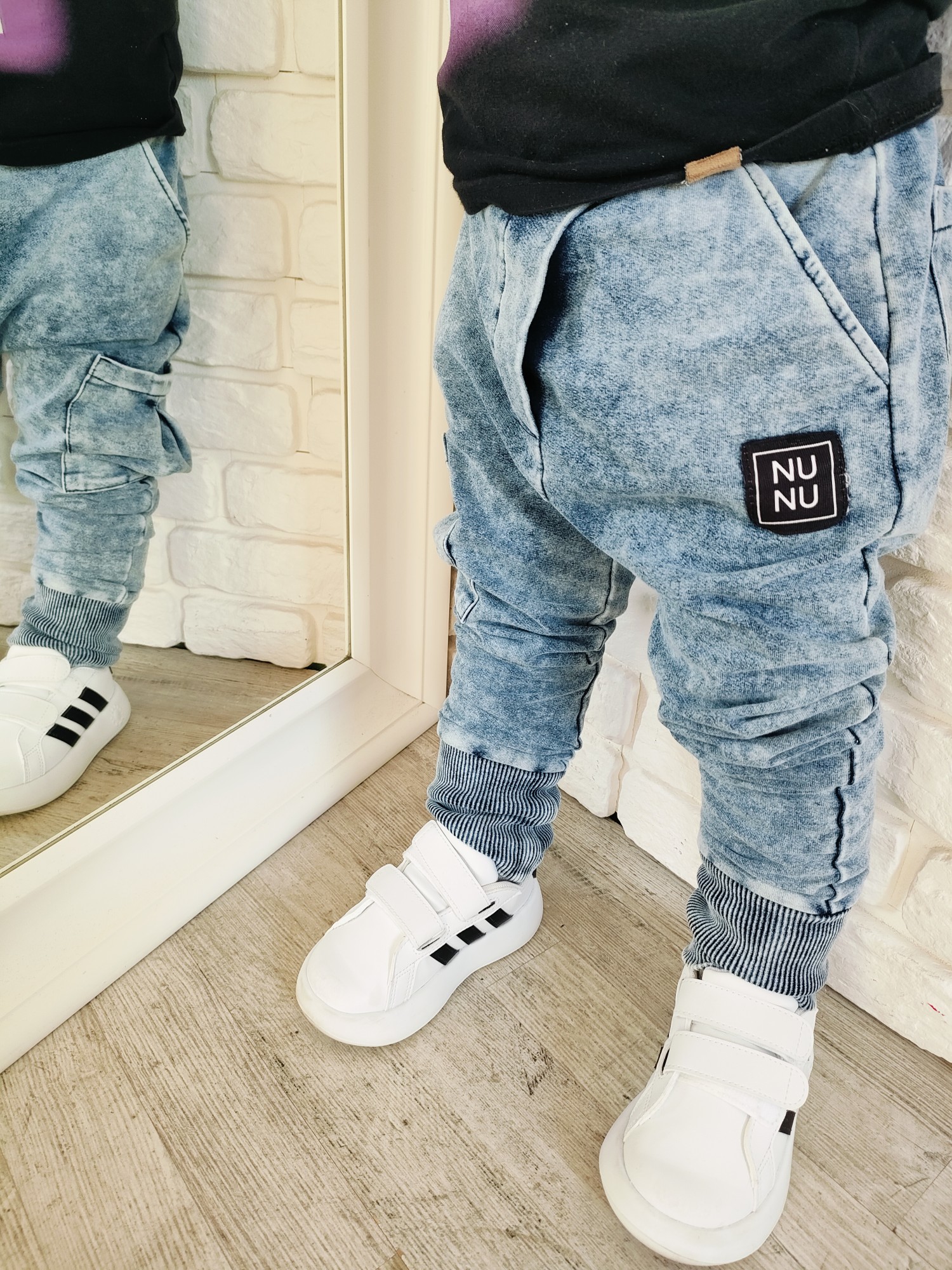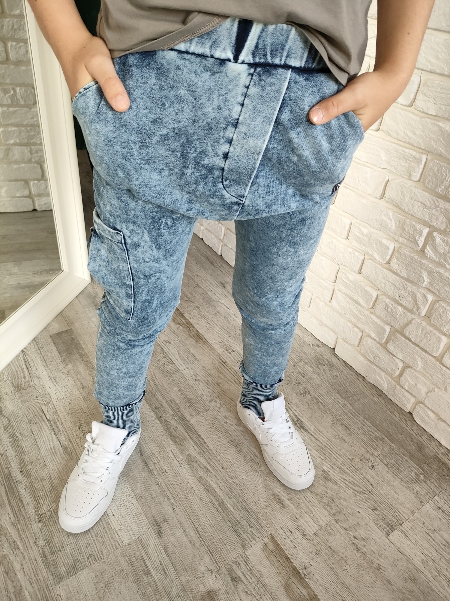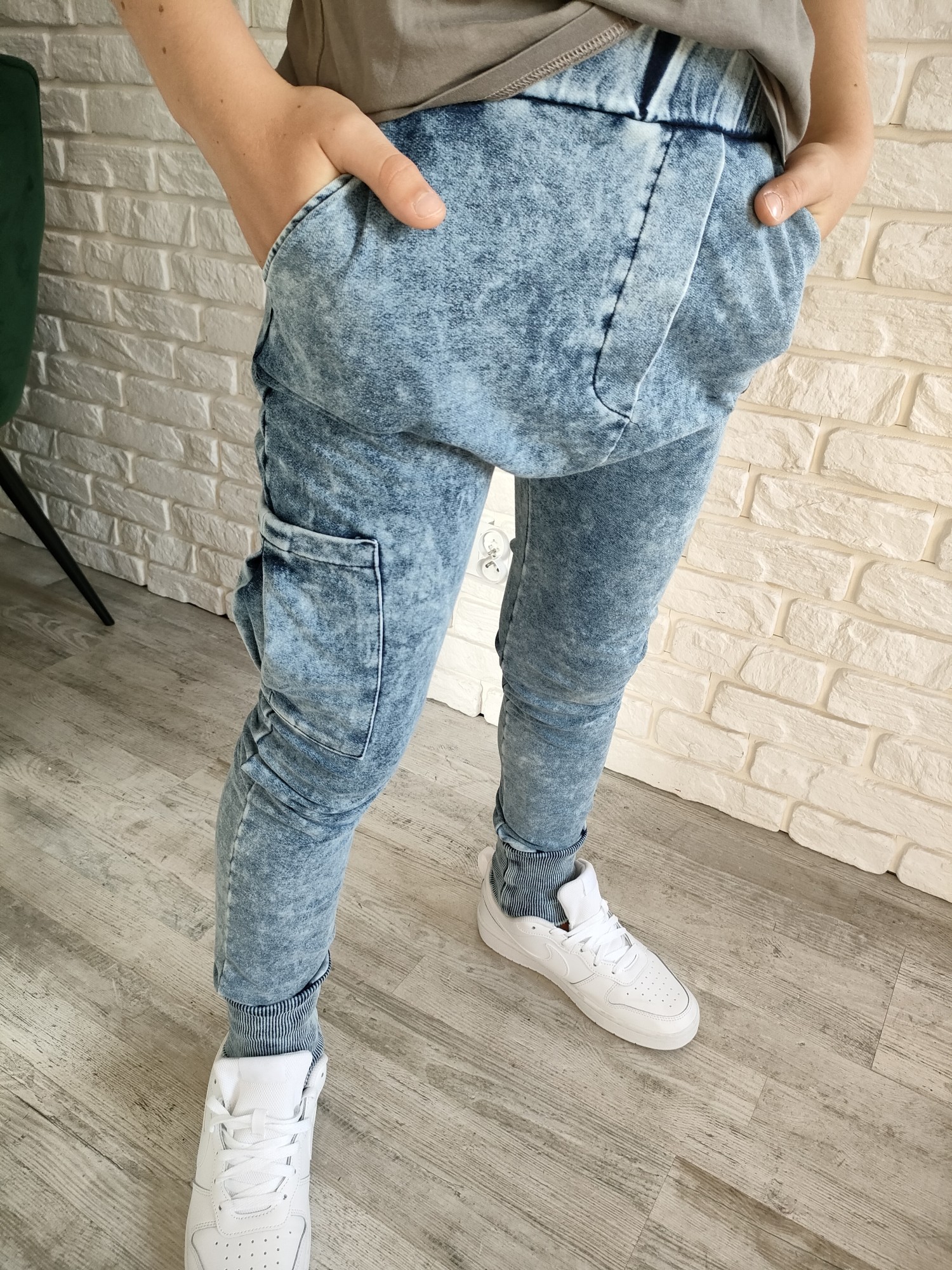 Spodnie bojówki dekatyzowane jeans blue NUNU