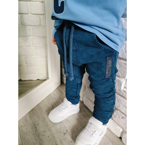 Spodnie Despacito - dekatyzowane „denim blue” ze wstawkami