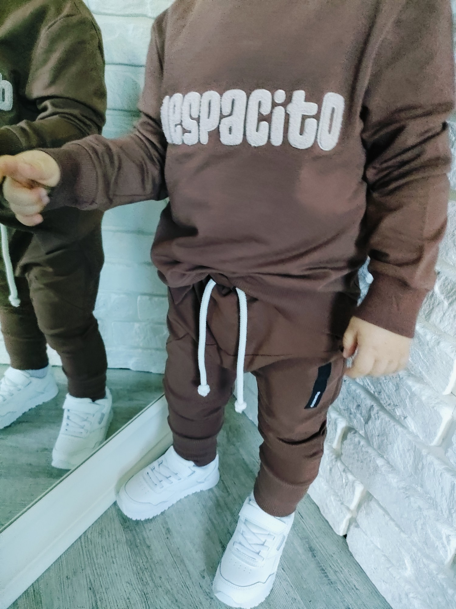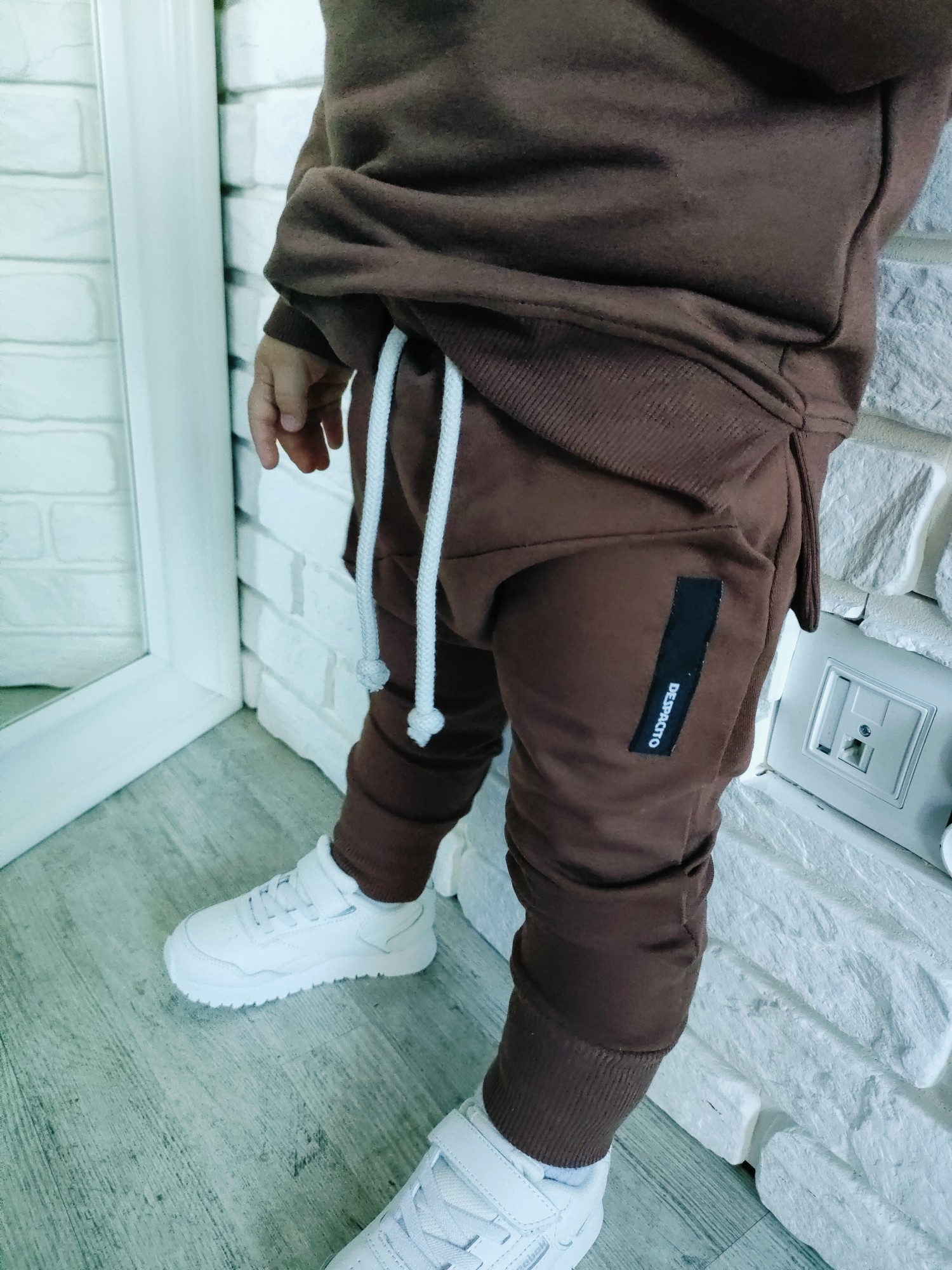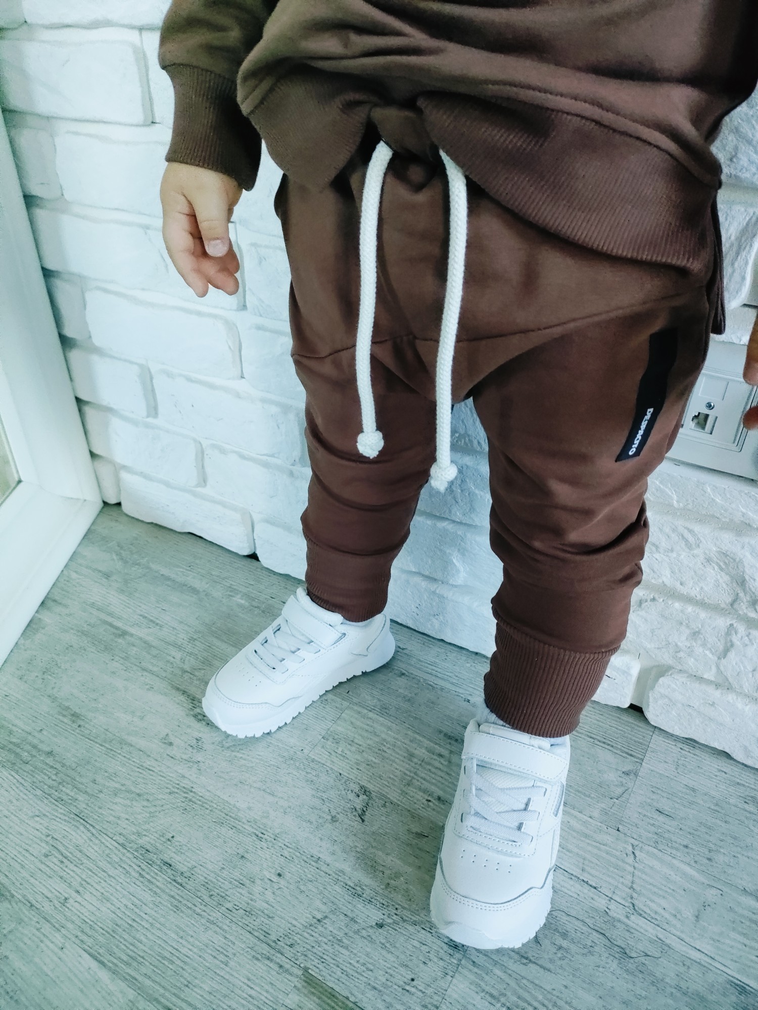 Spodnie dla chłopca Despacito Shape orzechowy brąz to codzienny must-have: spodnie bawełniane o gładkiej, nowoczesnej linii, które robią styl. Kolor orzech/brąz uspokaja zestawy i dobrze gra z czernią, beżem, indigo i bielą – idealne spodnie do szkoły i na weekend. Pas na gumie ze sznurkiem ustawia obwód w sekundę, a zwężana nogawka porządkuje sylwetkę jak w ulubionych joggerach chłopięcych. Boczne kieszenie biorą na siebie drobiazgi, a miękki chwyt materiału robi różnicę w noszeniu.