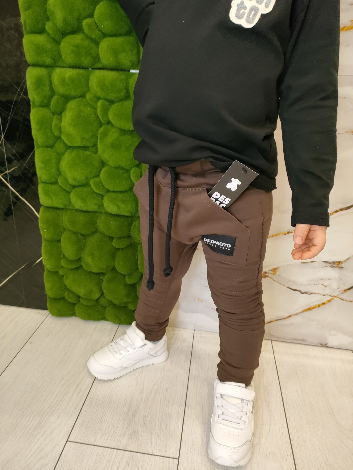 Spodnie Despacito bawełniane z przeszyciami czekolada