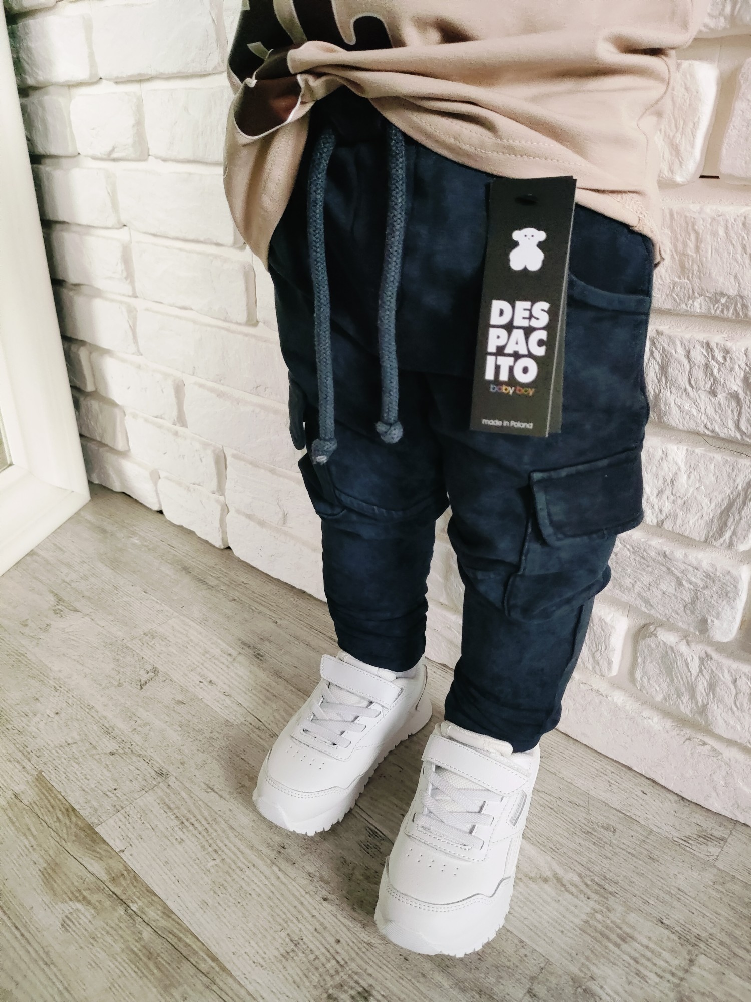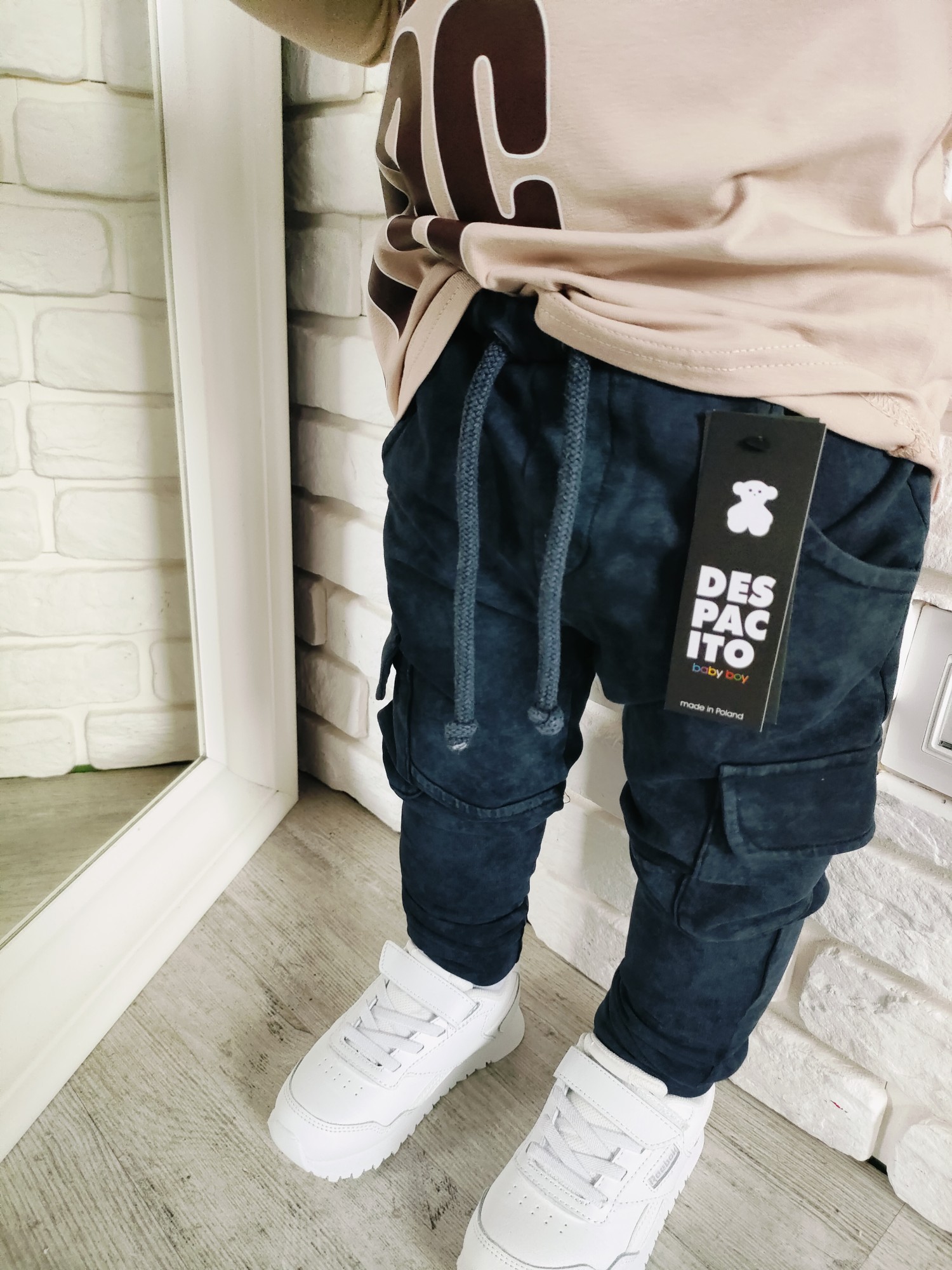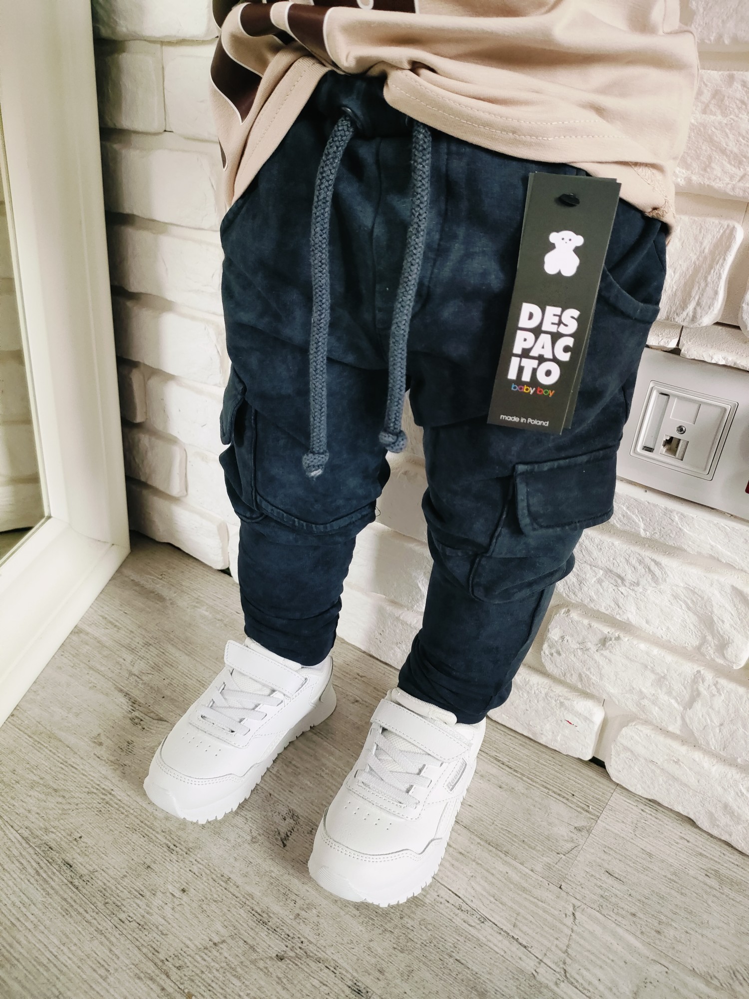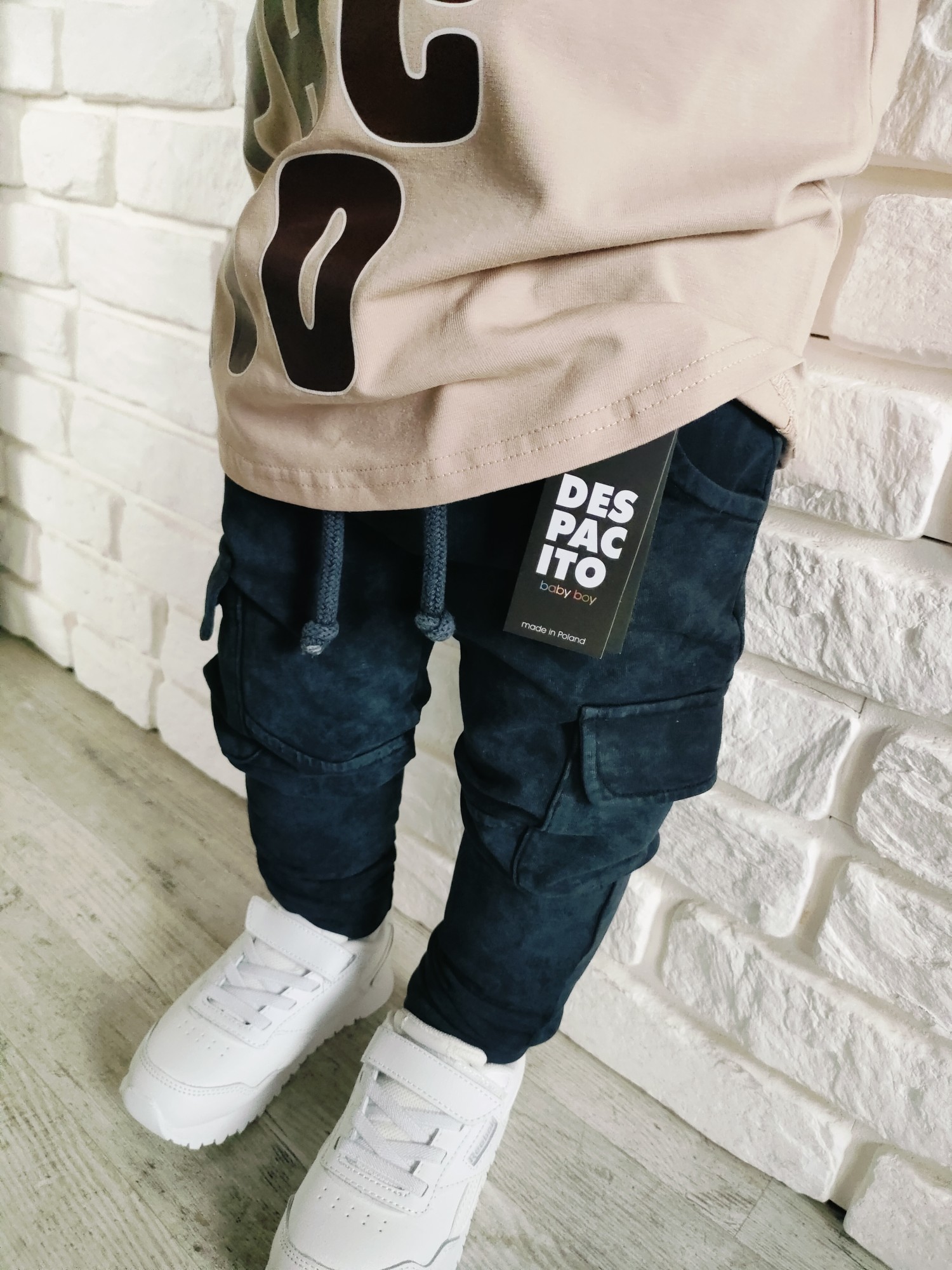 Antracyt jak nocne miasto - głęboki, nowoczesny i bardzo „do noszenia”. Te dekatyzowane cargo Despacito łączą wygodę dresu ze streetowym sznytem denimu. Pas na elastycznej gumie i pleciony sznurek robią dopasowanie w sekundę, a kieszenie cargo na udach wchodzą tu nie tylko jako detal – to realna funkcja na klucze, kartę czy drobne skarby.