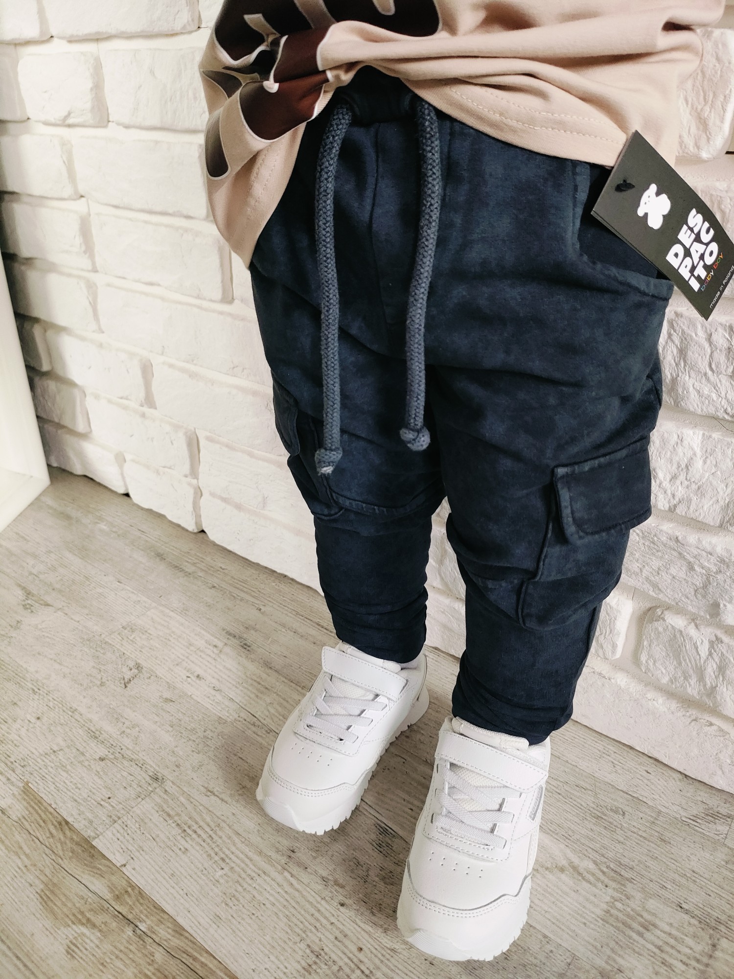 Zwężana nogawka porządnie siada na sneakersie, bez nadmiaru materiału przy kostce. Dzianina jest miękka i „pracuje” z ruchem, więc cały dzień – od lekcji po plac – mija bez marudzenia. Efekt dekatyzacji dodaje charakteru, ale nosi się lekko jak ulubiony dres.