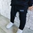 prosta stylizacja - spodnie czarne dla chłopca grają z bielą, beżem, indigo i szarością