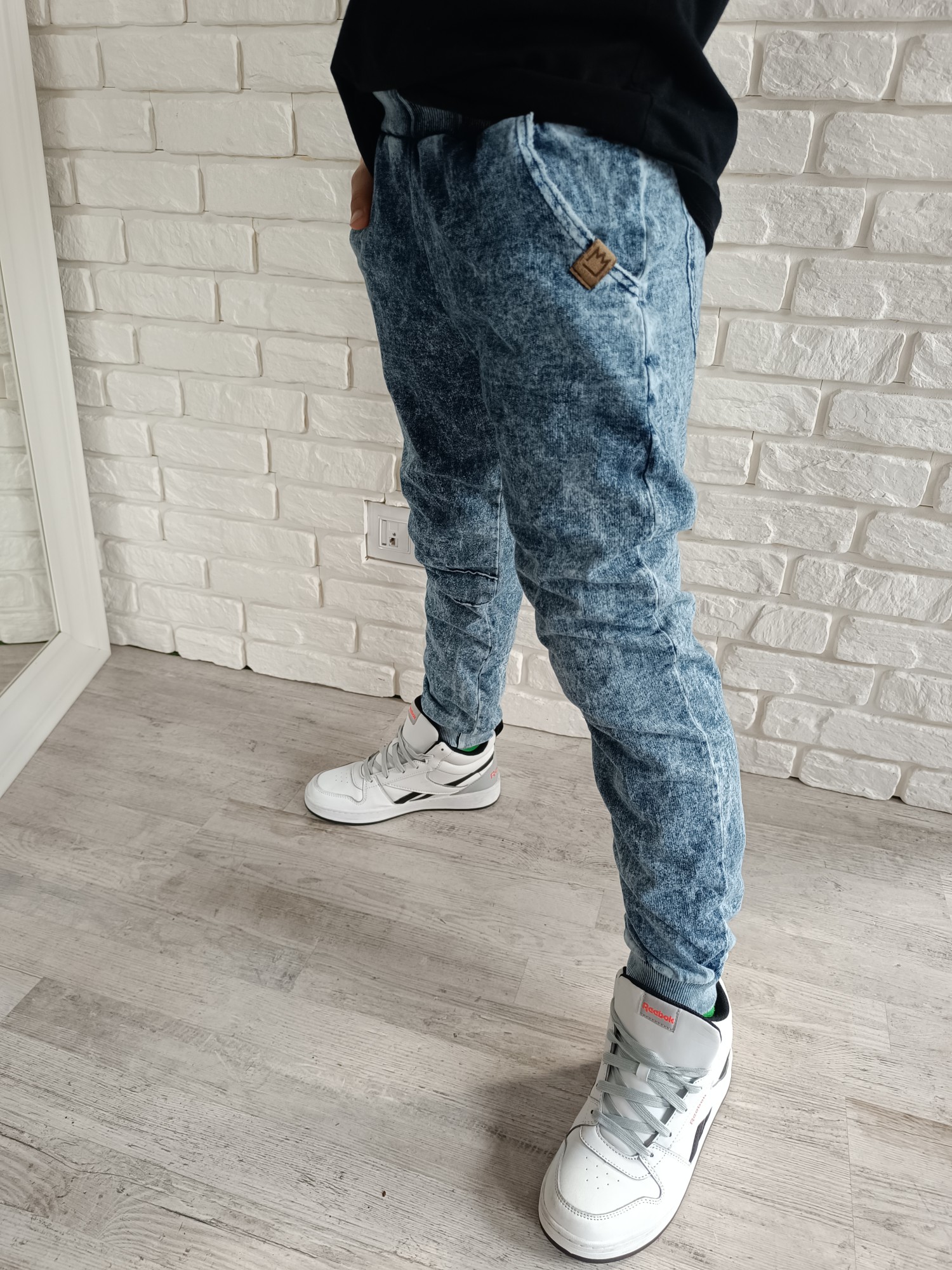 Spodnie "krzywa noga" ice dye dresówka blue Mimi