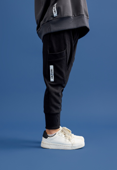 Matowa czerń robi porządek w stylówce. Ten model to esencja wygody: miękka dzianina pracuje z ruchem, nie łapie „zagnieceń nastroju”, a pas na gumie trzyma temat tak, jak trzeba. To spodnie do życia - lekcje, plac zabaw, weekend - nic nie ciągnie, nic nie uciska, po prostu działają.