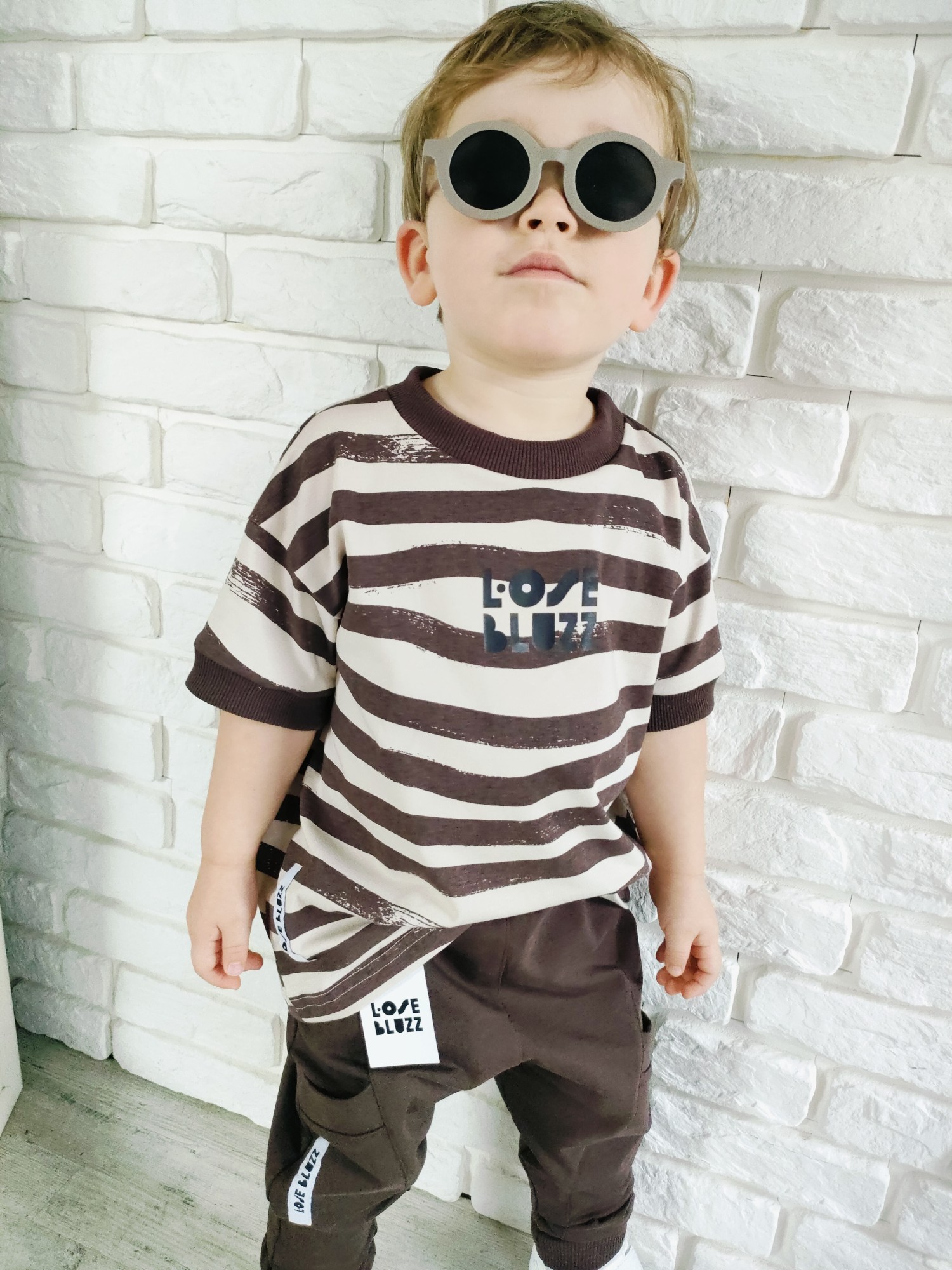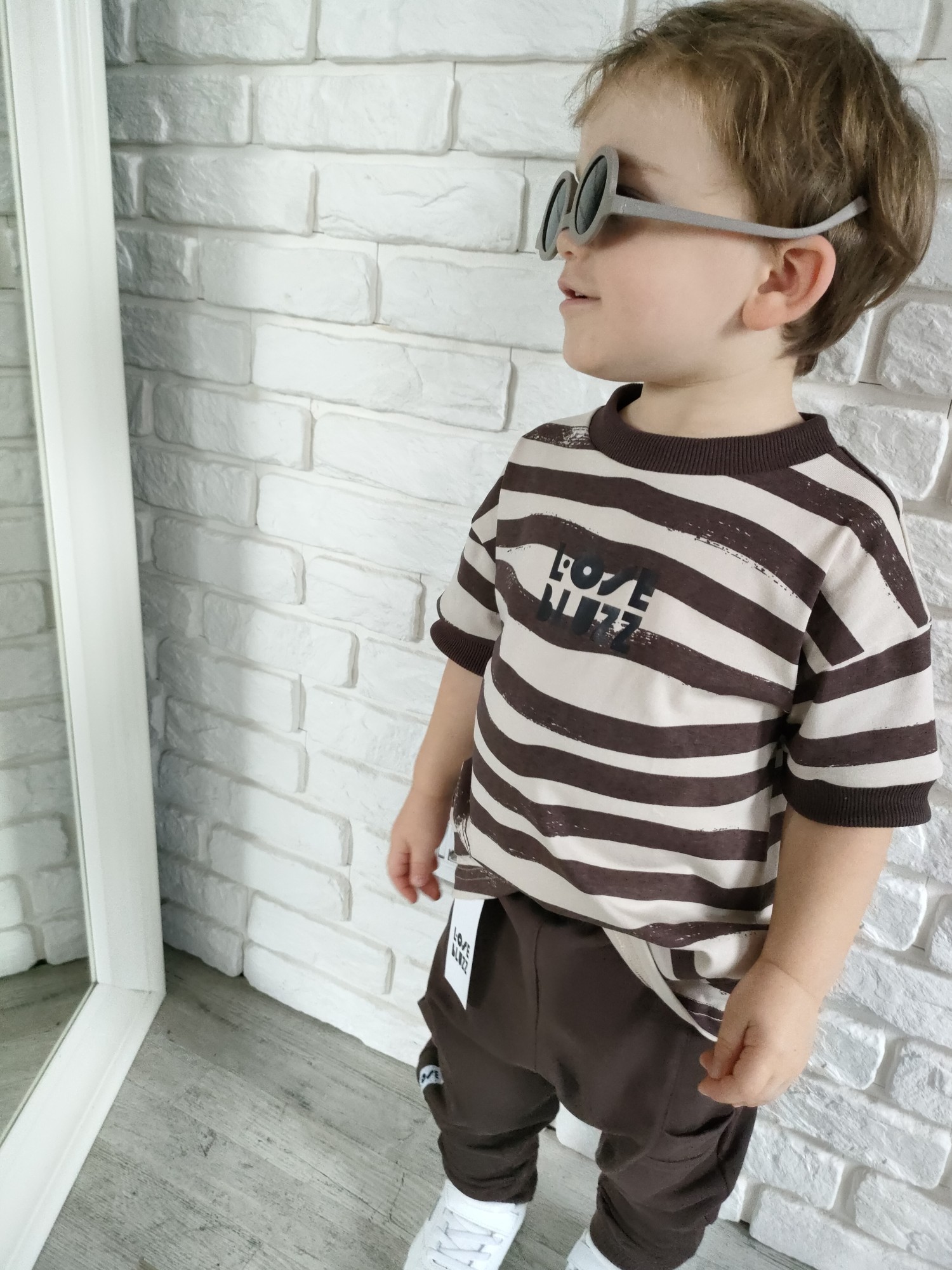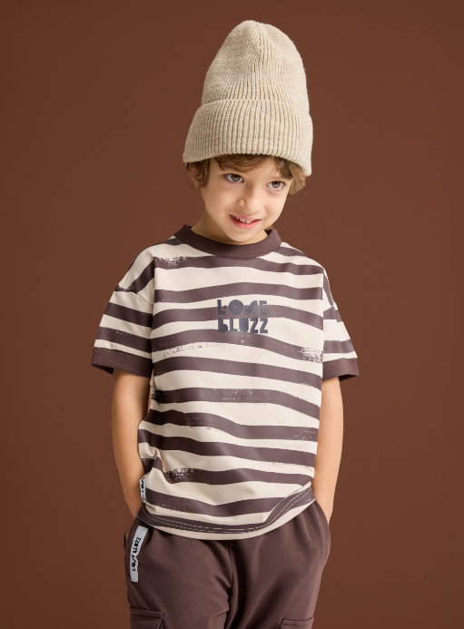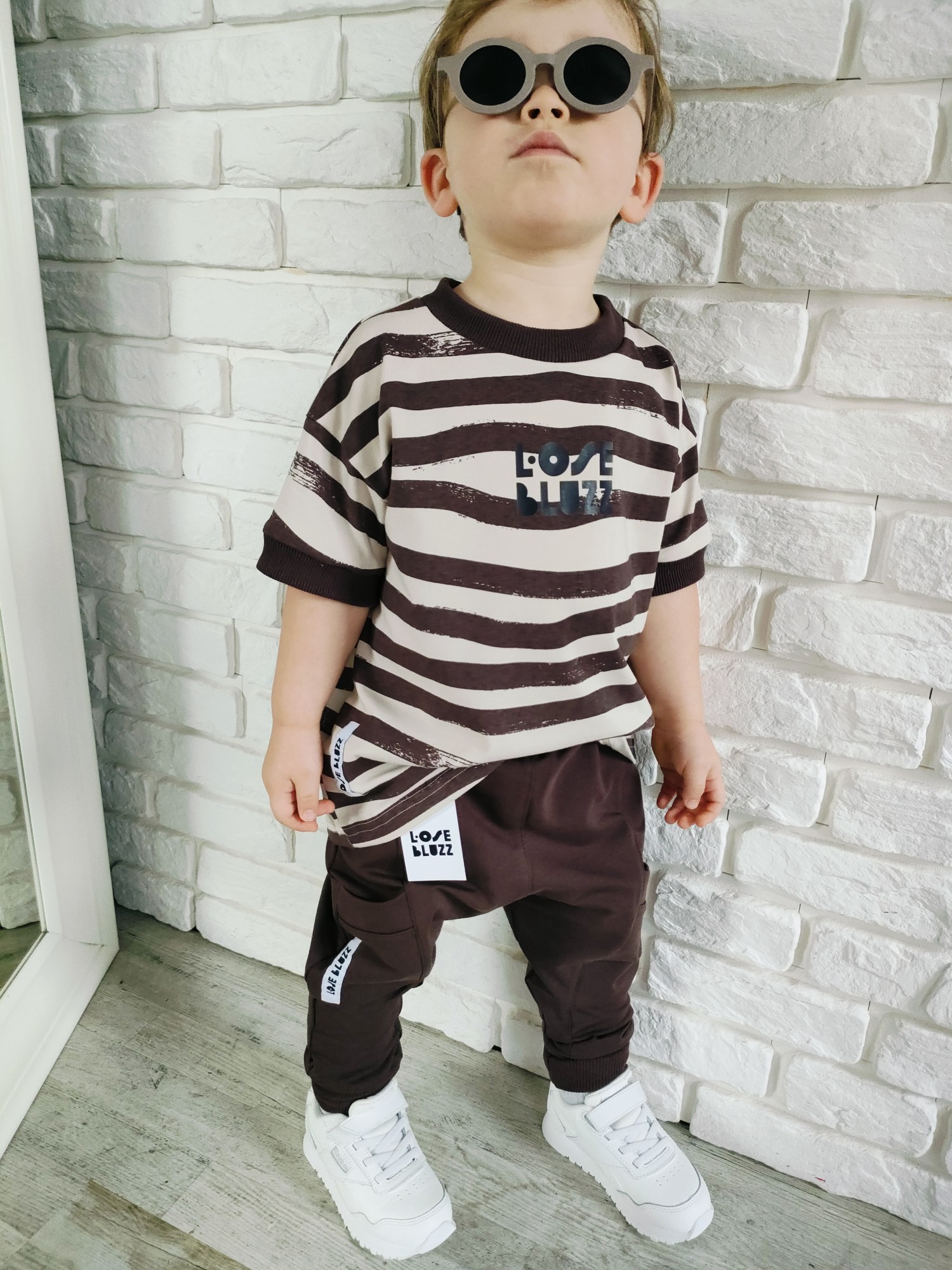 T-shirt Loose Bluzz - brązowe paski - lekki, sprężysty, gotowy do noszenia non stop